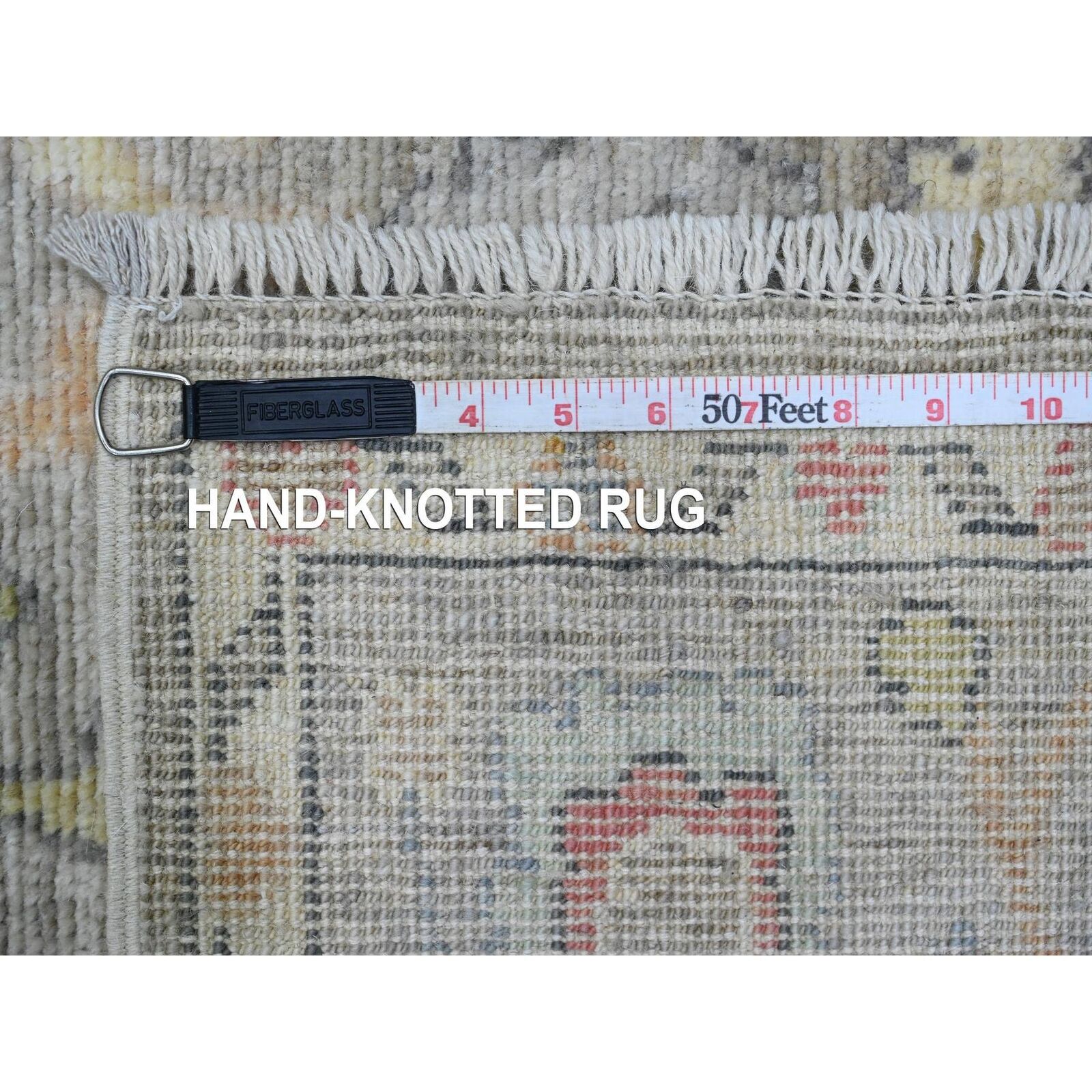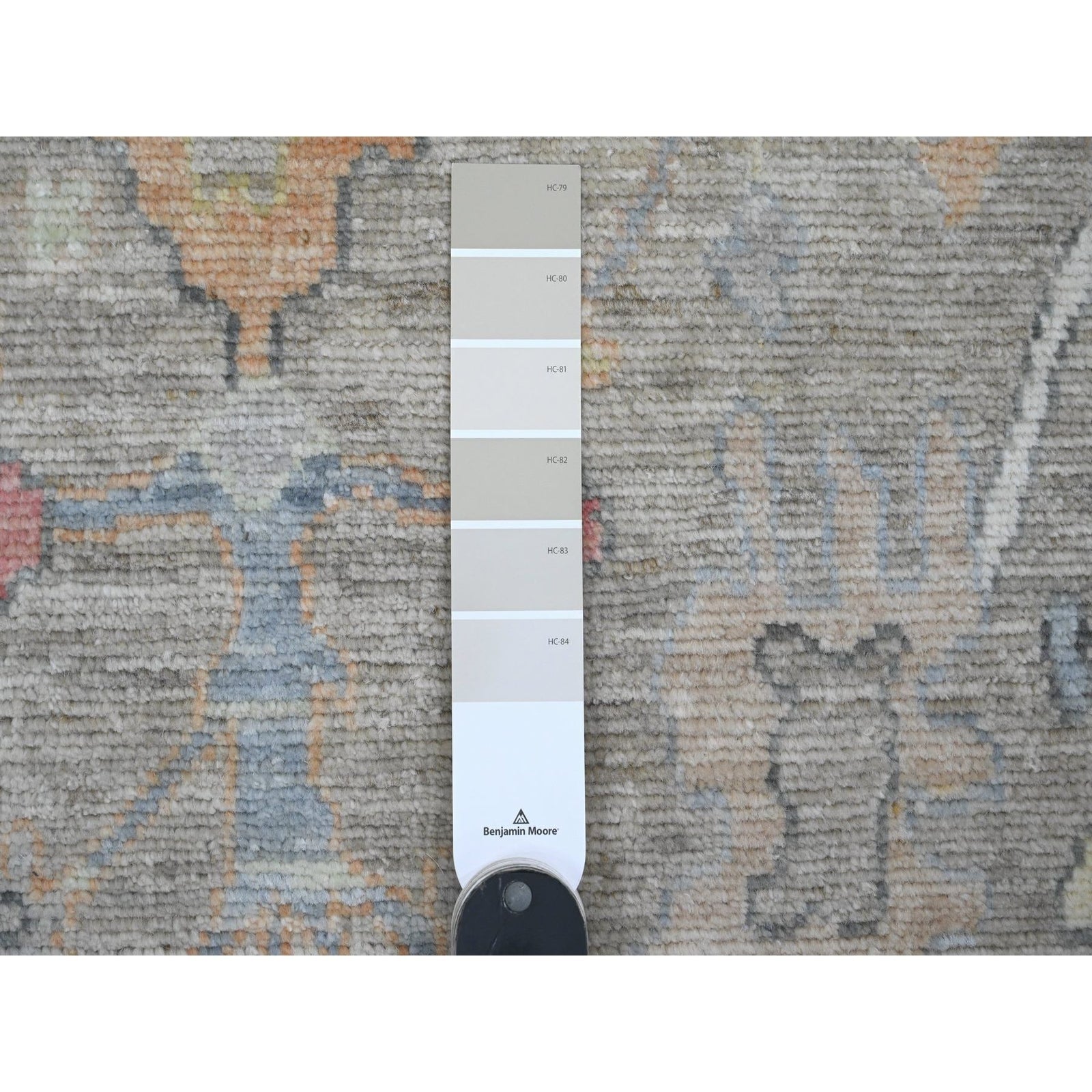 3'10"X12'1" Gray Hand Knotted Angora Oushak Leaf Design Wool Runner Rug