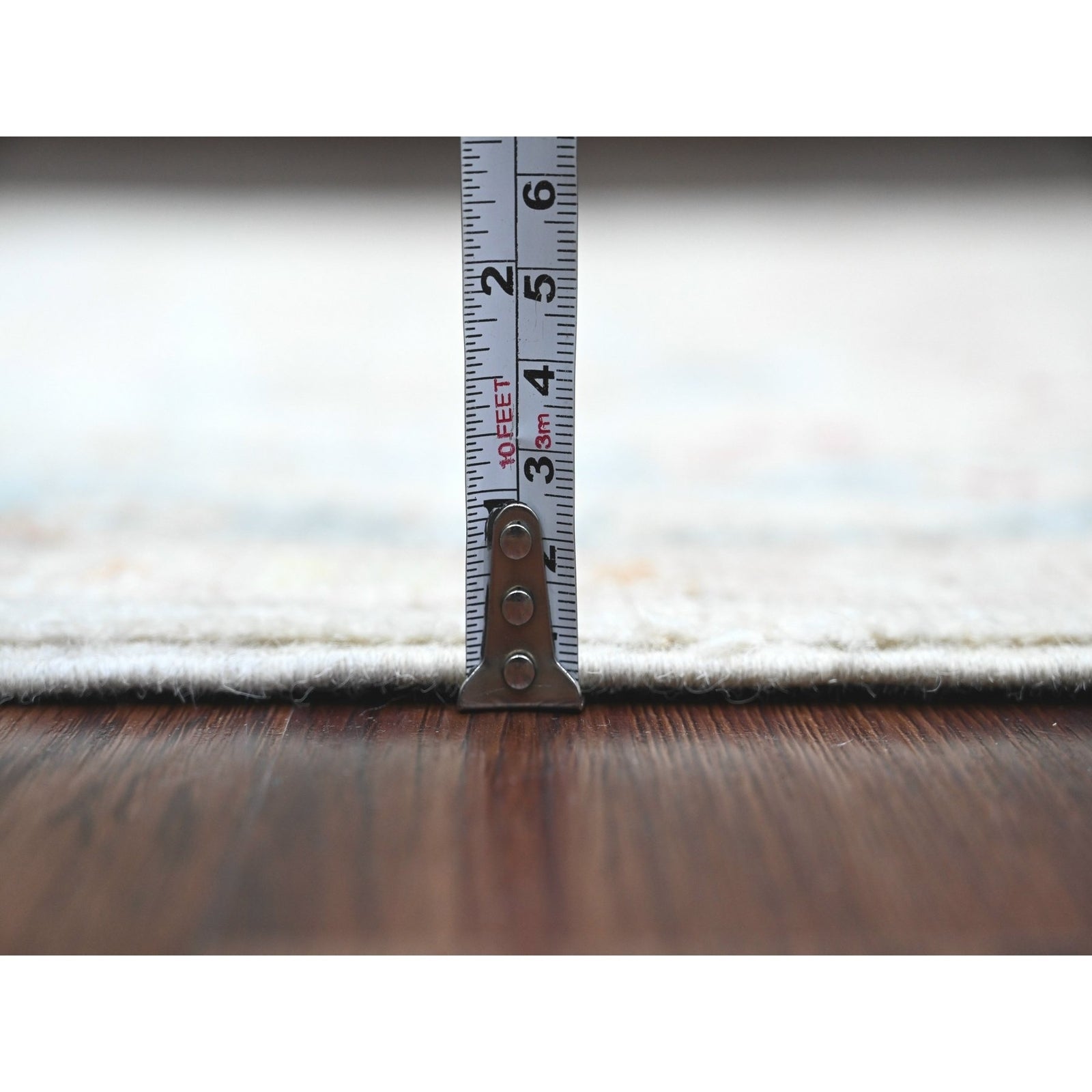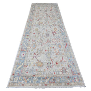 3'10"X12'3" White Angora Oushak Leaf Design Hand Knotted Wool Runner Rug