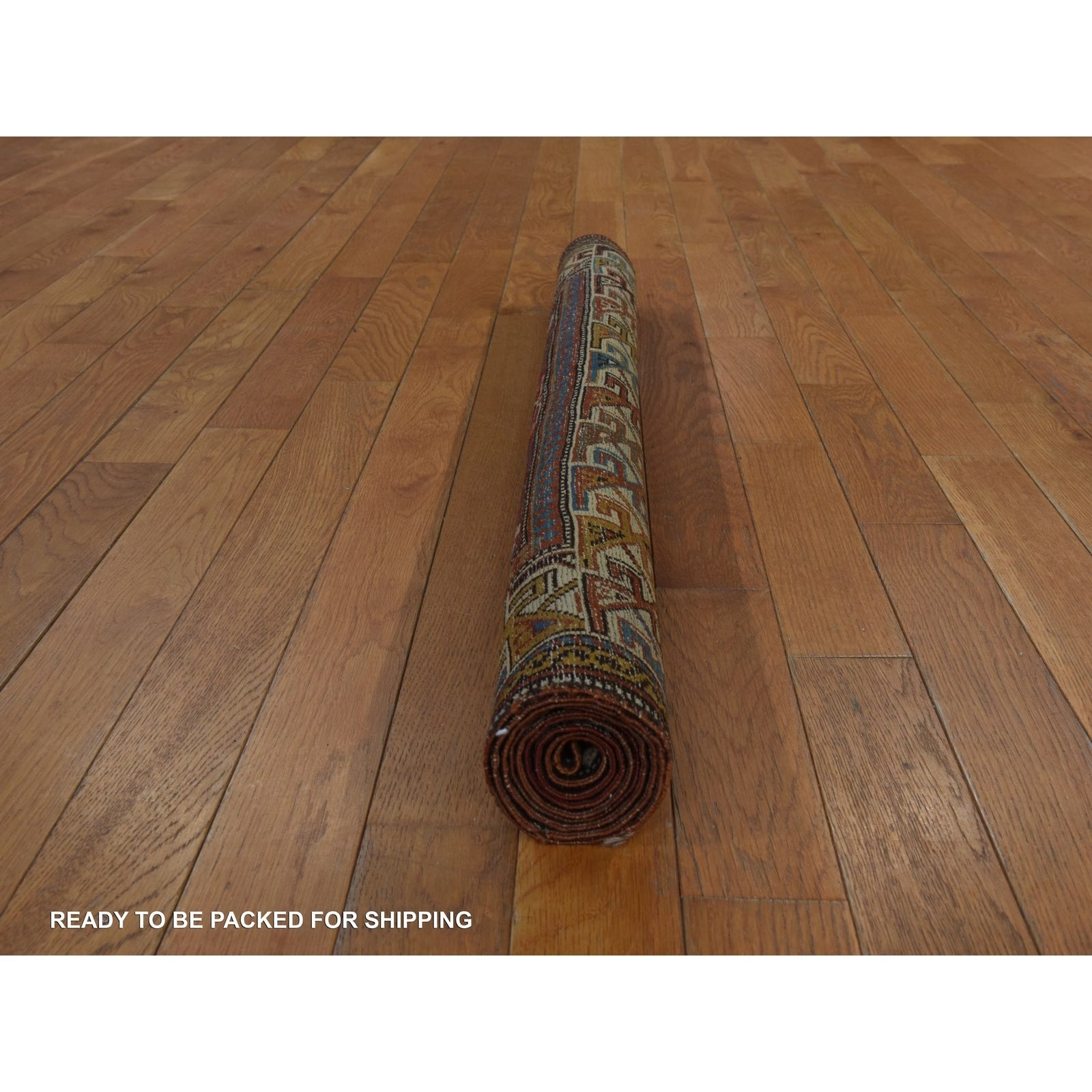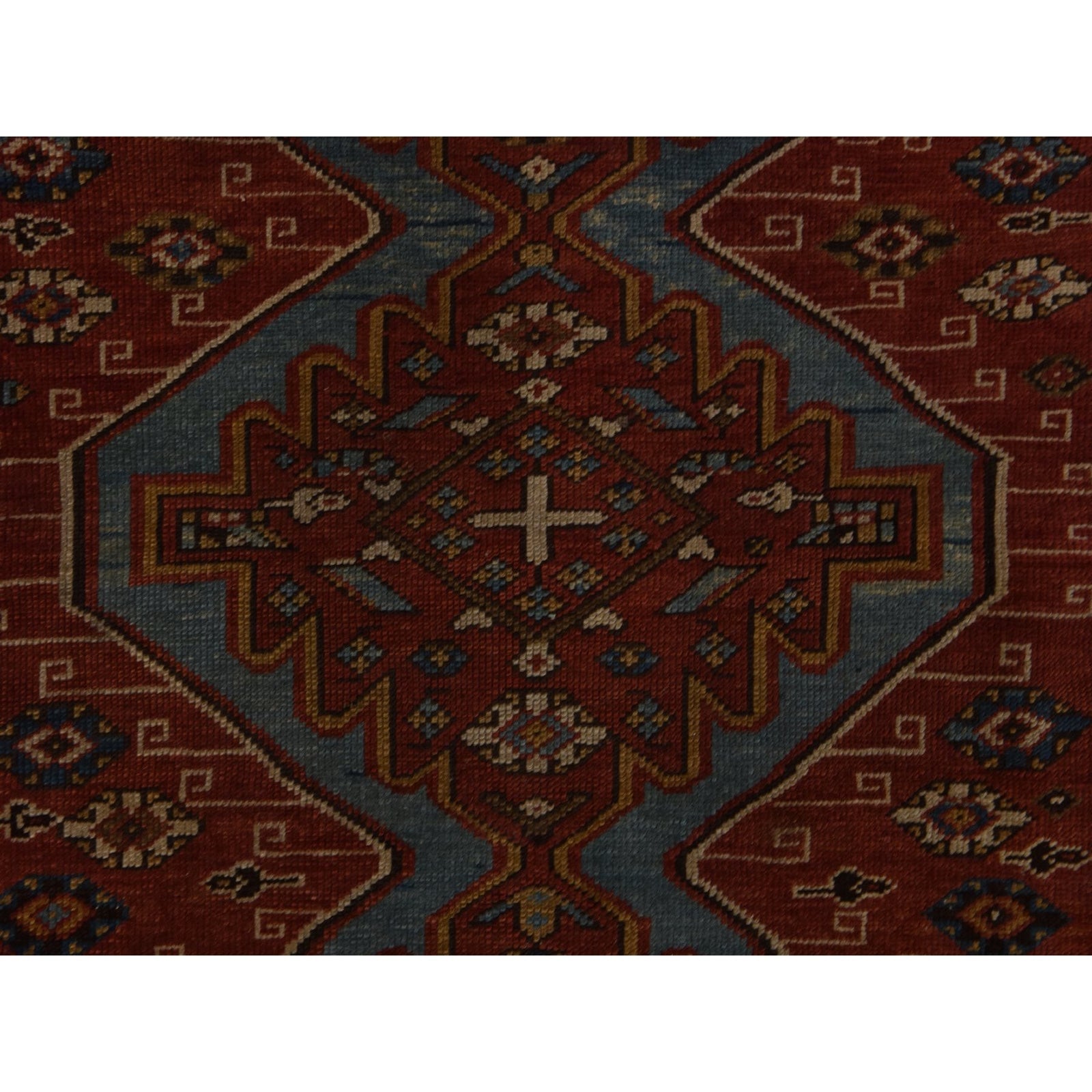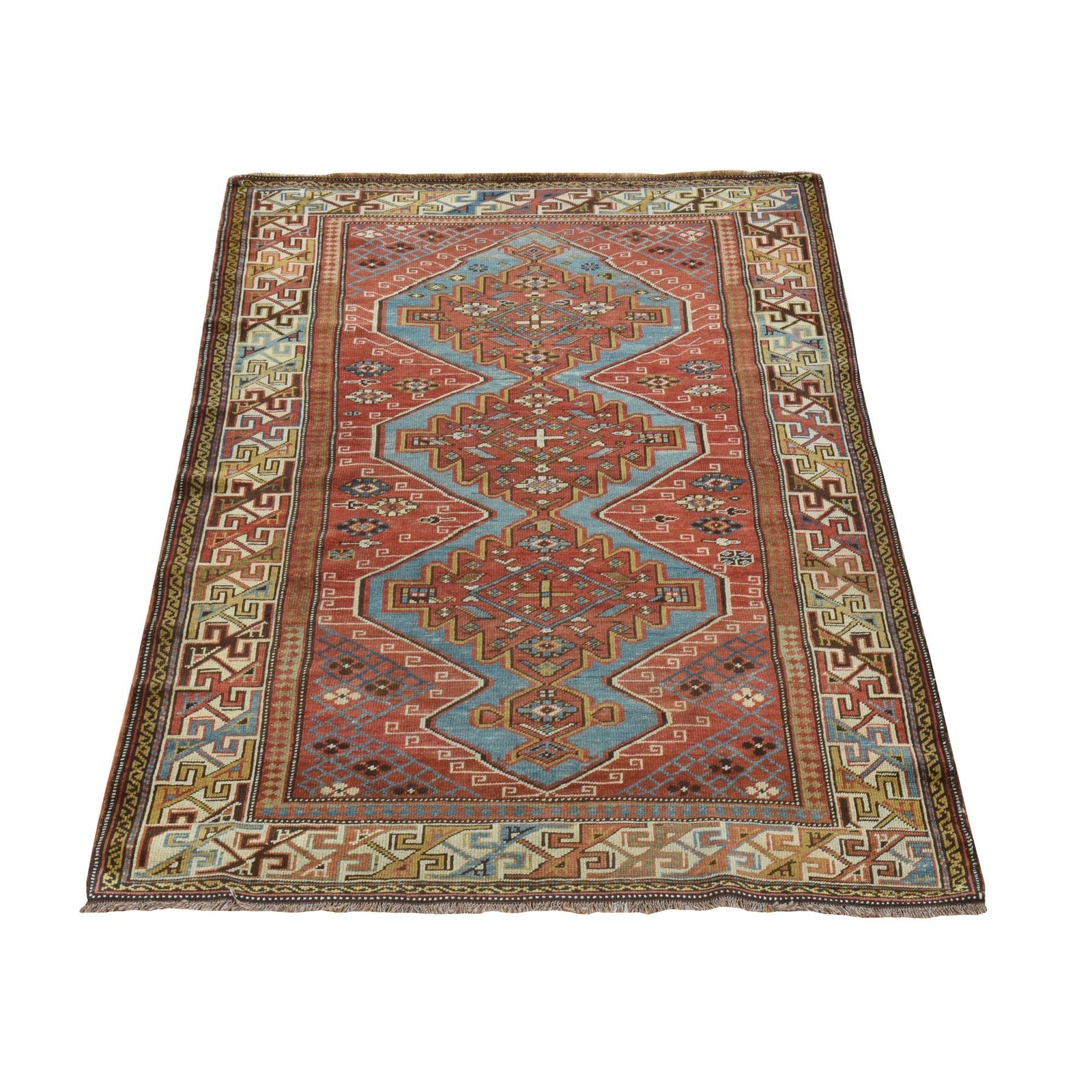 3'10"X5'7" Crimson Red Antique Caucasian Kazak 100% Wool Hand Knotted Rug