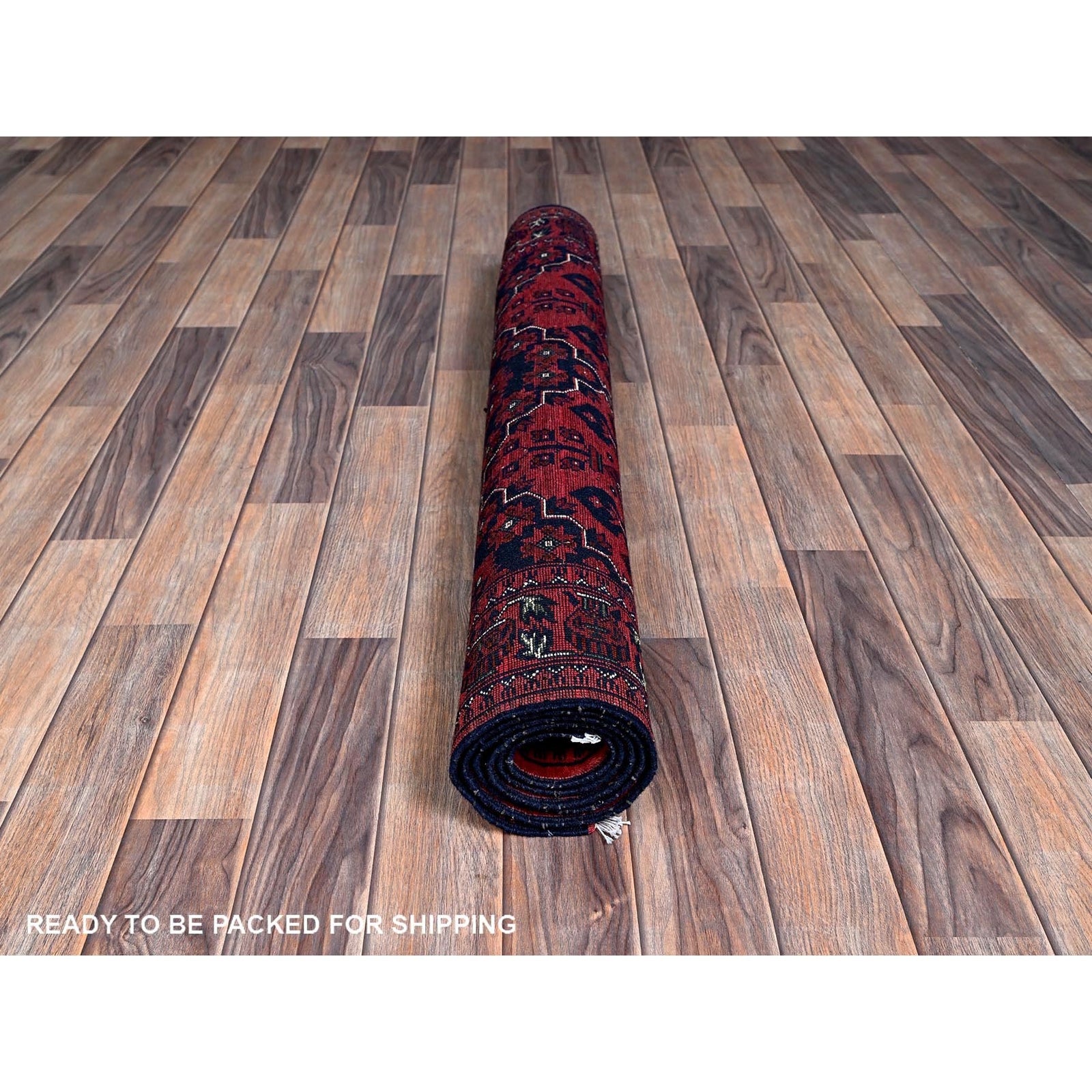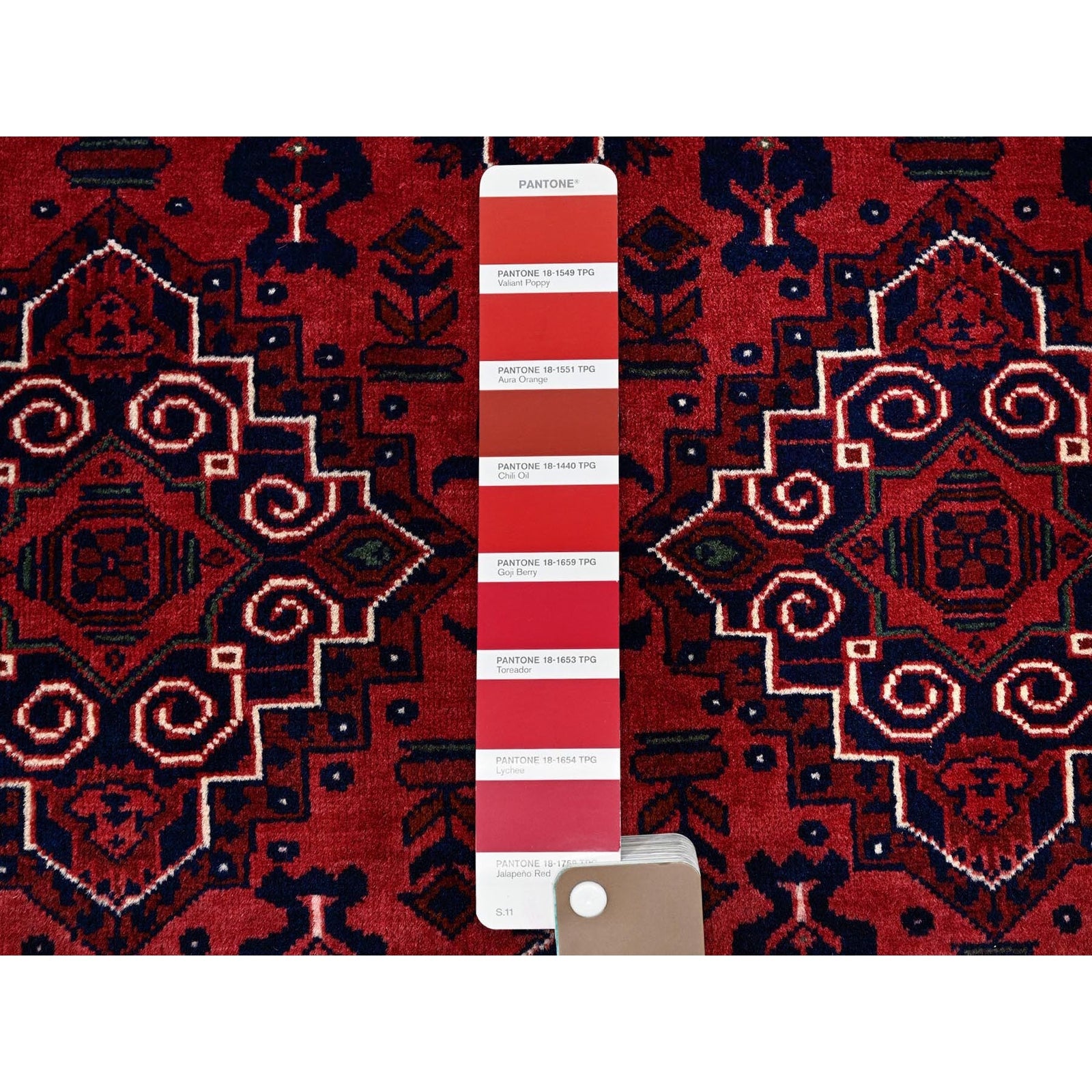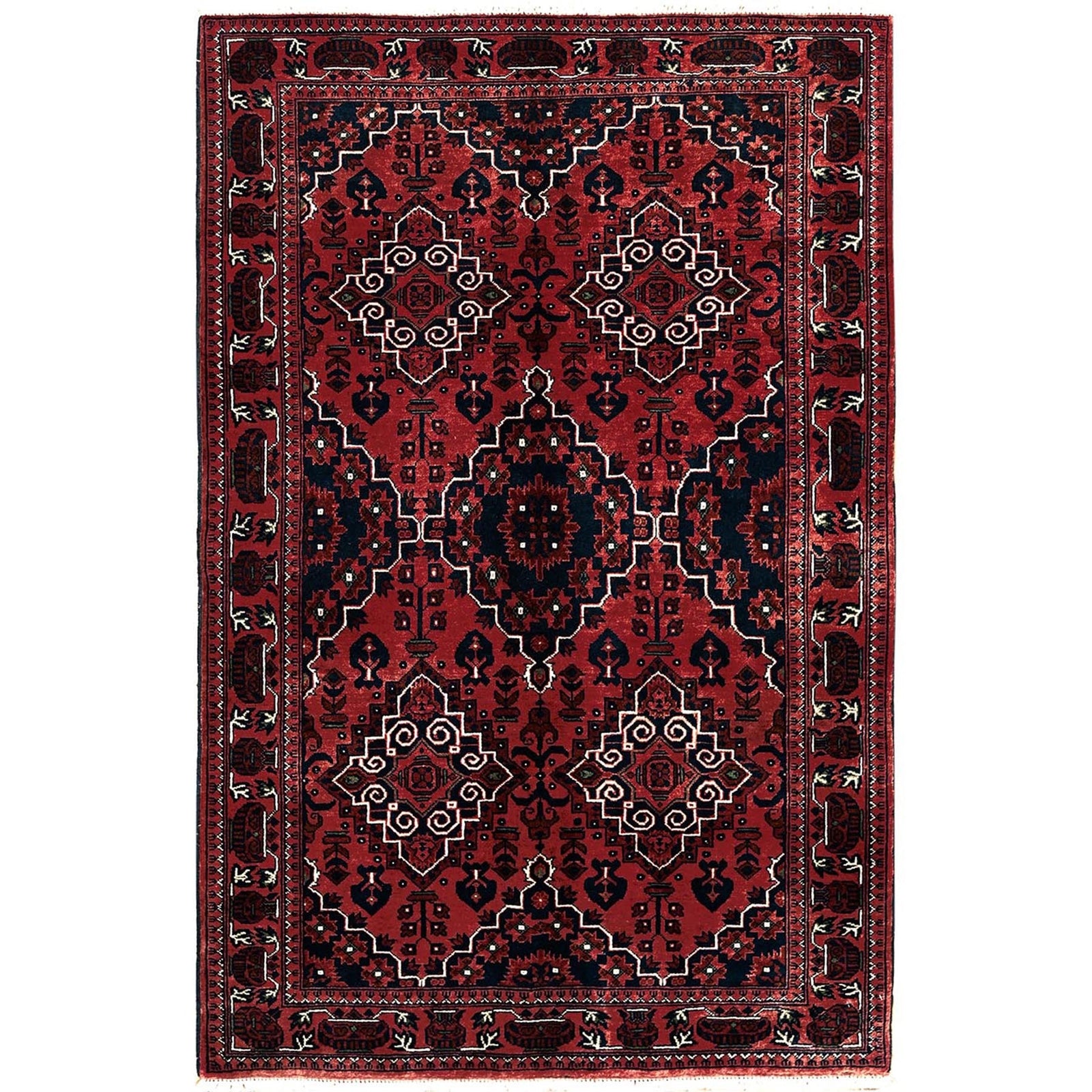 3'10"X6' Red Afghan Khamyab Geometric Design Hand Knotted Pure Wool Rug