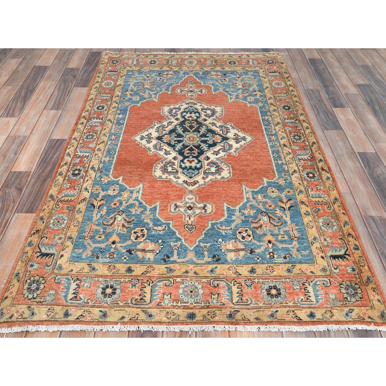 3'10"X6'2"Orange Afghan With Bookshaish Design Hand Knotted Pure Wool Rug