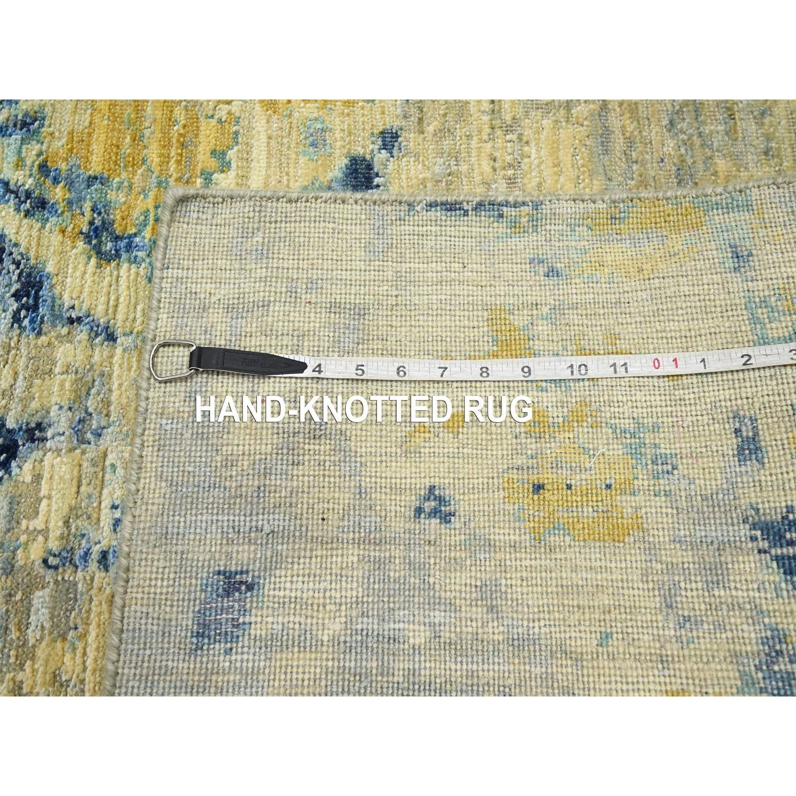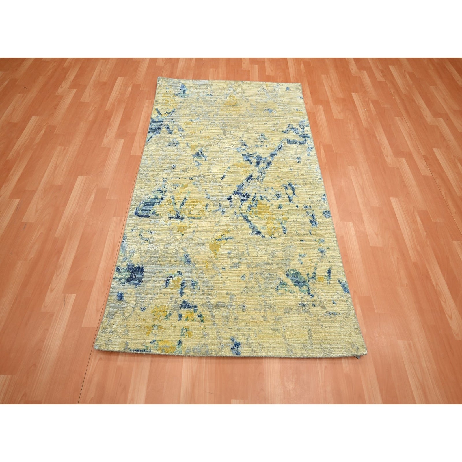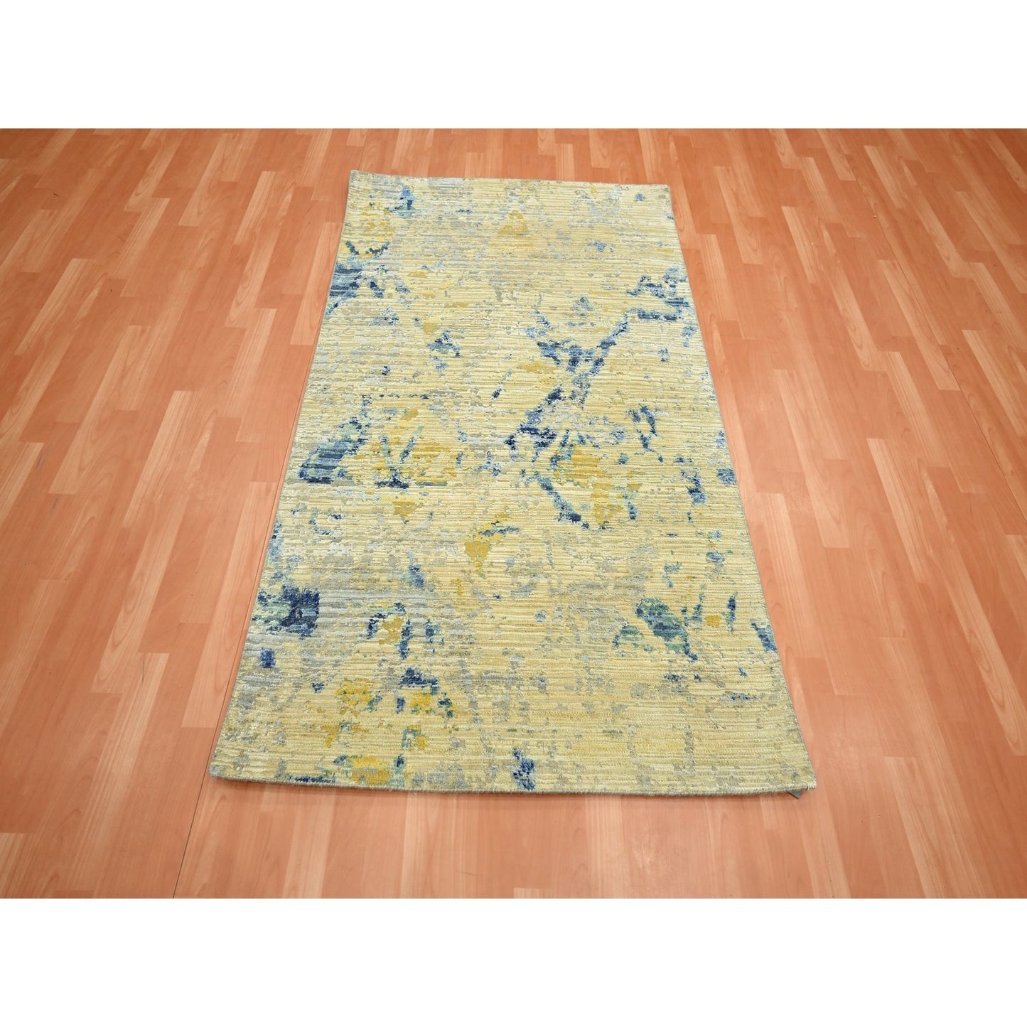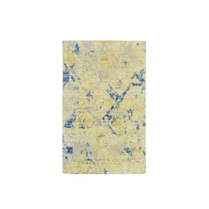 3'10"X6'3" Brown With Navy Silk With Wool Modern Design Hand Knotted Rug
