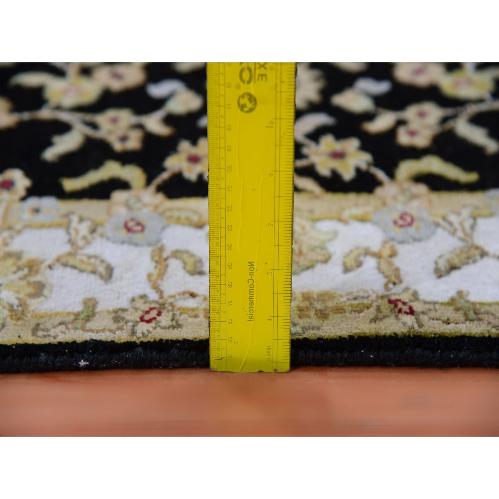 3'1"X12'2" Caviar Black Rajasthan Hand Knotted Wool Silk Runner Rug