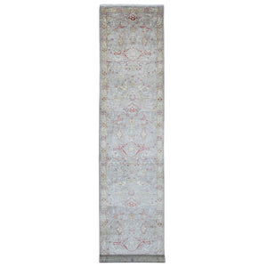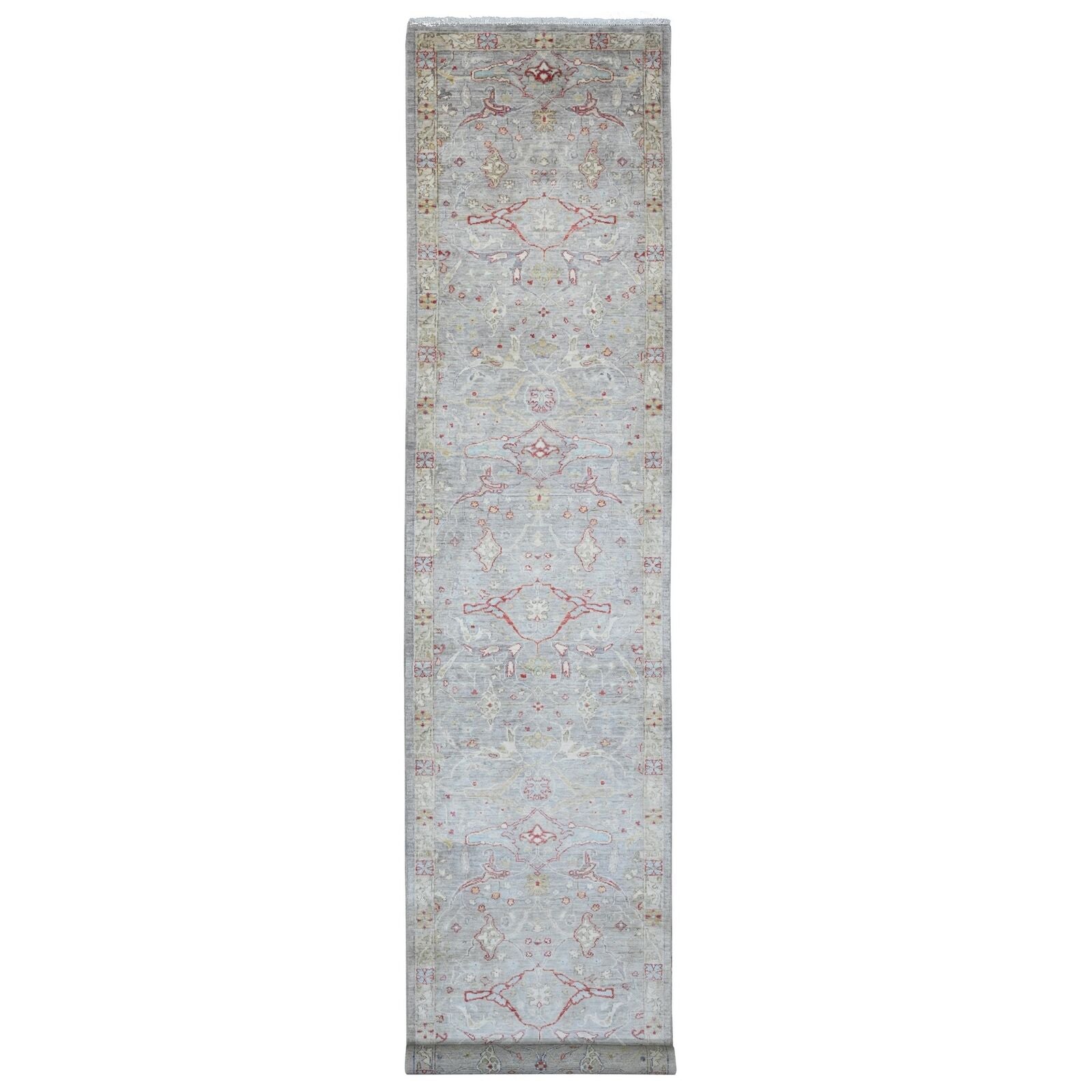 3'1"X15'10" Gray Peshawar Bijar Garus Design Hand Knotted Wool Runner Rug