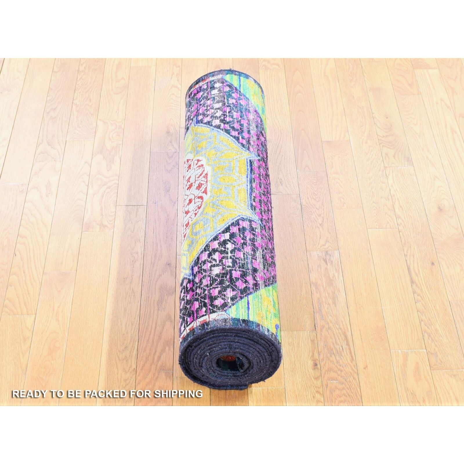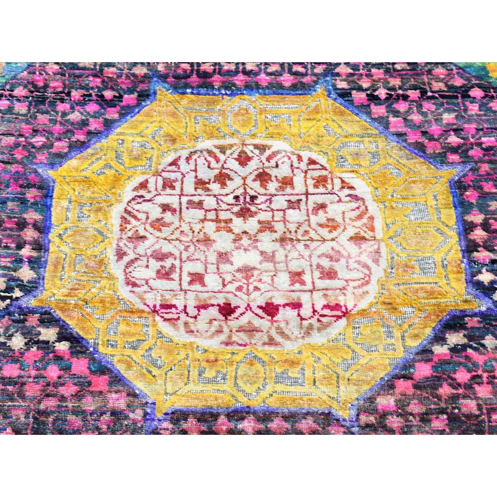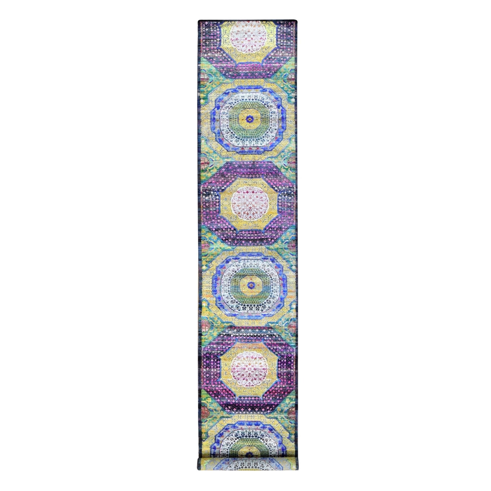 3'1"X17'4" Green Mamluk Design Silk With Wool Hand Knotted Xl Runner Rug