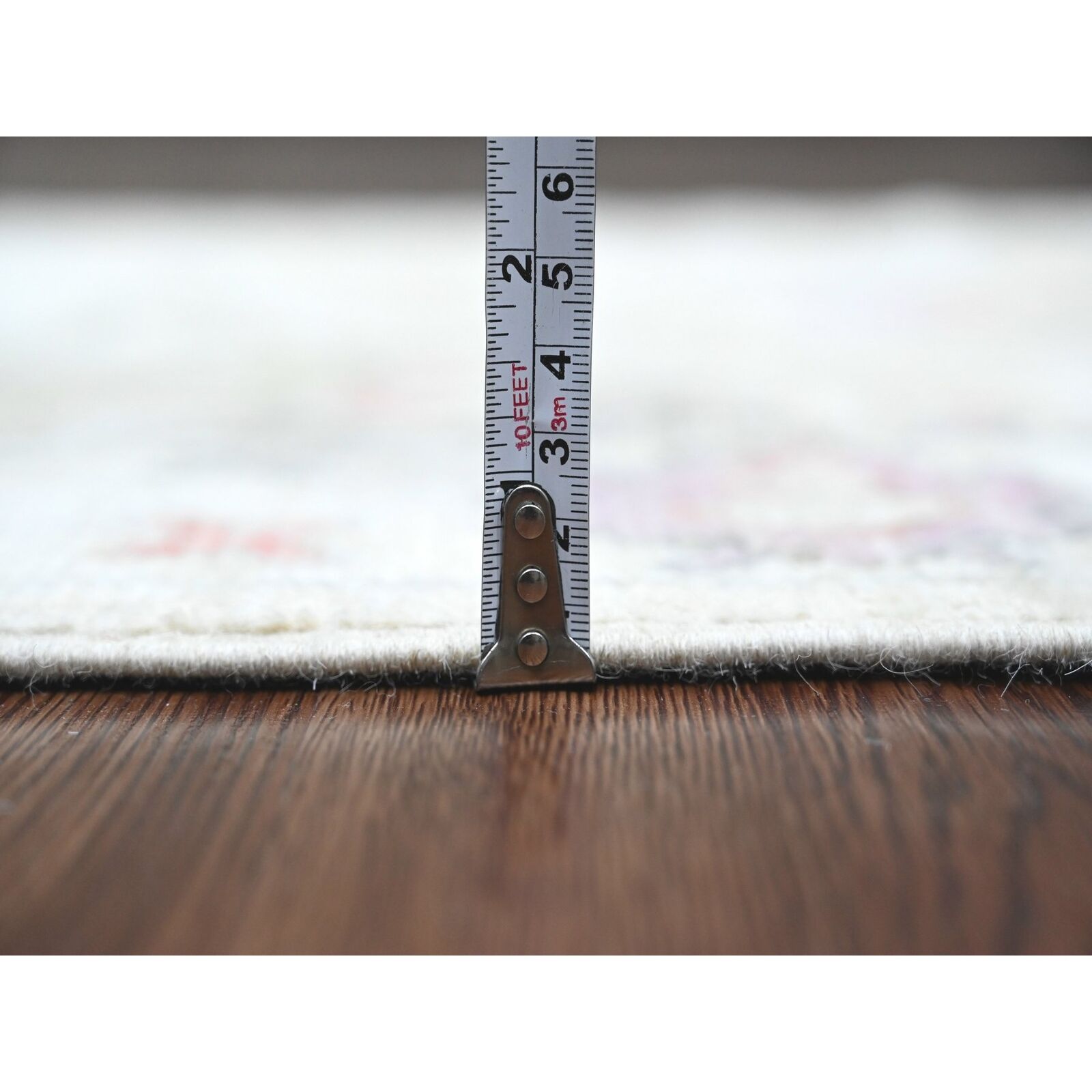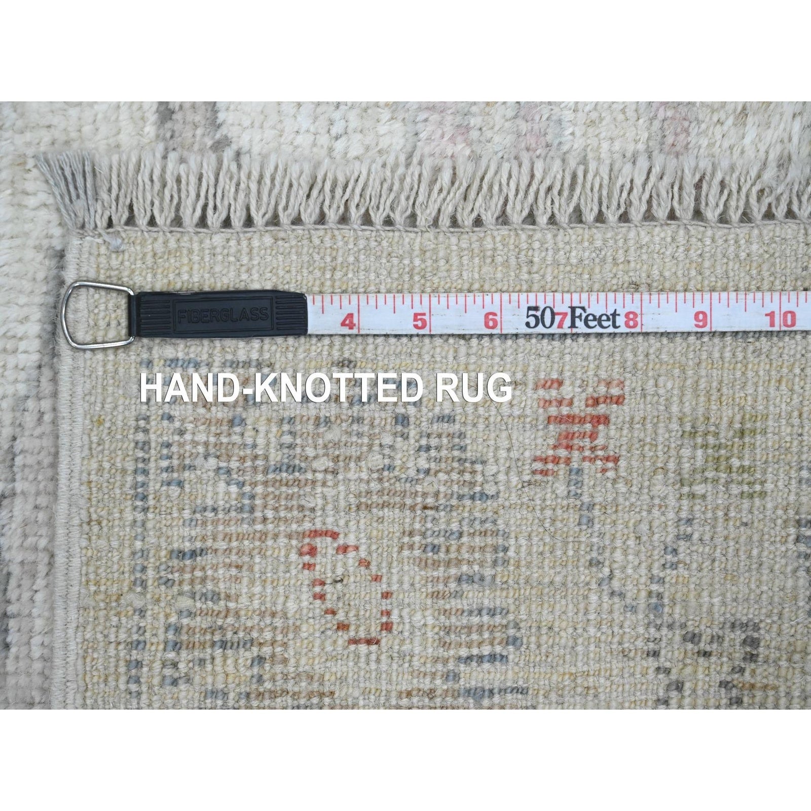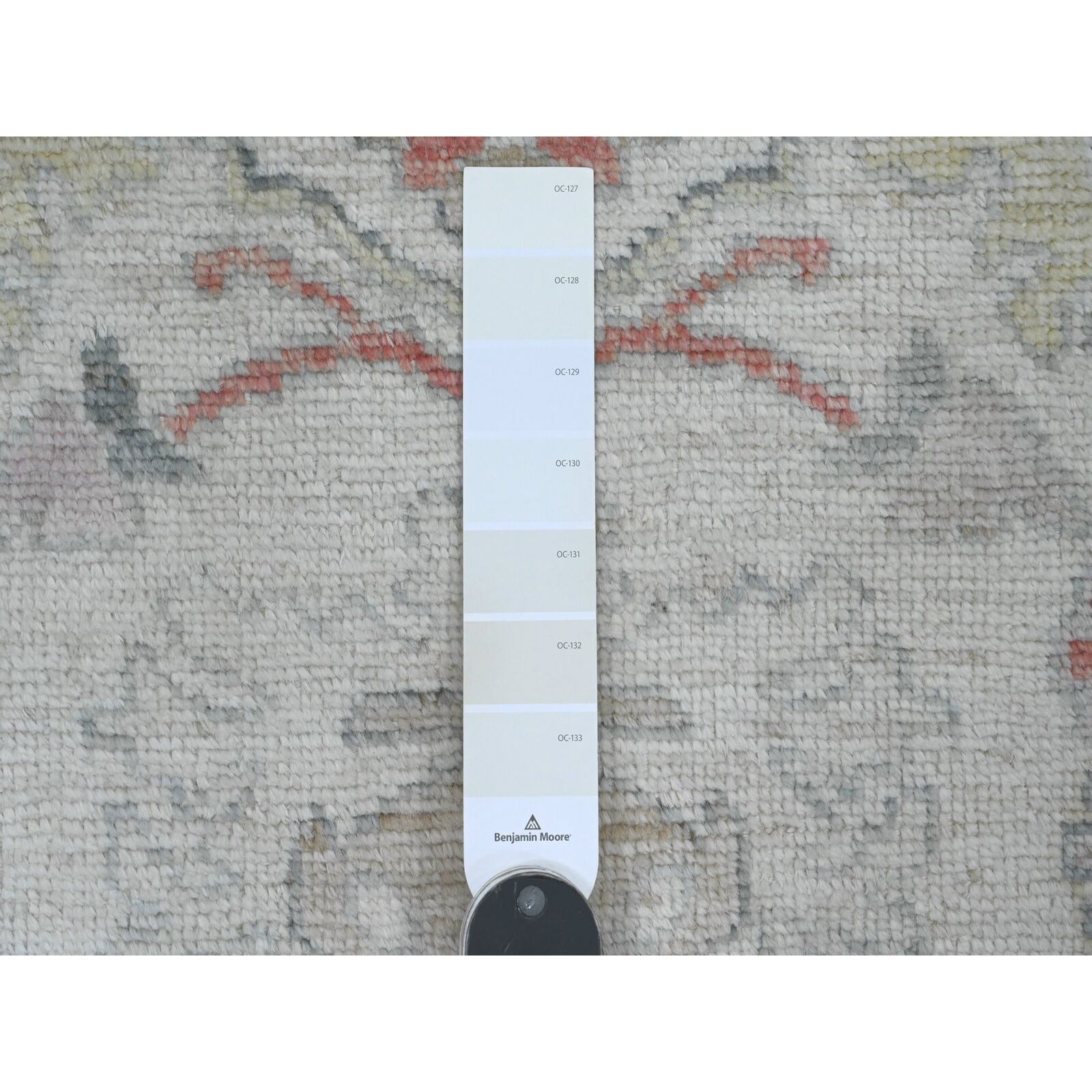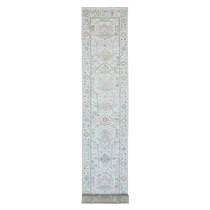 3'1"X22'4" White Angora Oushak Leaf Design Hand Knotted Wool Runner Rug