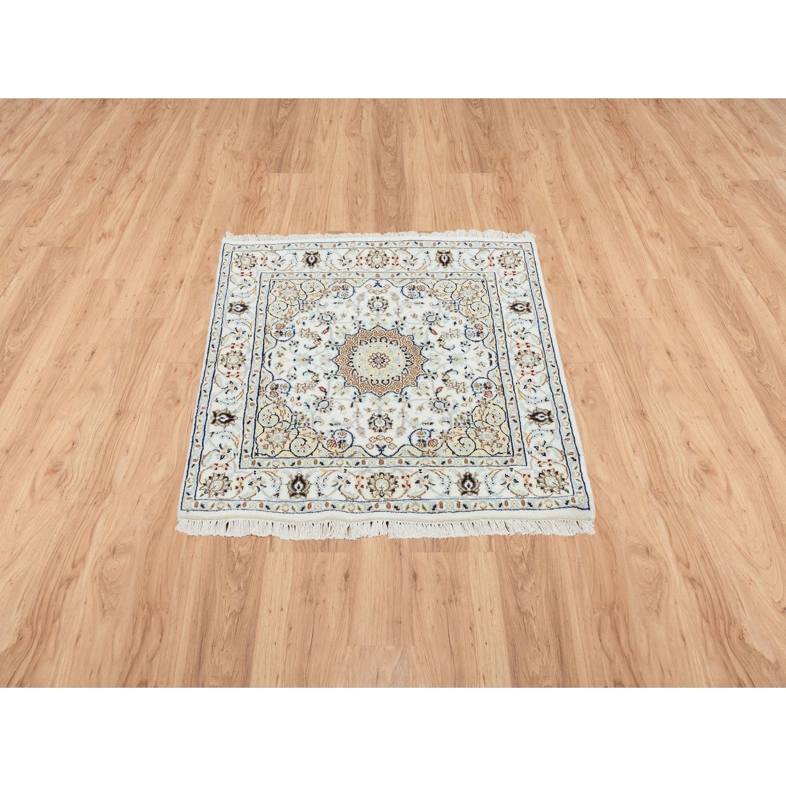 3'1"X3'1" Ivory 250 Kpsi Nain Pure Wool Hand Knotted Square Oriental Rug