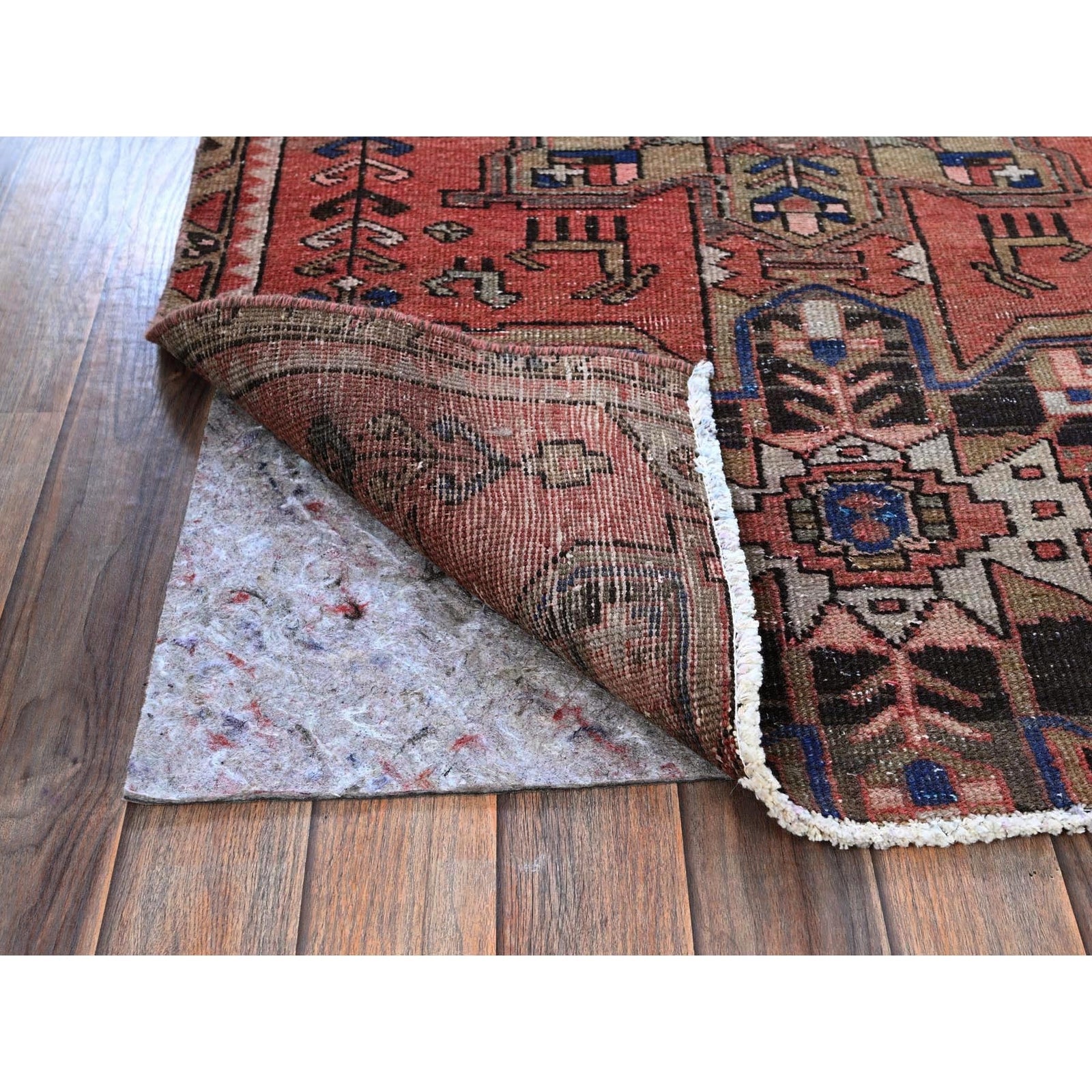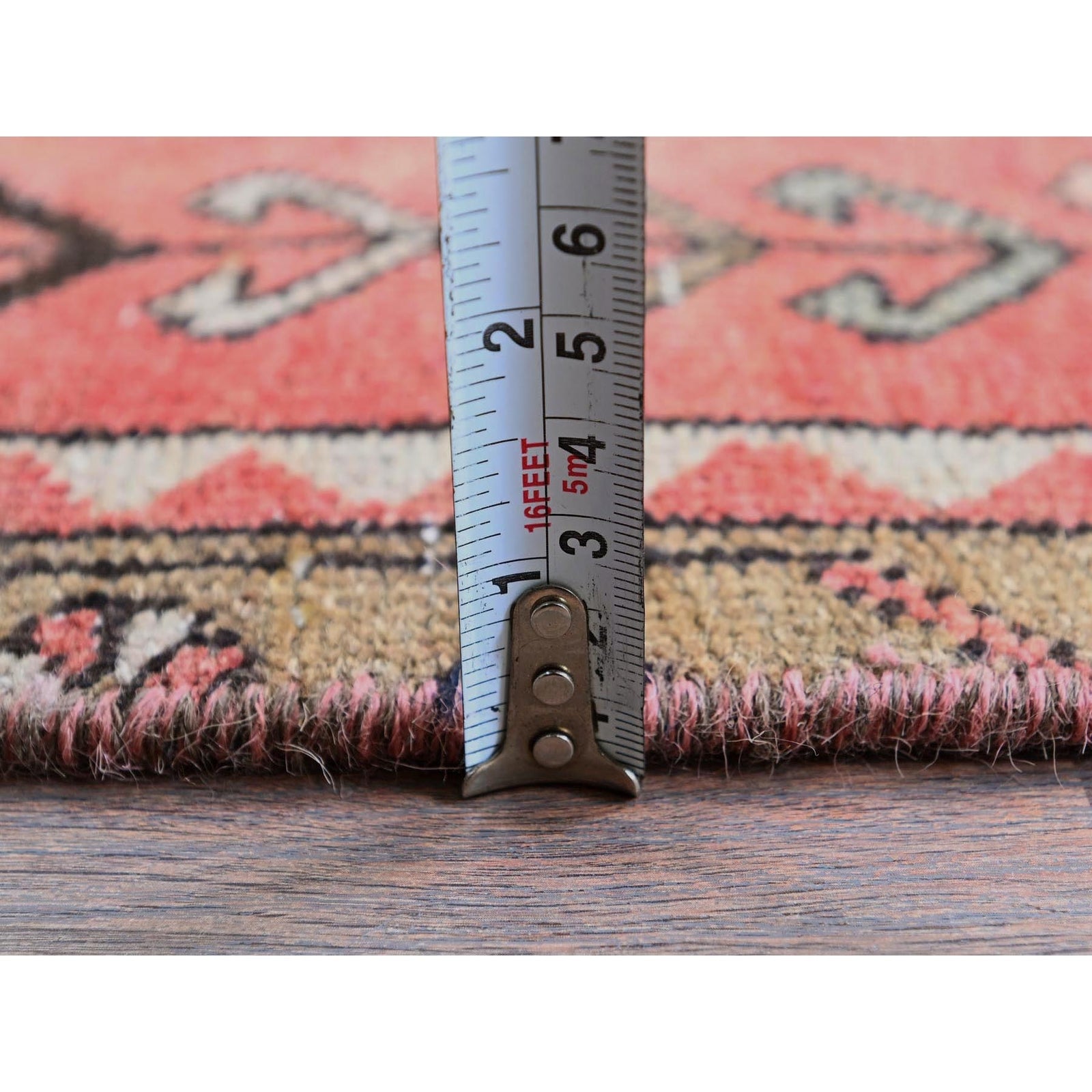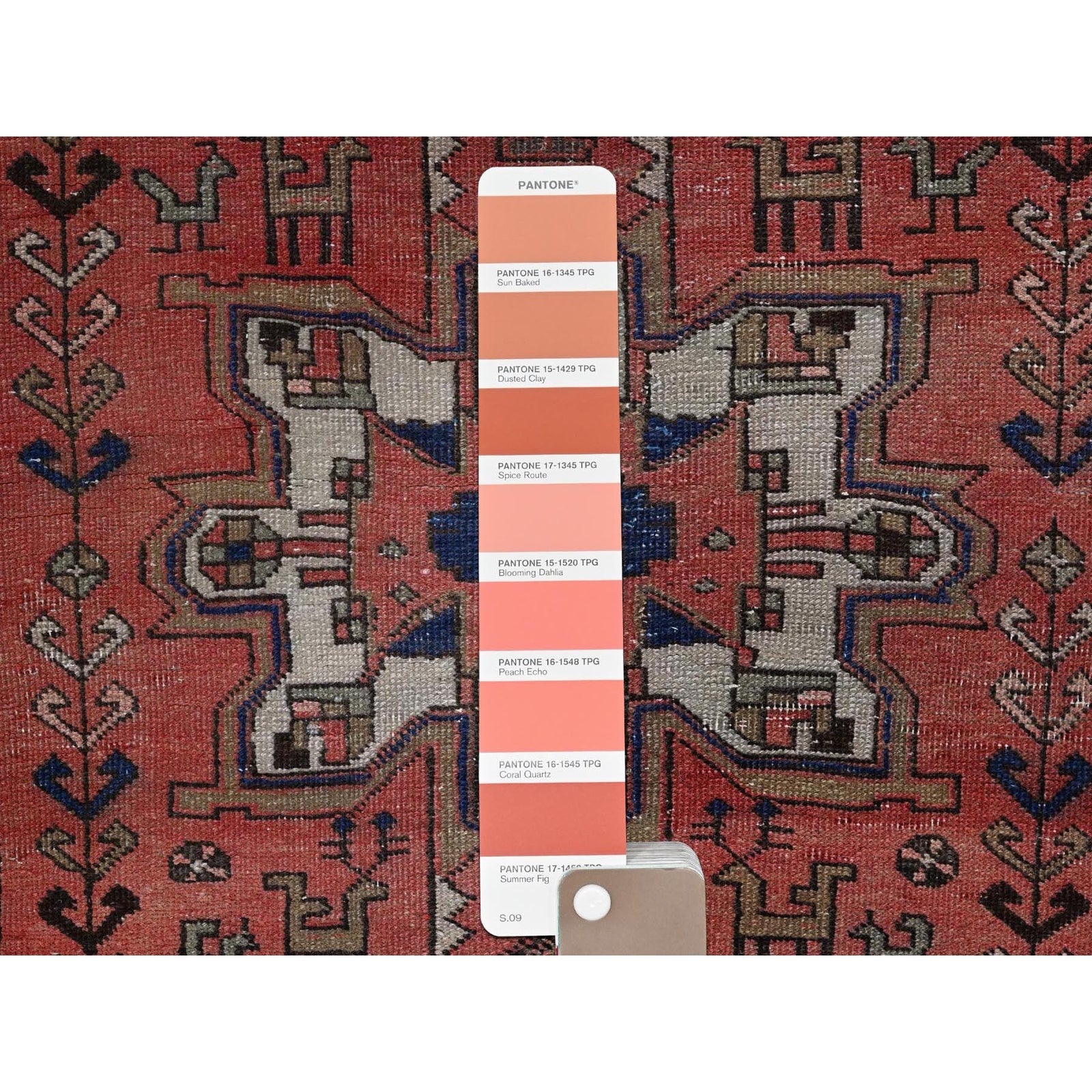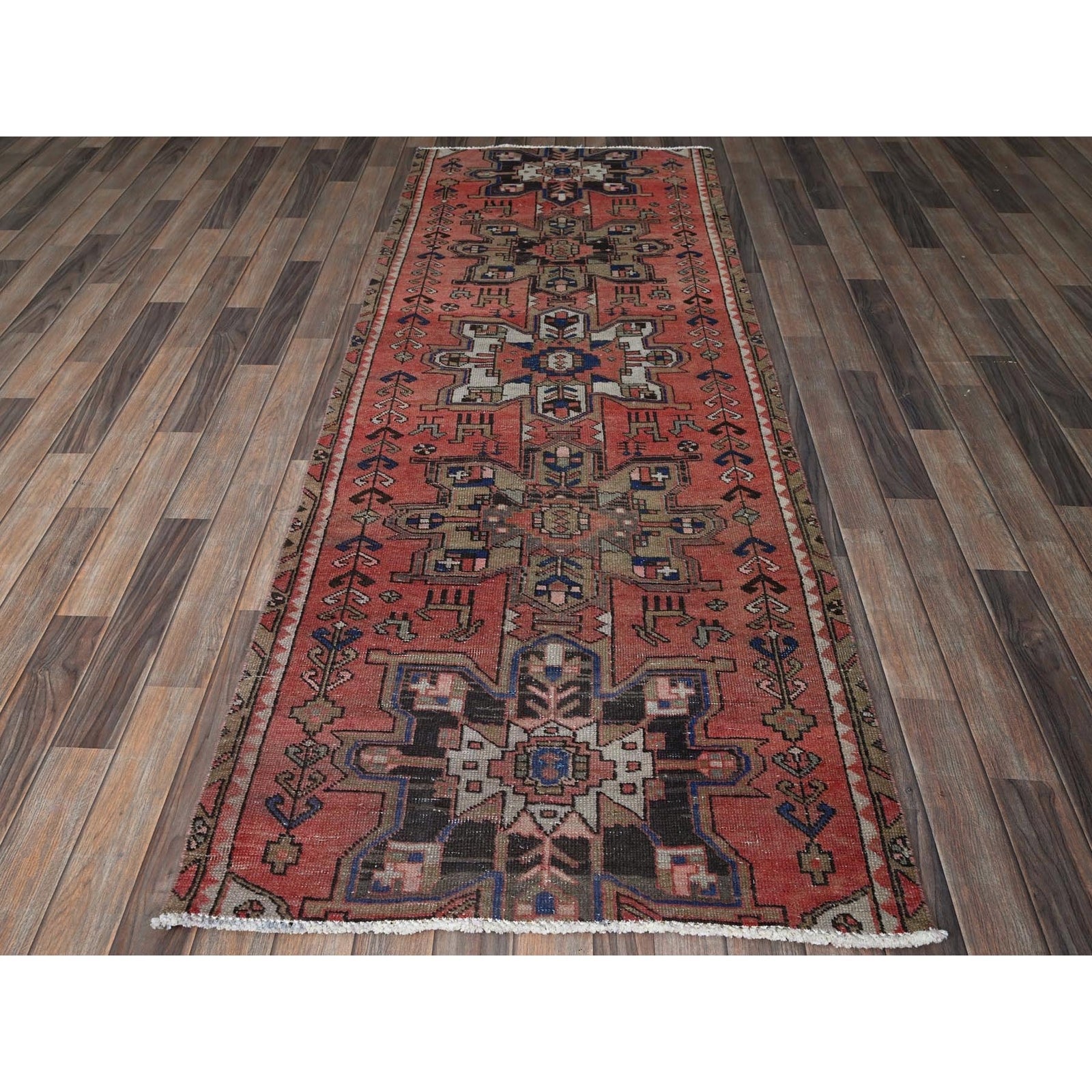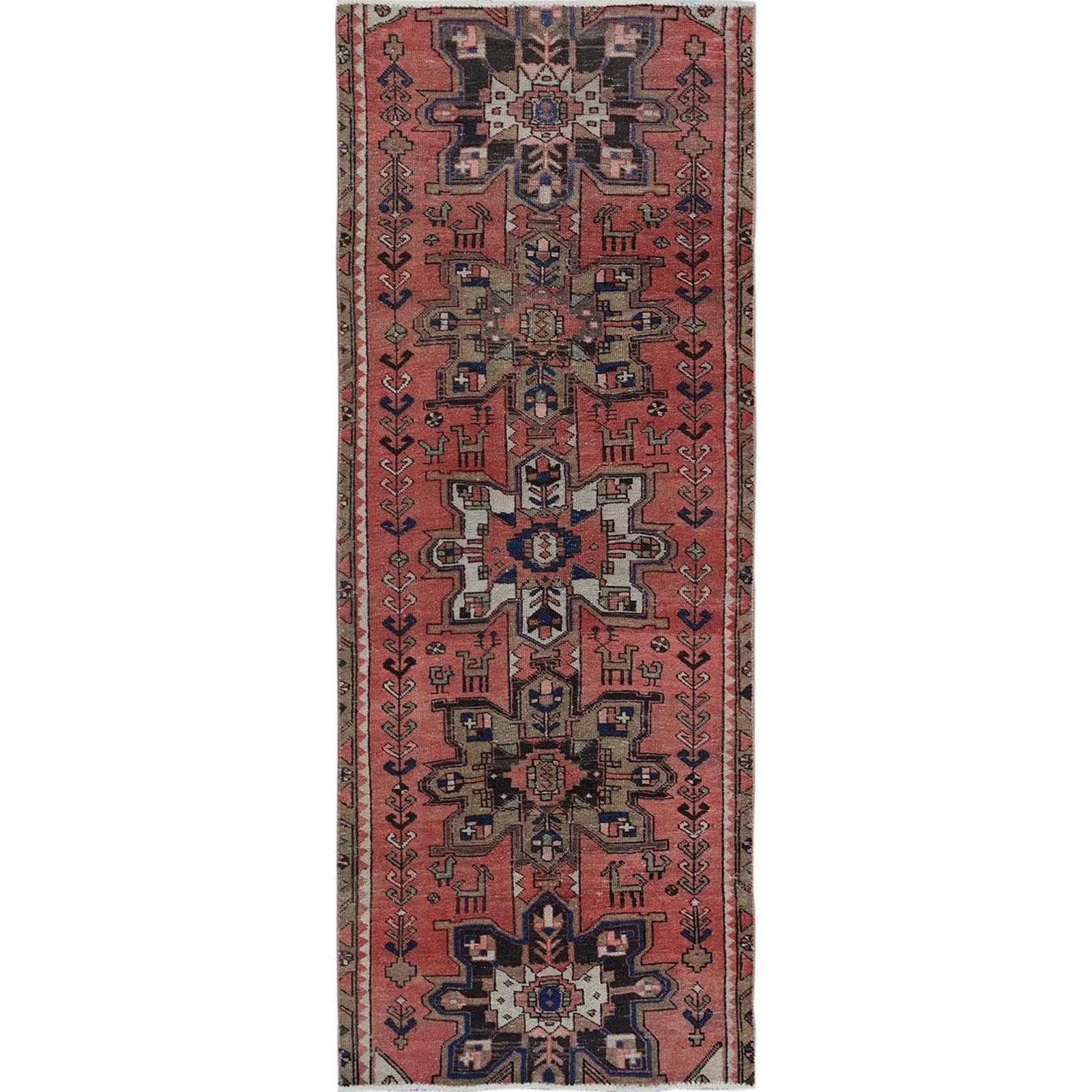 3'1"X8' Blush Red, Vintage Zoroastrian Heris Hand Knotted Wool Runner Rug