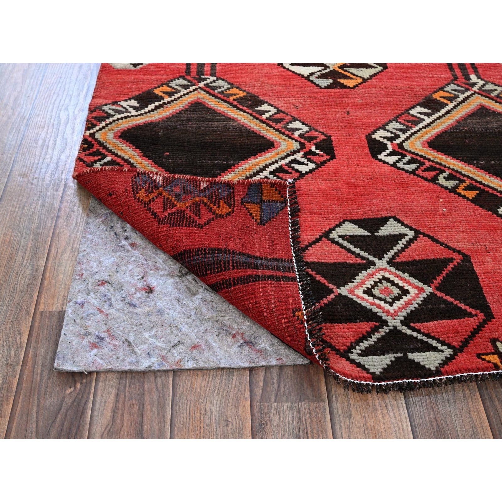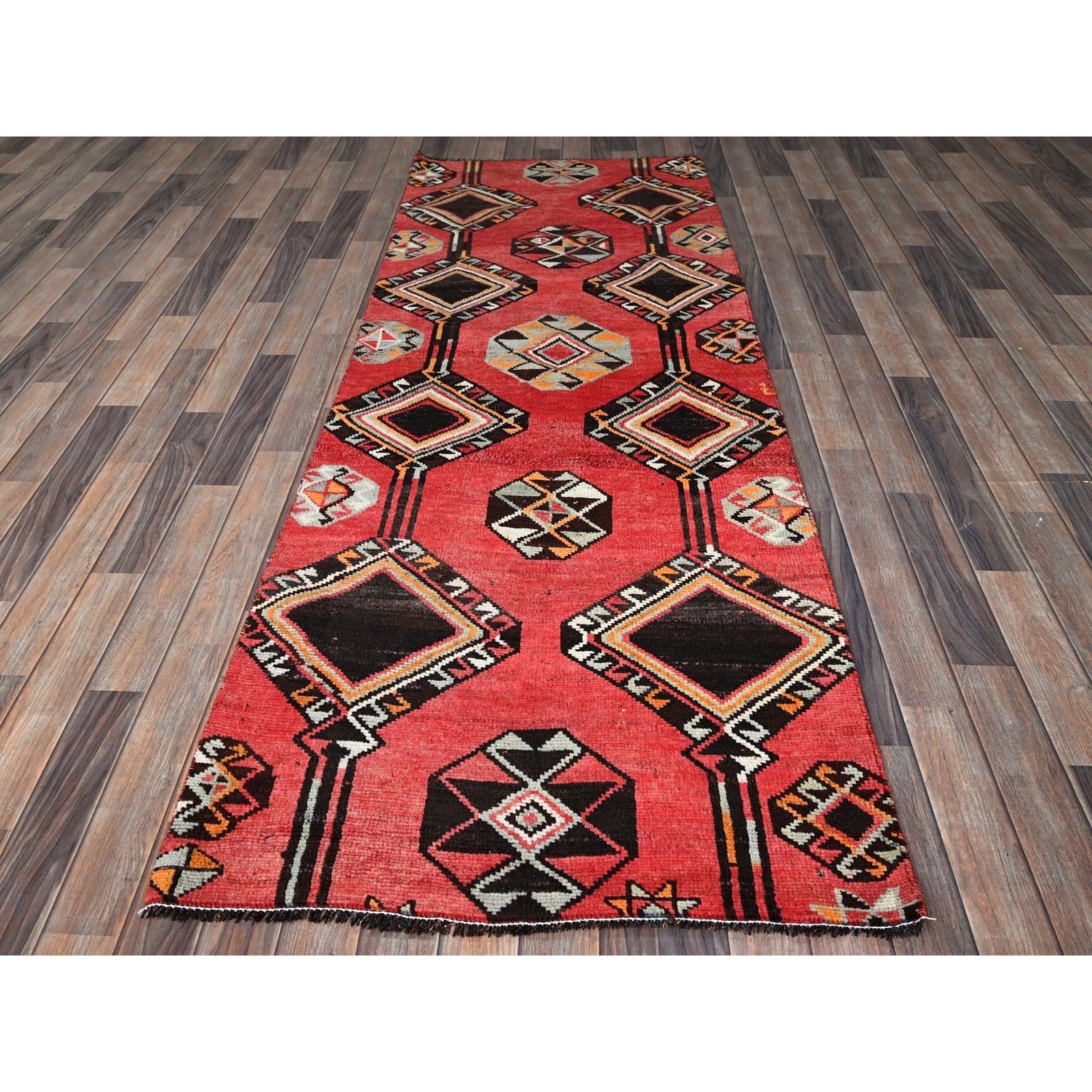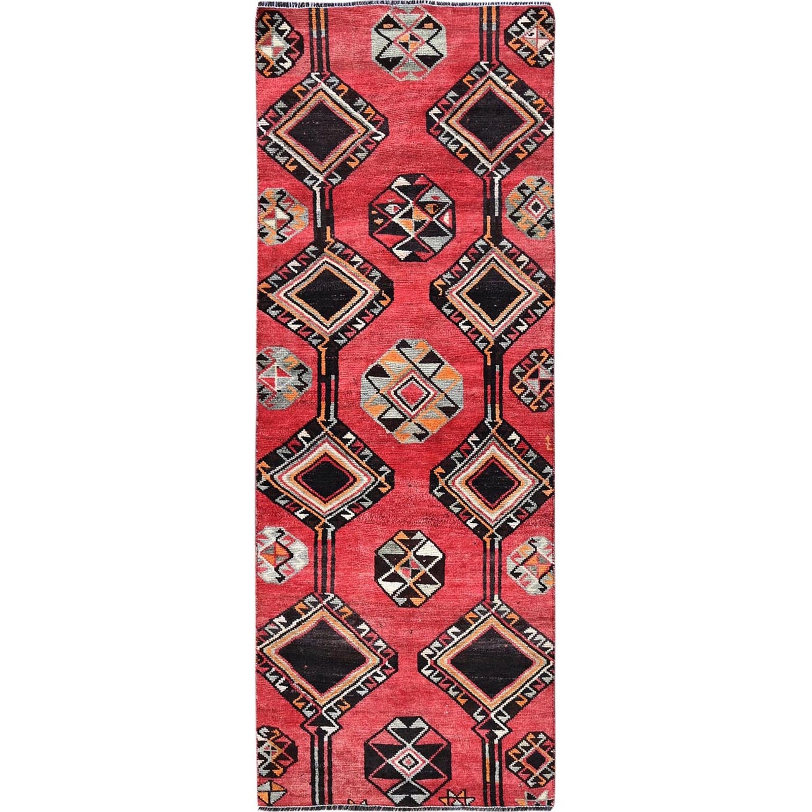 3'1"X8'4" Red Vintage Zoroastrian Sheeraz Pure Wool Hand Knotted Runner Rug