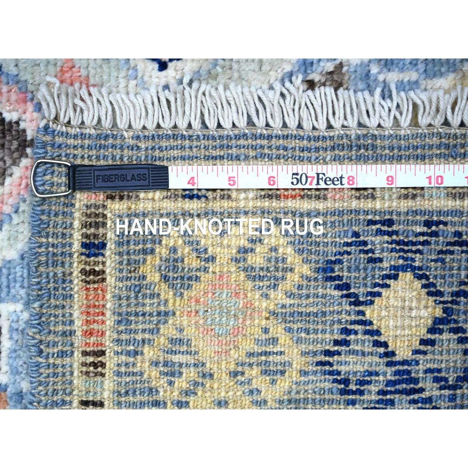 3'2"X10'1" Arctic Blue Hand Knotted Village Inspired Shiny Wool Rug