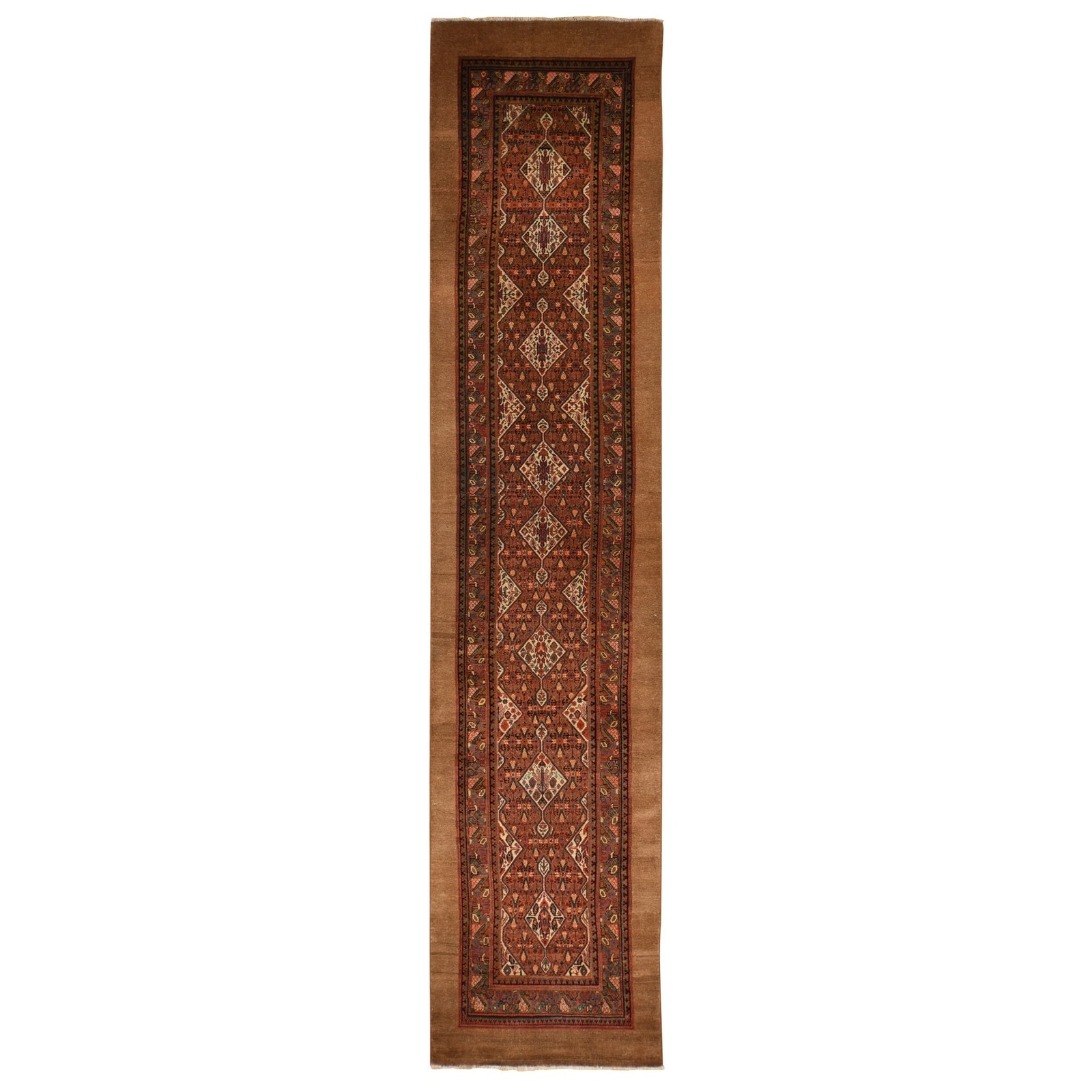 3'2"X15' Brown Antique Camel Hair Serrib All Wool Hand Knotted Runner Rug