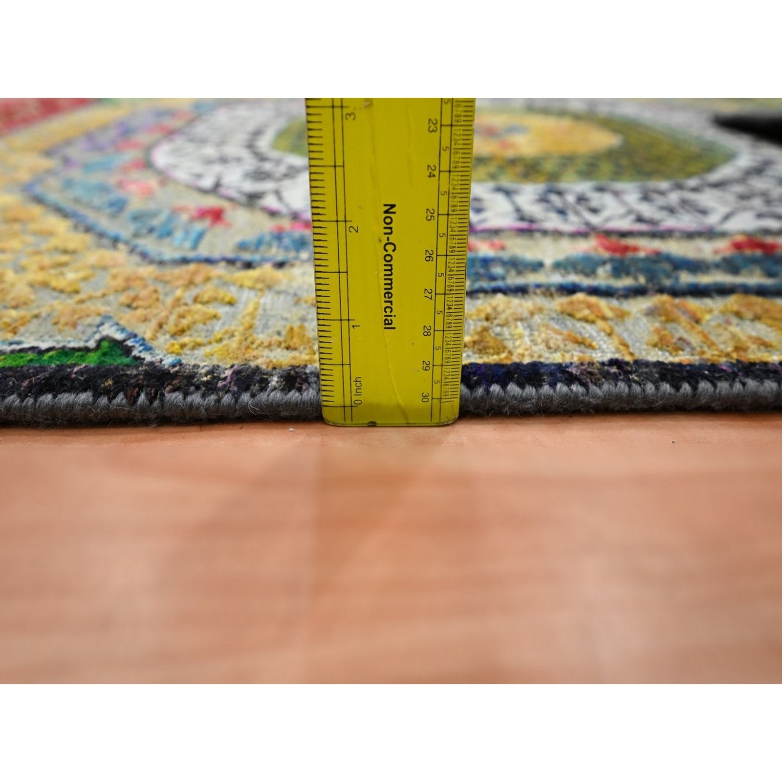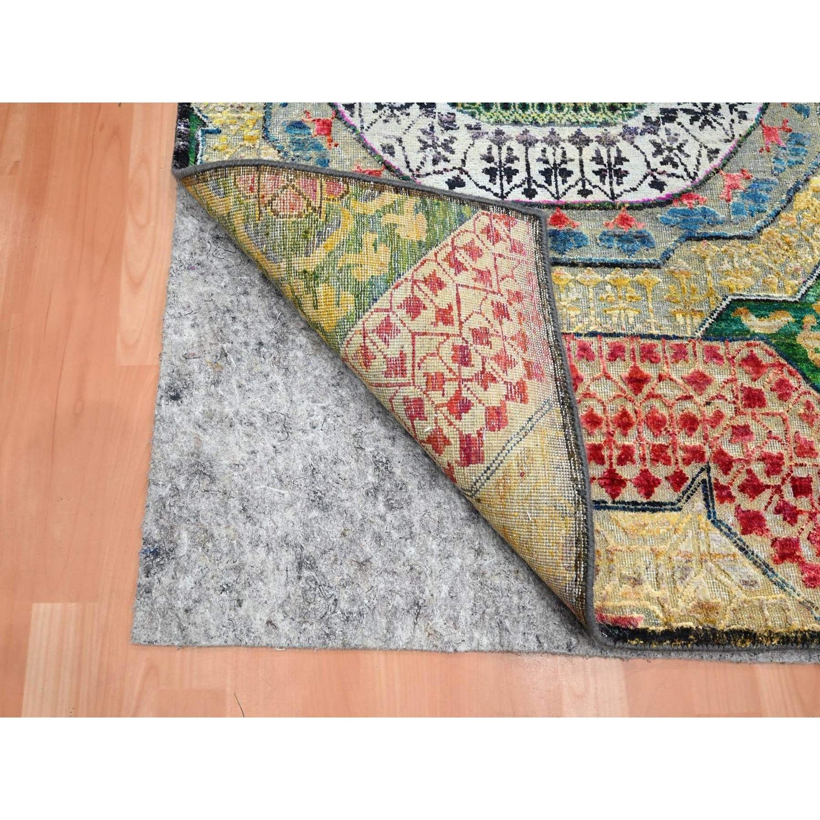 3'2"X5'2" Yellow Colorful Mamluk Design Hand Knotted Silk With Wool Rug
