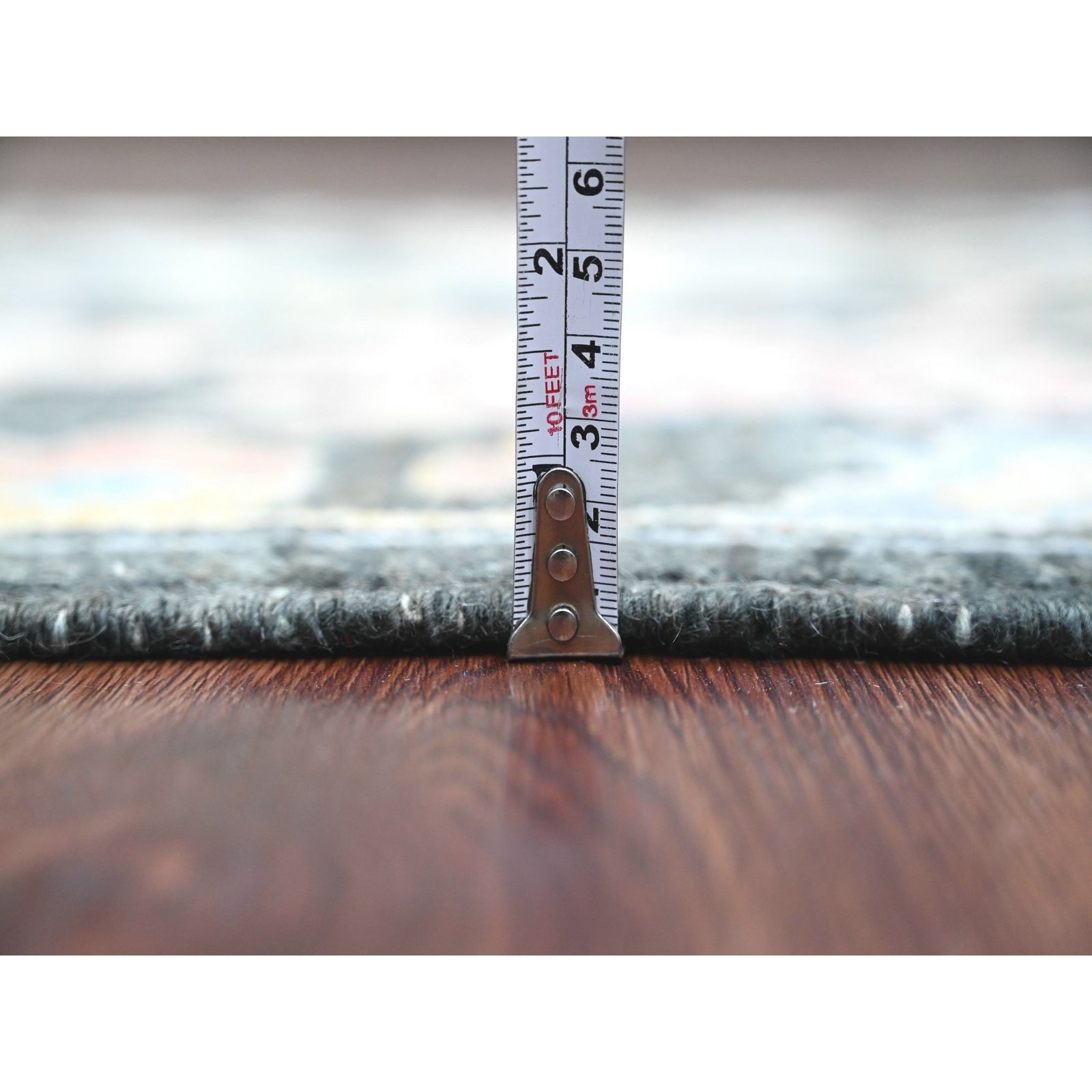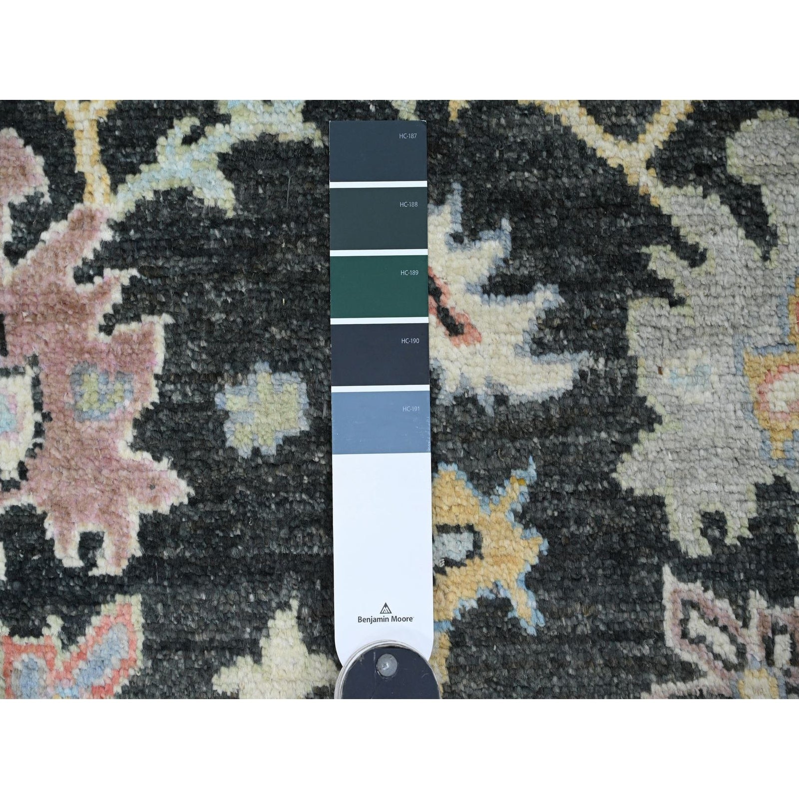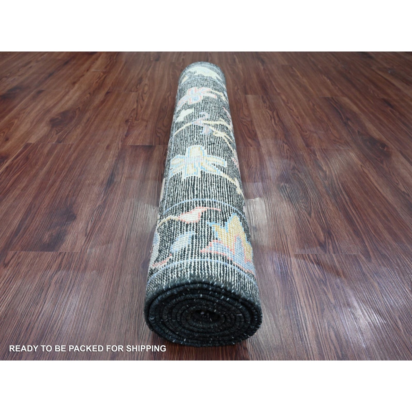 3'3"X11'6" Black Angora Oushak Leaf Design Hand Knotted Wool Runner Rug