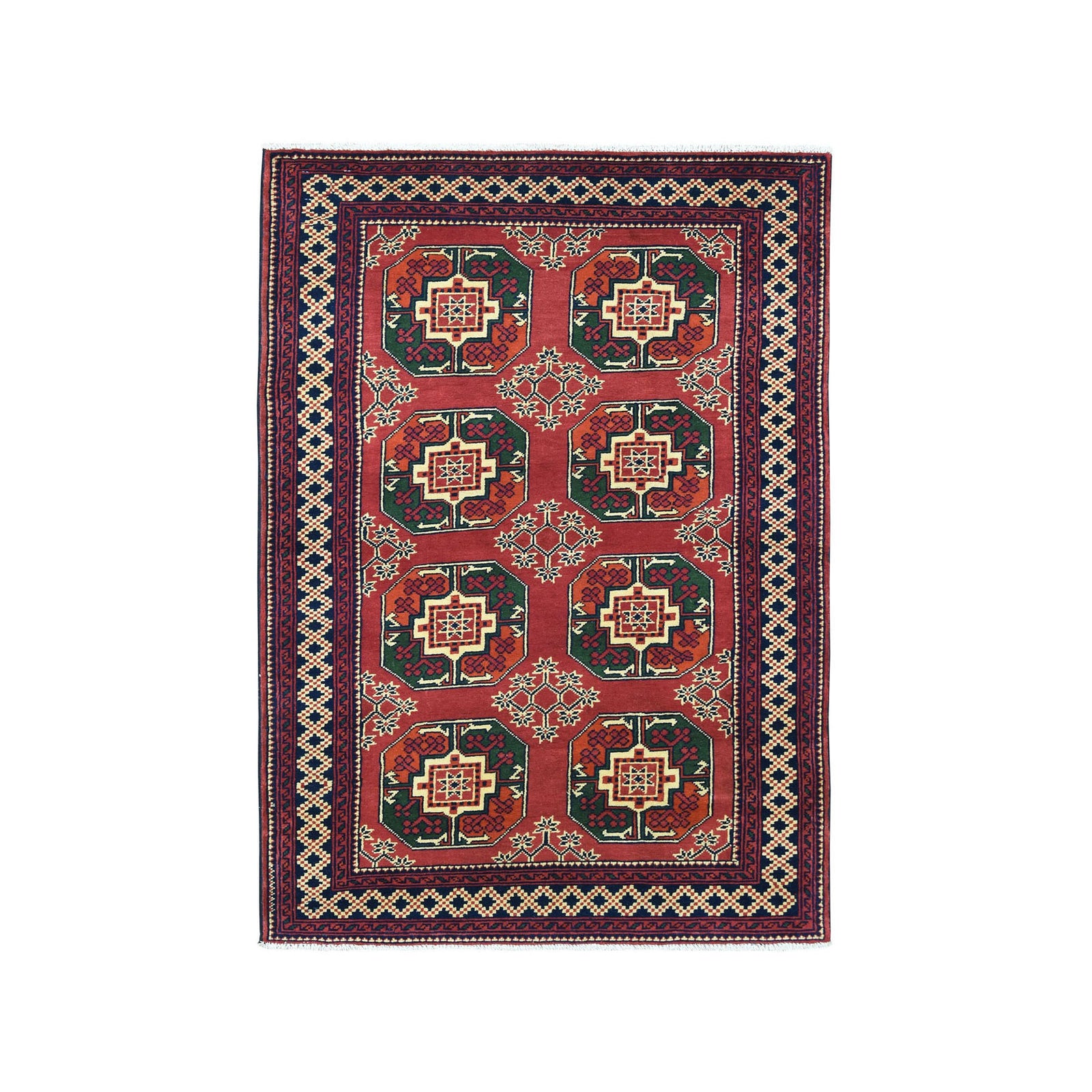 3'3"X5'3" Red Elephant Feet Design Afghan Andkhoy Pure Wool Handmade Rug