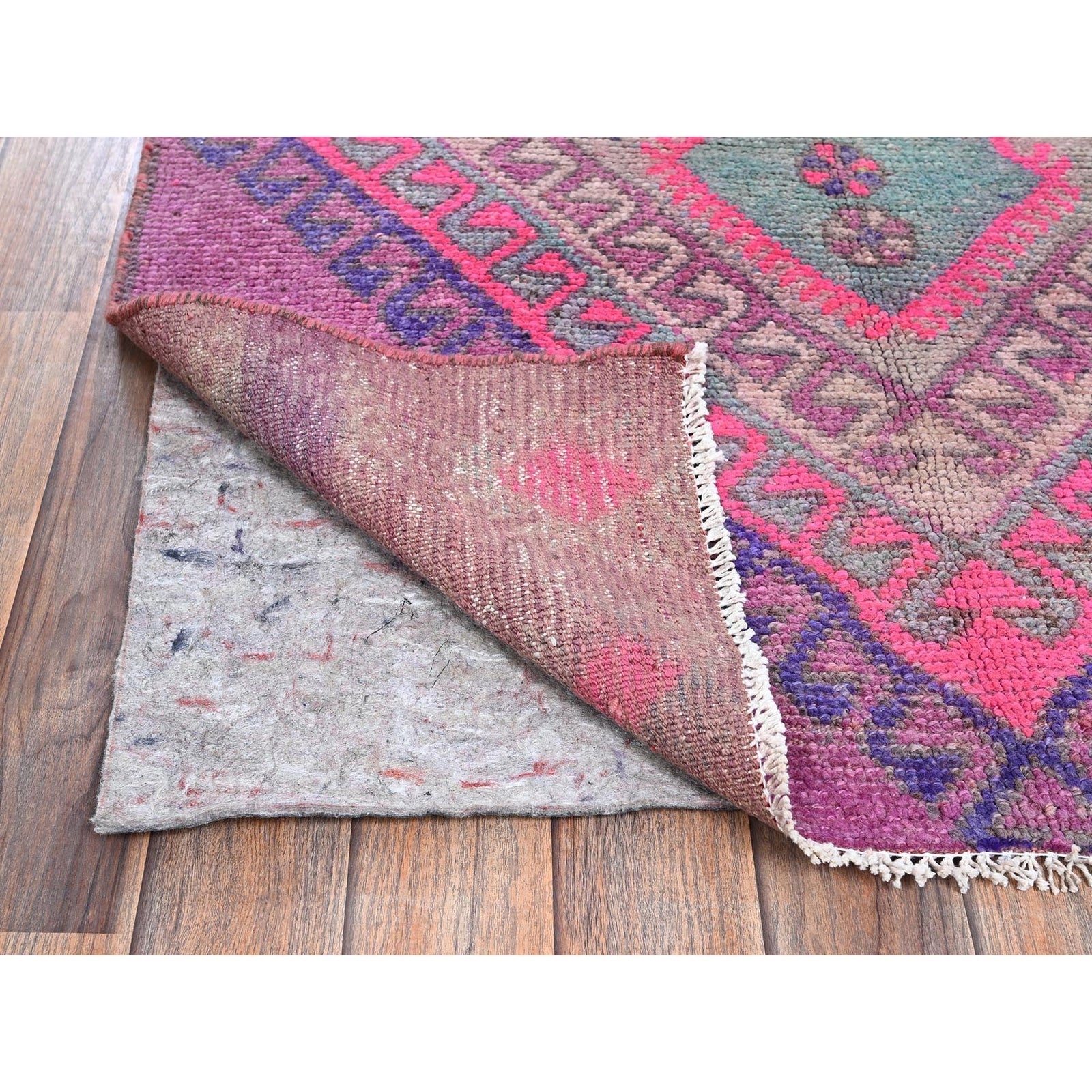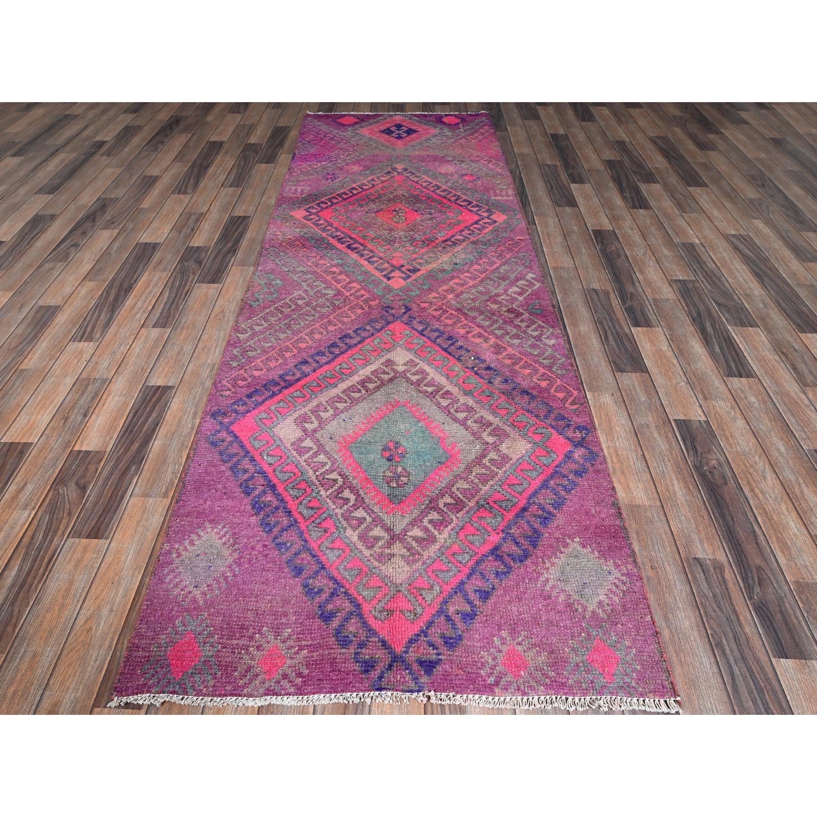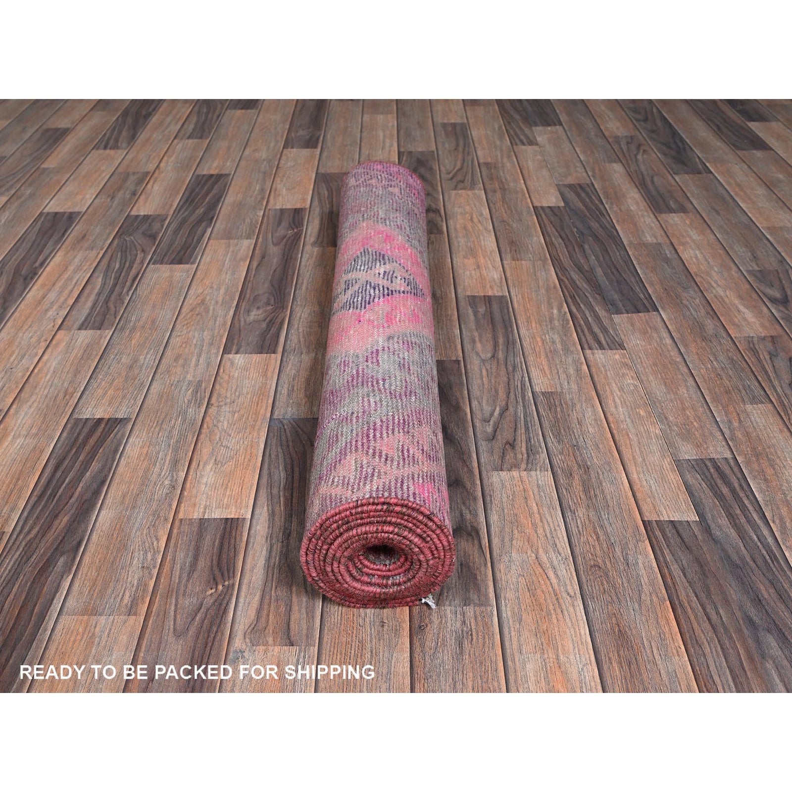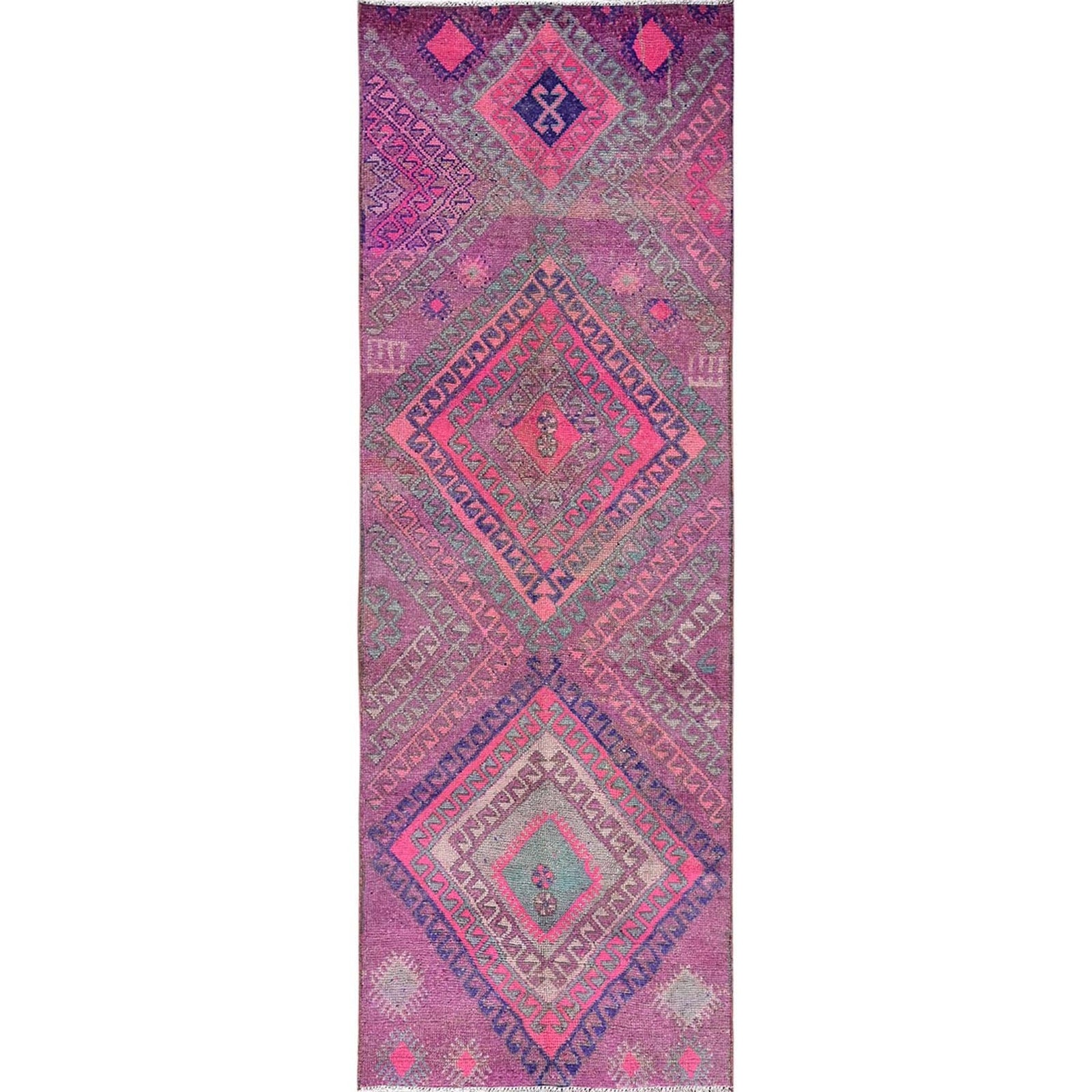 3'3"X9'7" Pink Overdyed Vintage Zoroastrian Hand Knotted Wool Runner