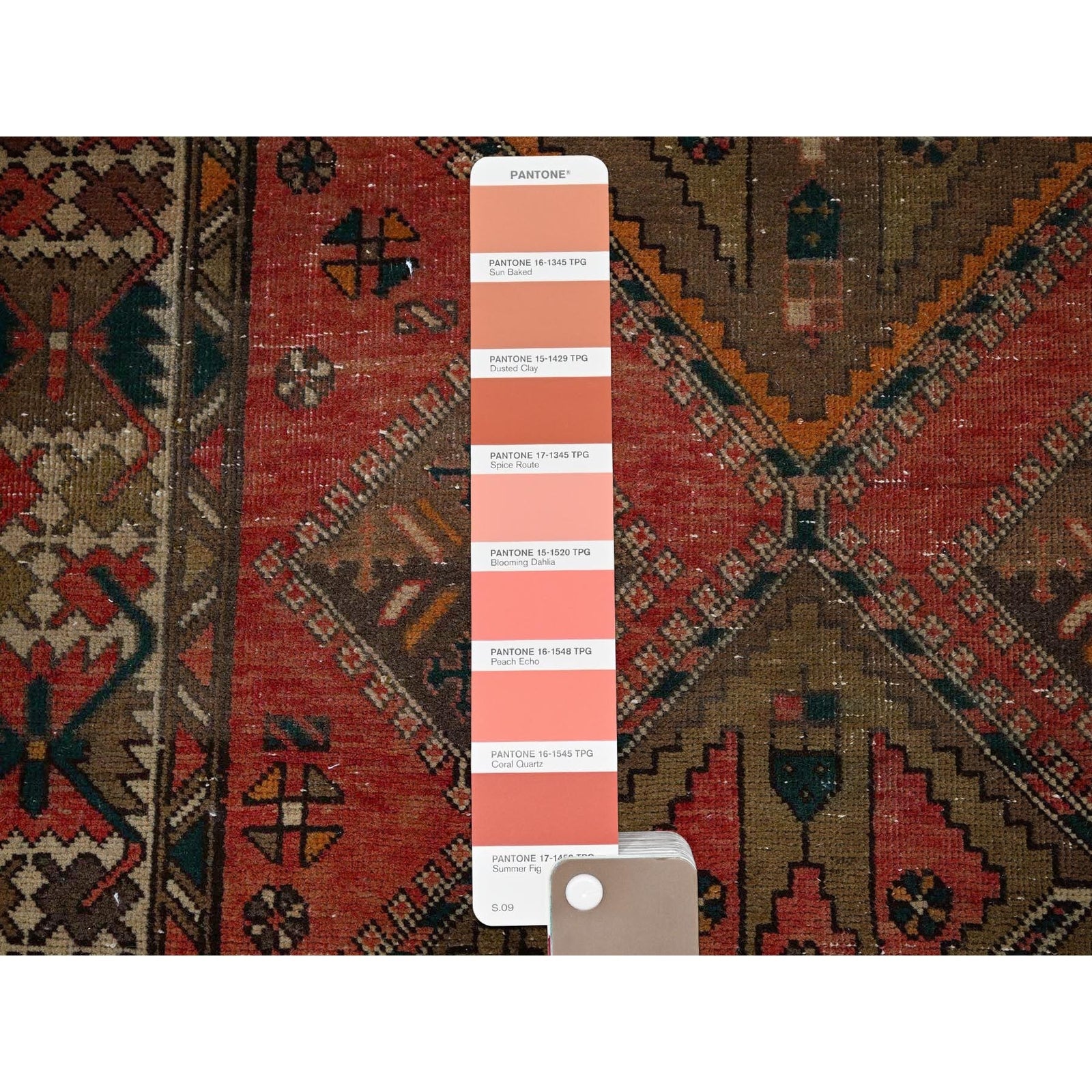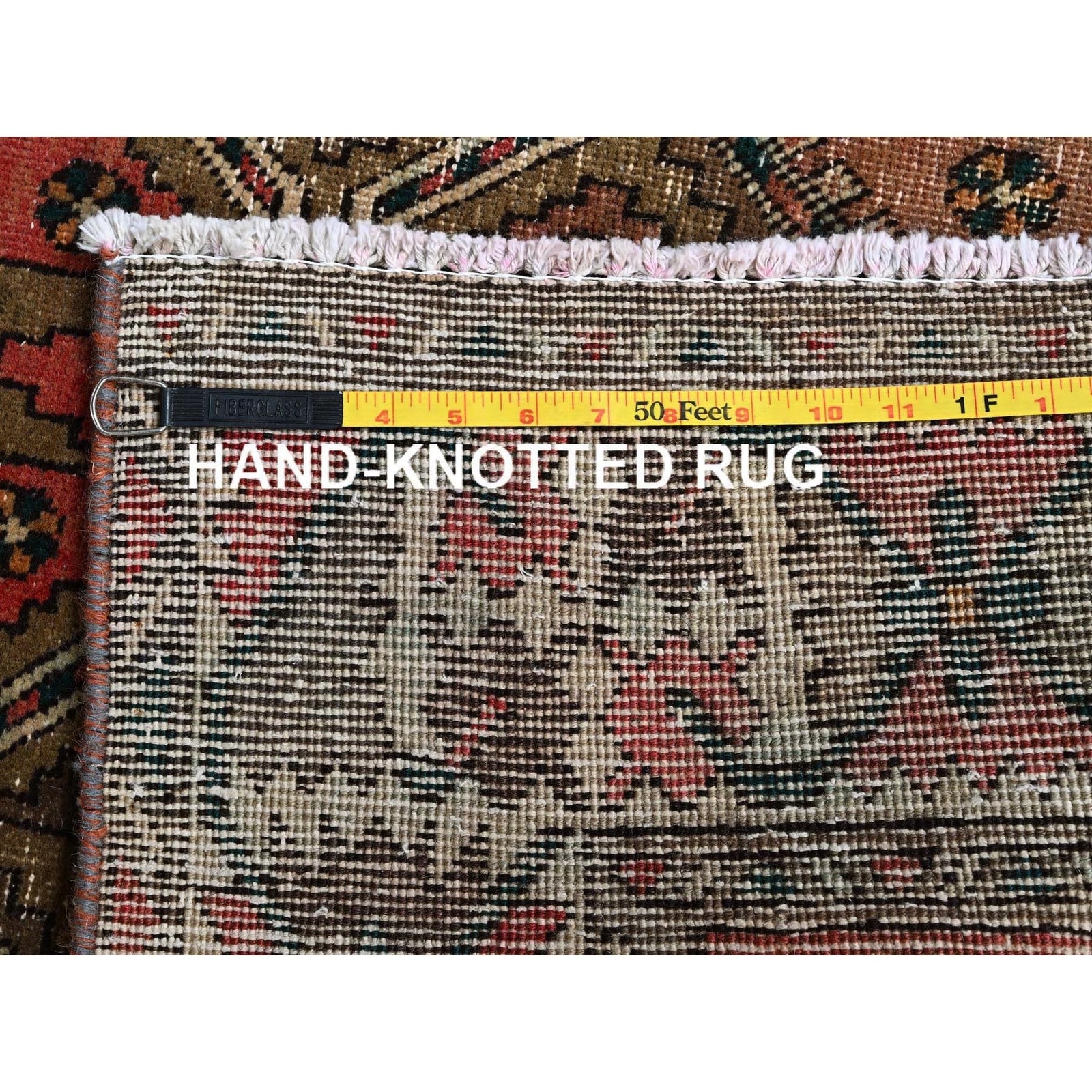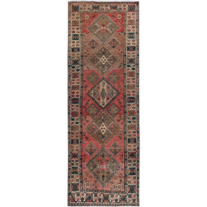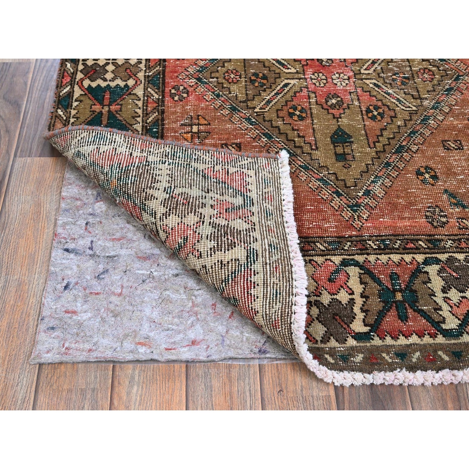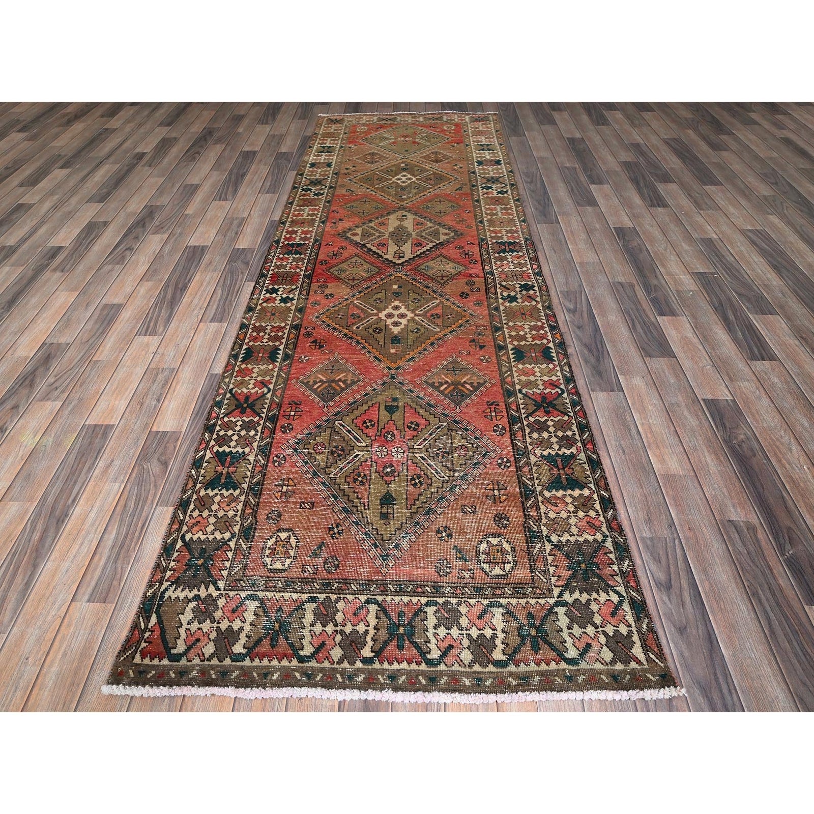 3'5"X10'3" Blush Red Vintage Zoroastrian Hand Knotted Pure Wool Runner Rug