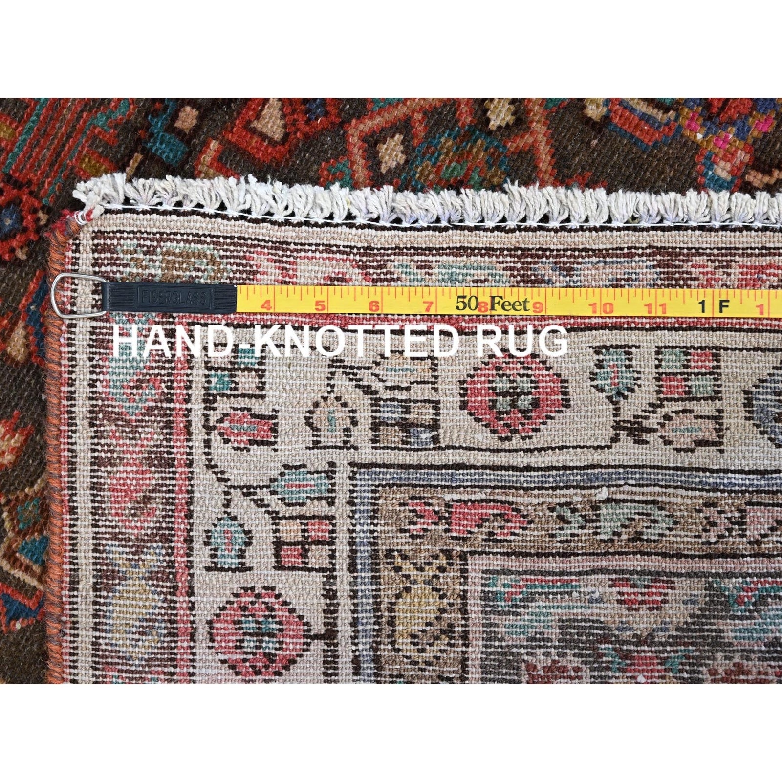 3'5"X10'4" Brown Semi Antique Hand Knotted Hamadan Wide Long Runner Rug