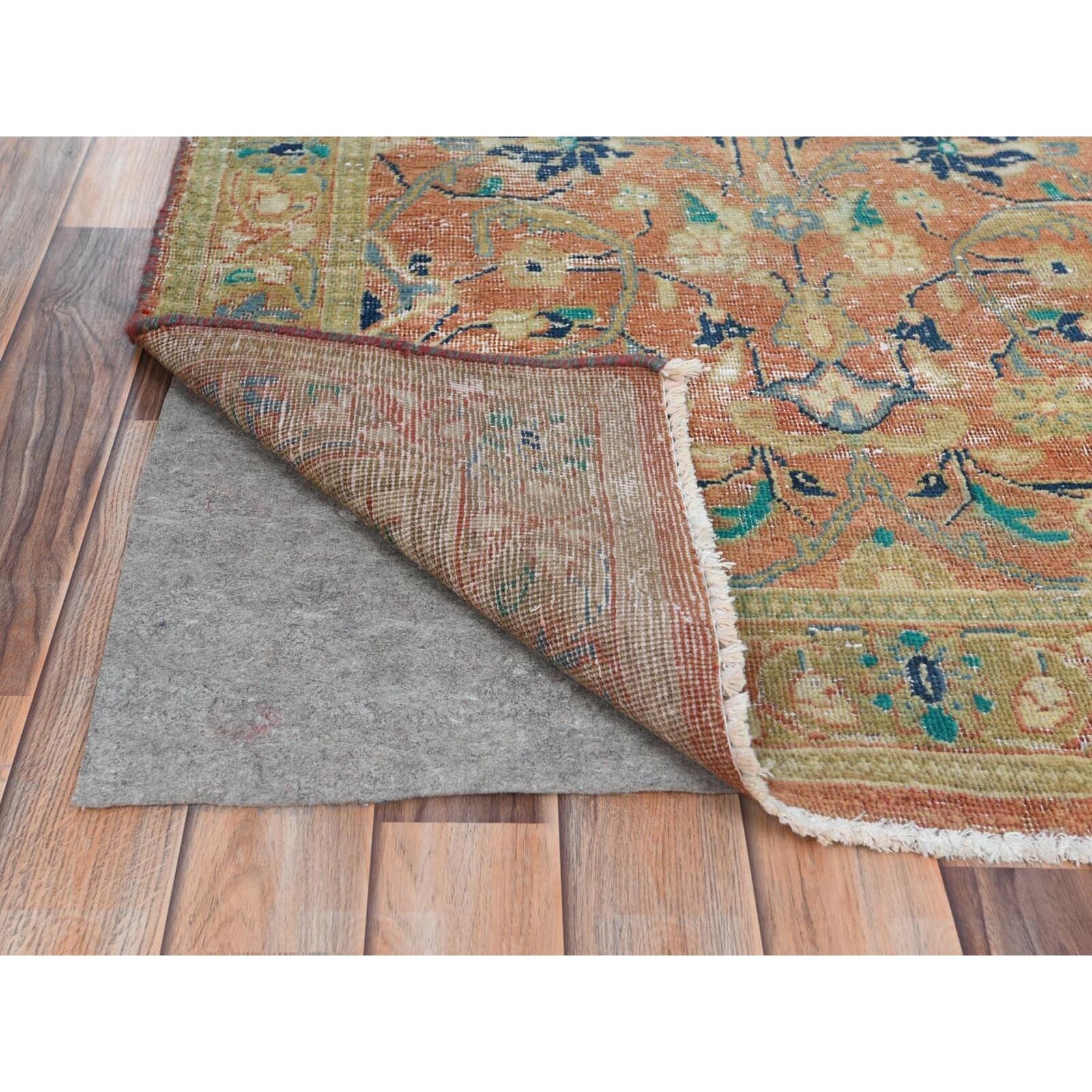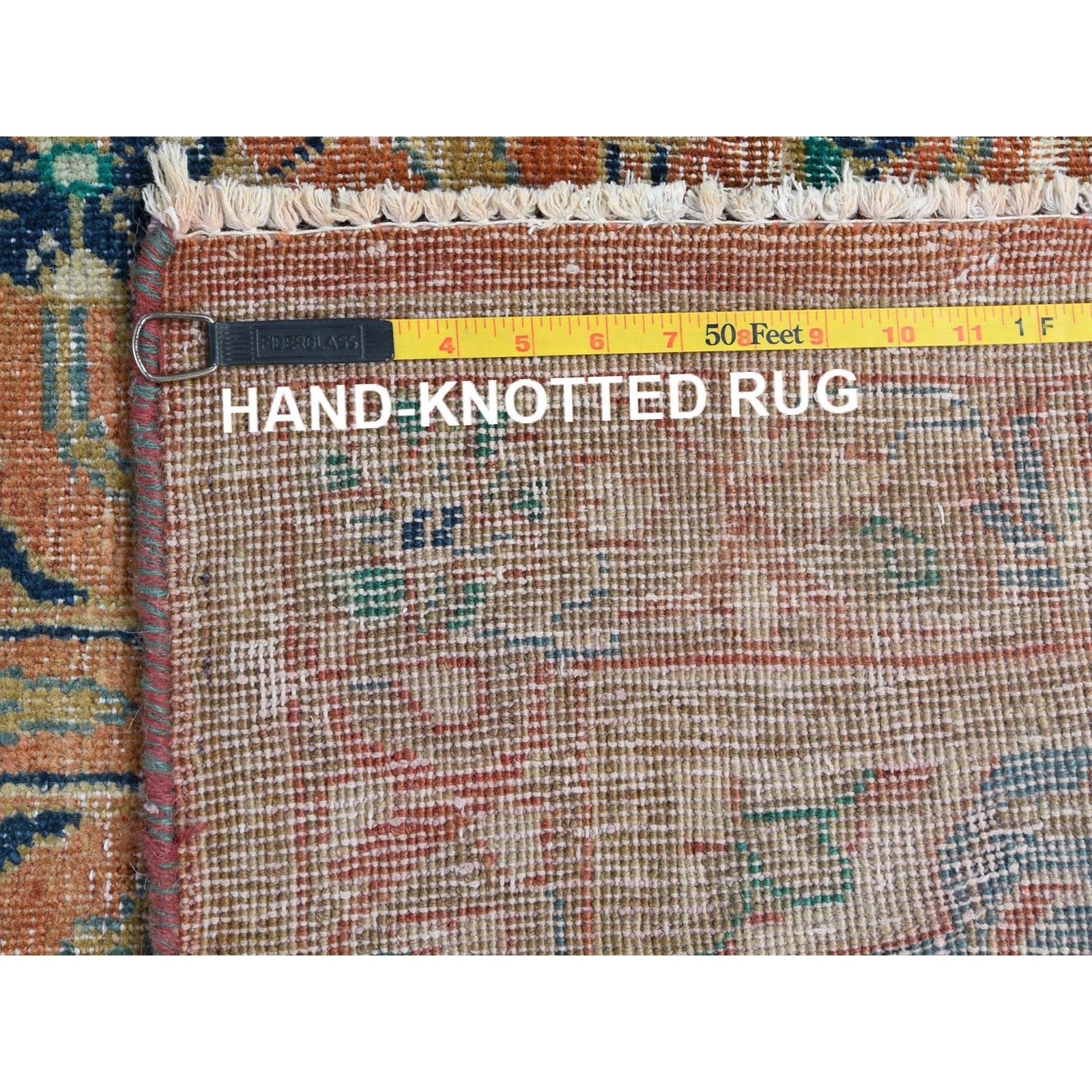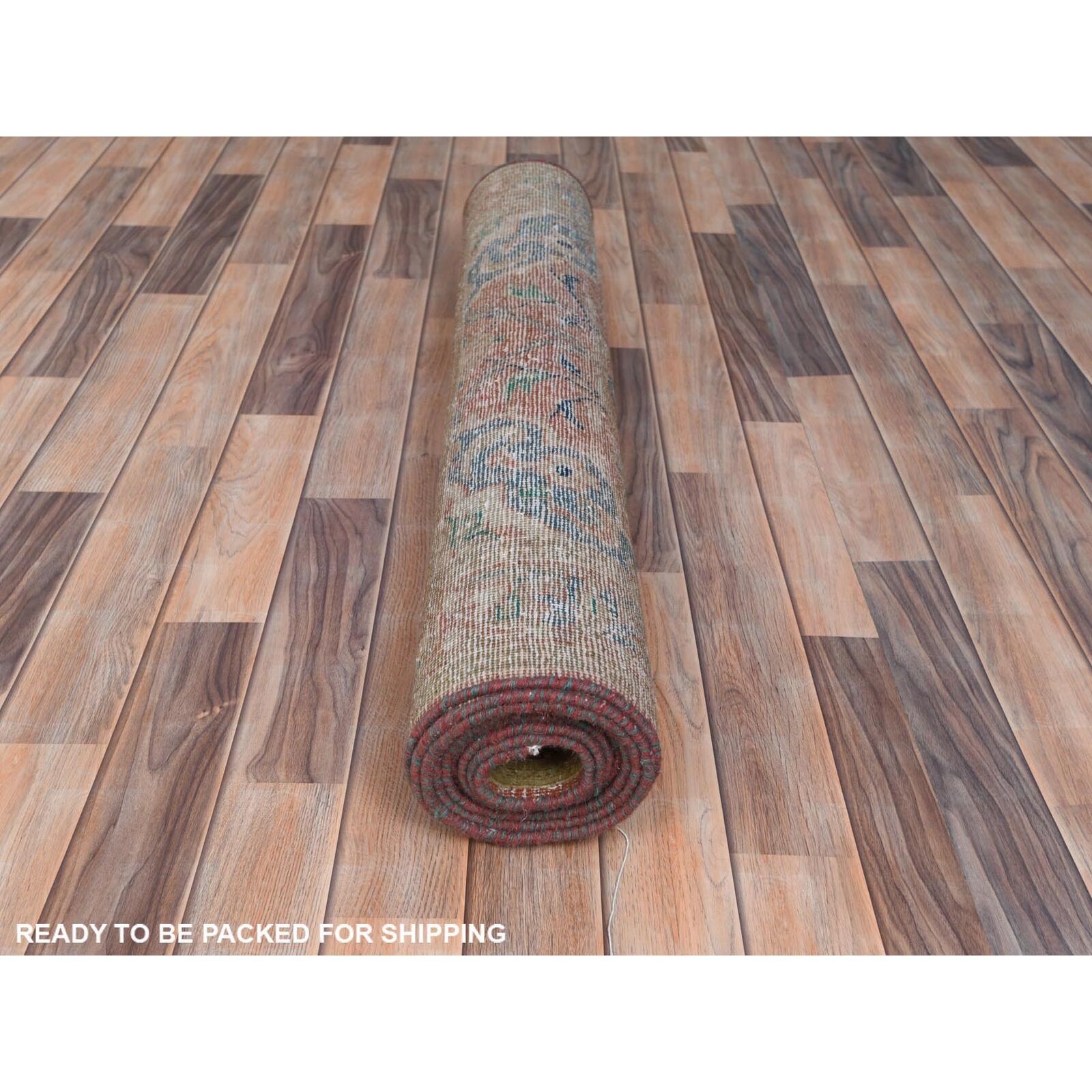 3'5"X10'5" Red Hand Knotted Vintage Farsian Kishoon Worn Wool Runner Rug