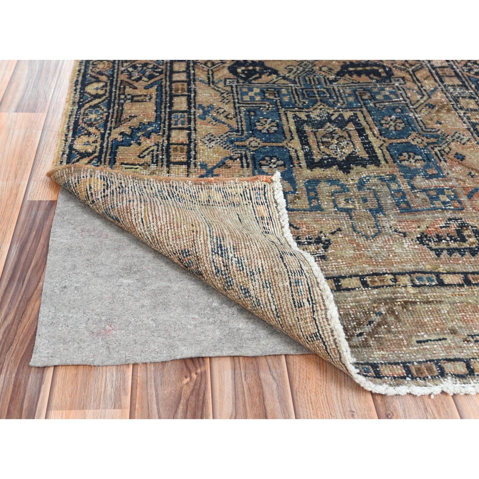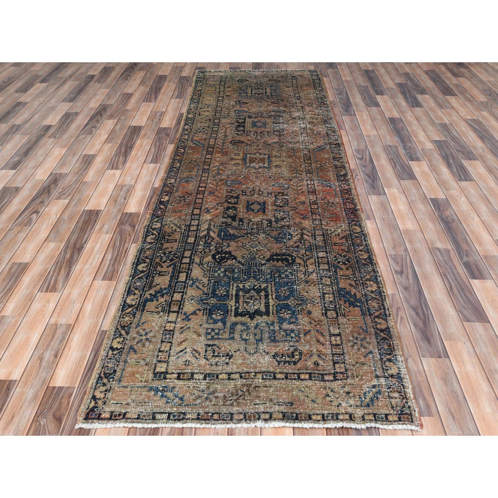 3'5"X10'6" Orange Vintage Farsian Worn Wool Hand Knotted Wide Runner Rug