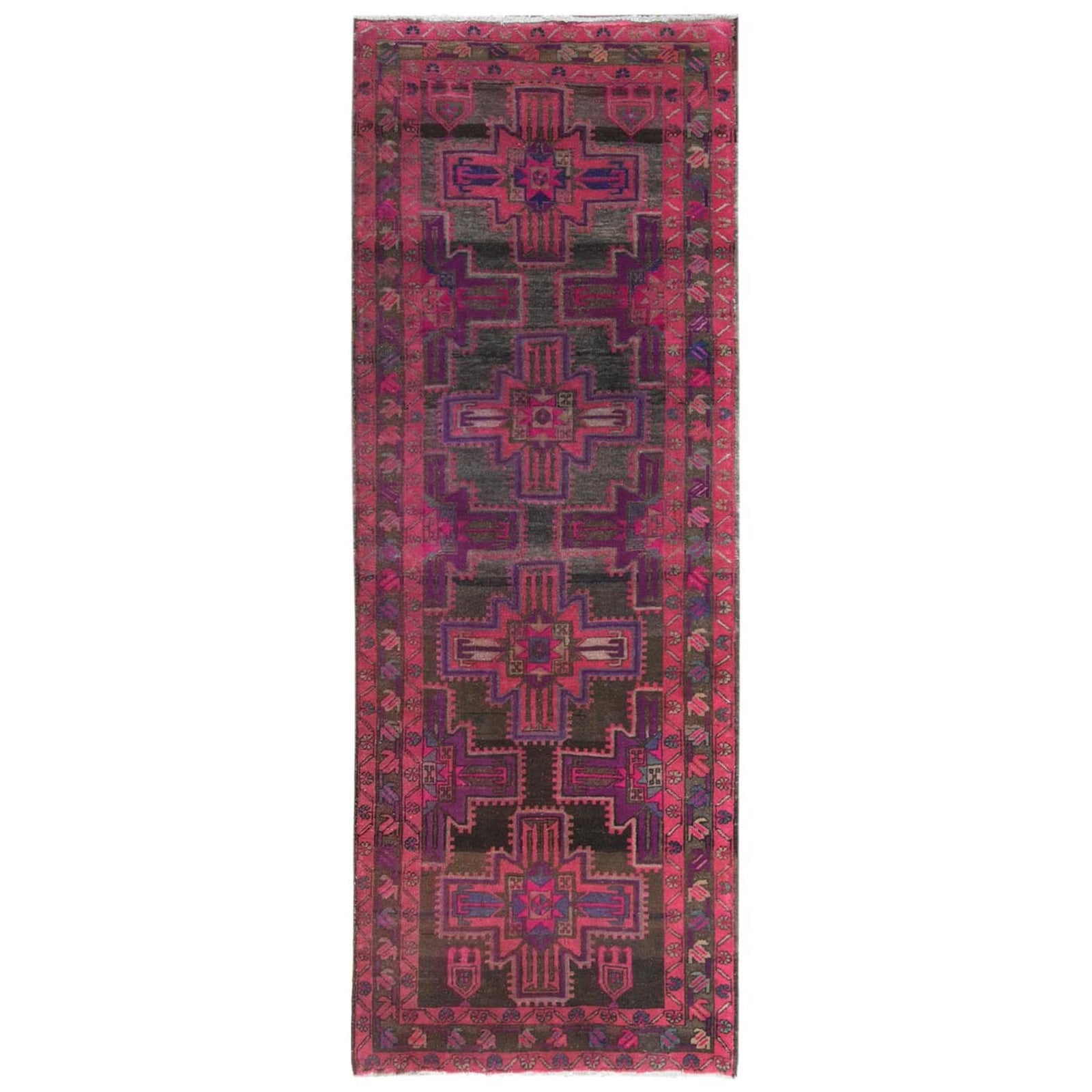 3'5"X9'5" Pink Hand Knotted Vintage Farsian Worn Wool Wide Runner Rug