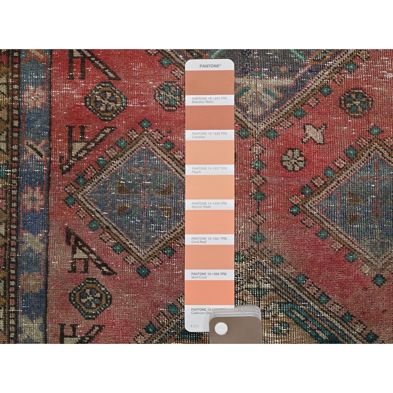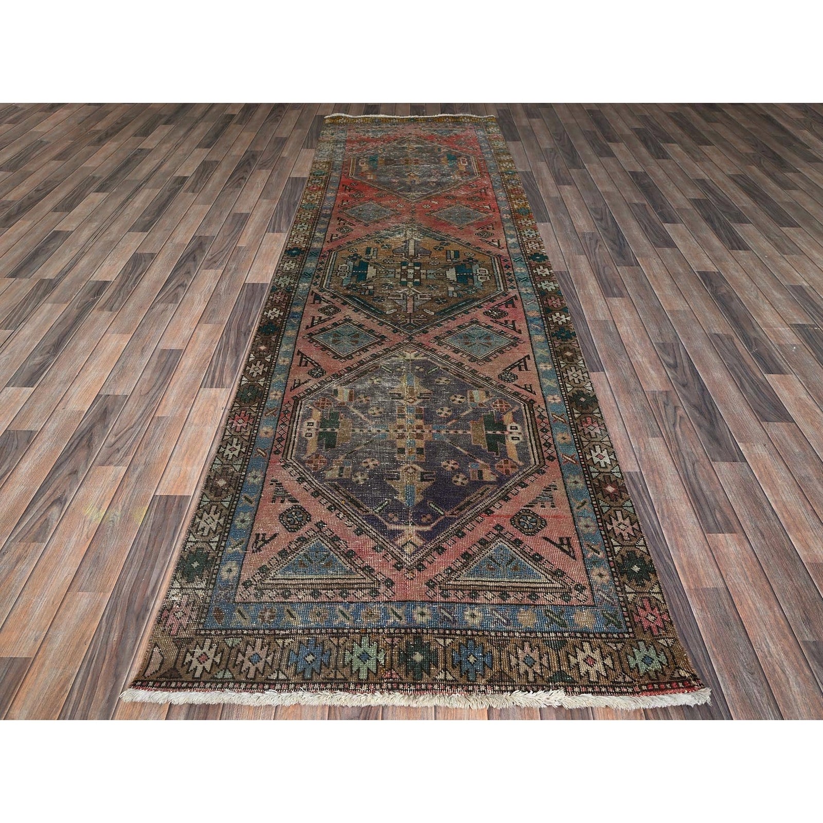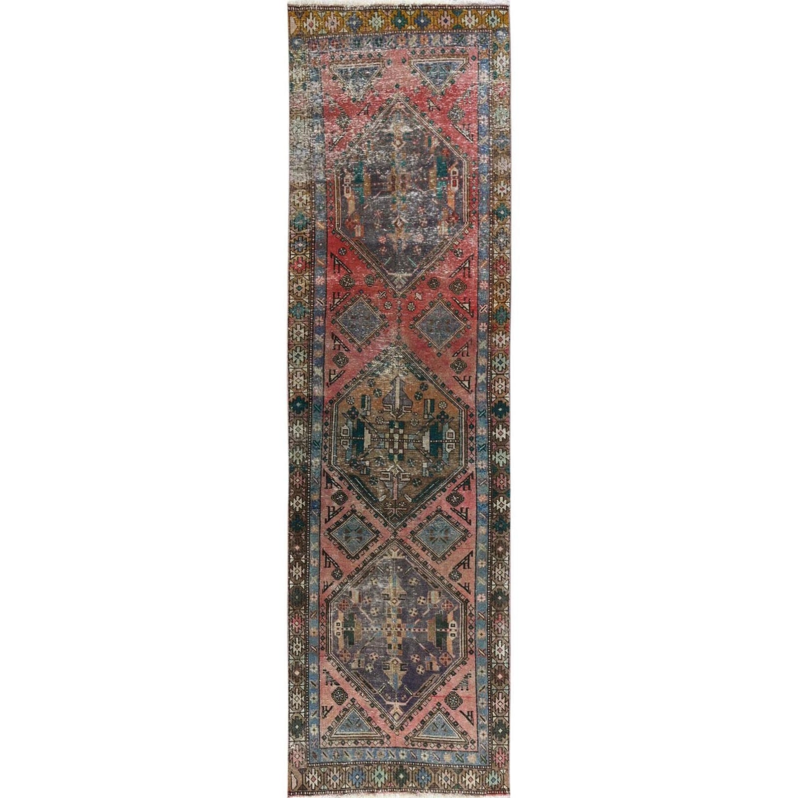 3'6"X11' Red Vintage Northwest Zoroastrian All Wool Hand Knotted Runner Rug