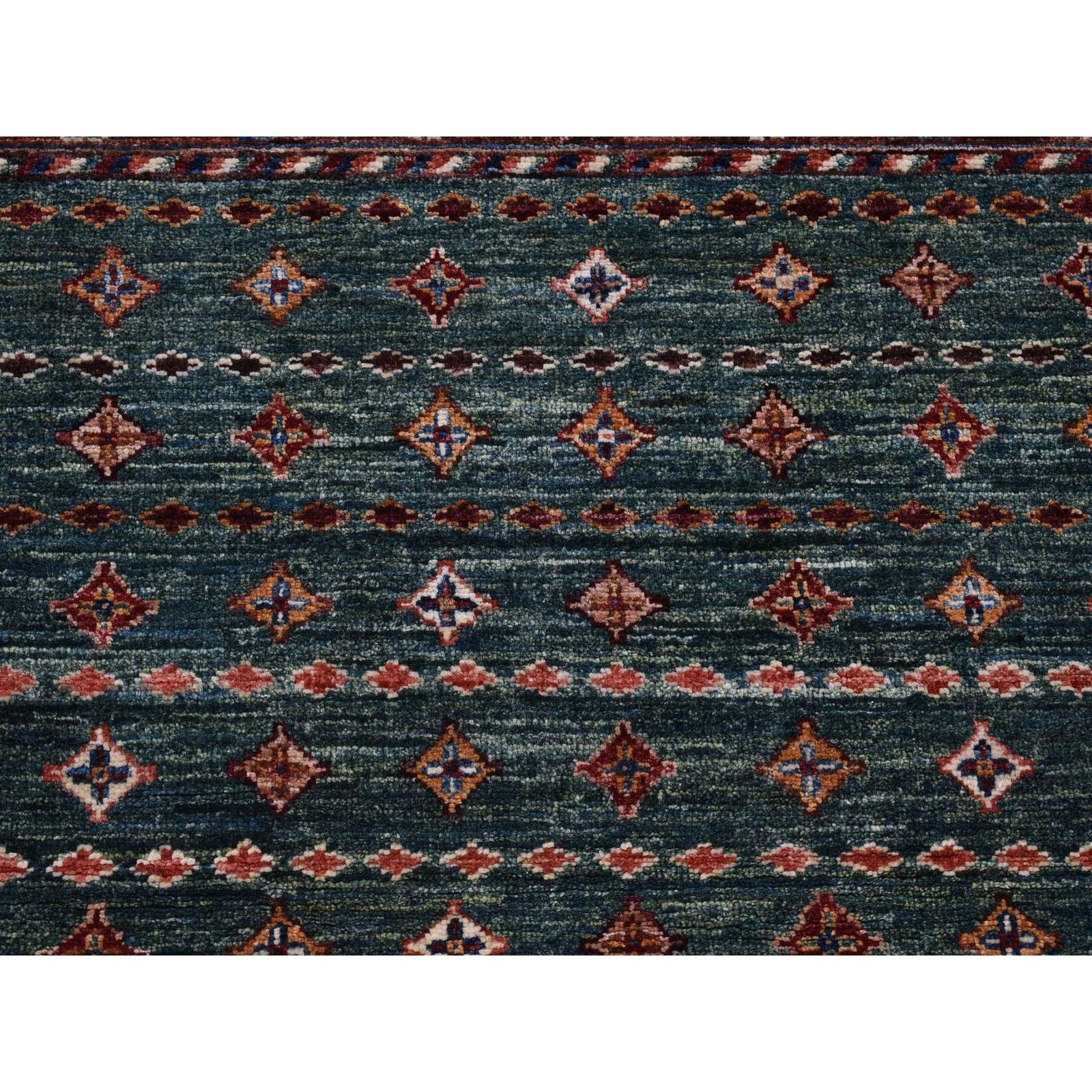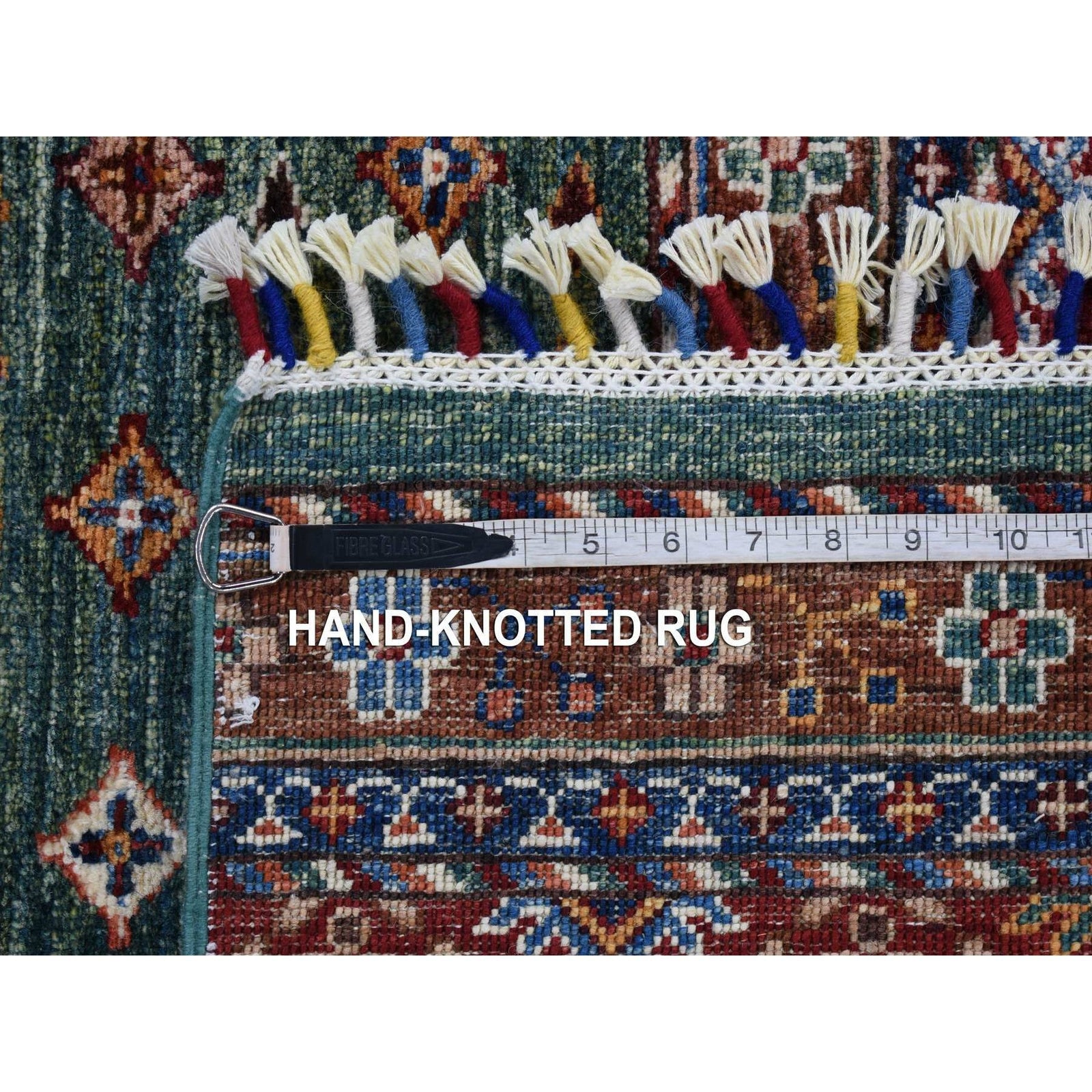 3'6"X5'3"Green Hand Knotted Super Kazak With Khorjin Design Soft Wool Rug