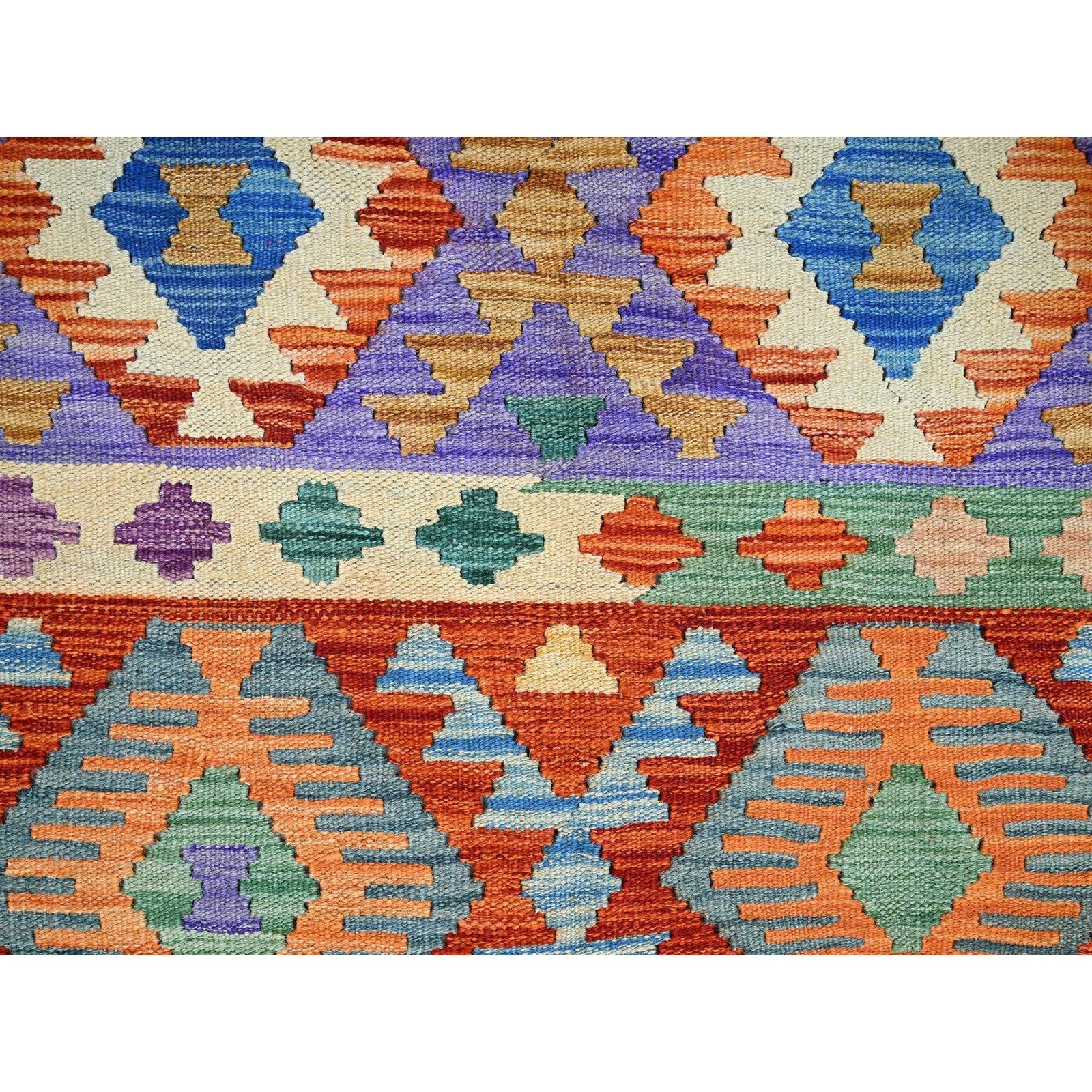 3'7"X5' Orange Flat Weave Afghan Kilim Pure Wool Hand Woven Reversible Rug