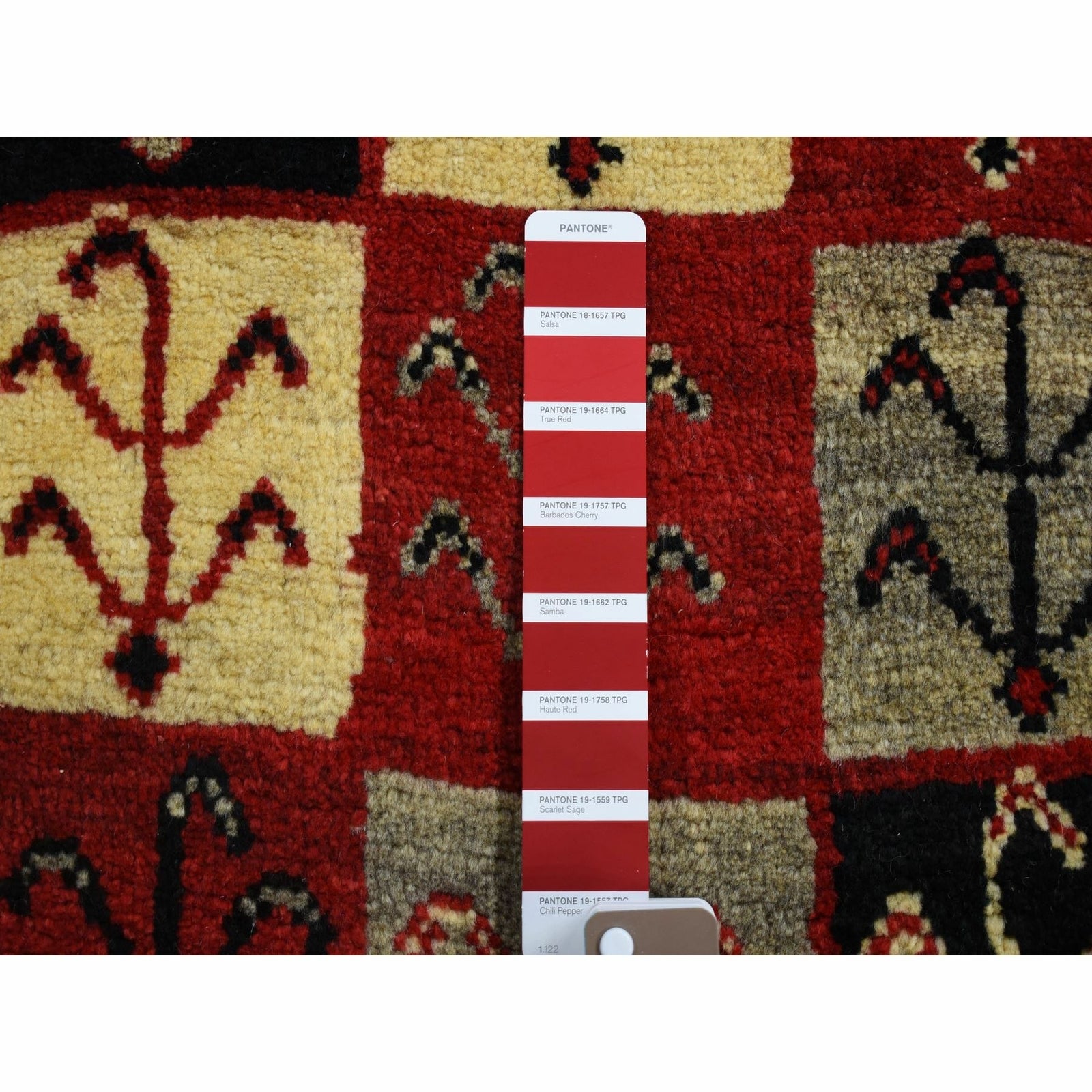 3'7"X5'7" Red New Farsian Gabbeh Checkers Design Hand Knotted Wool Rug