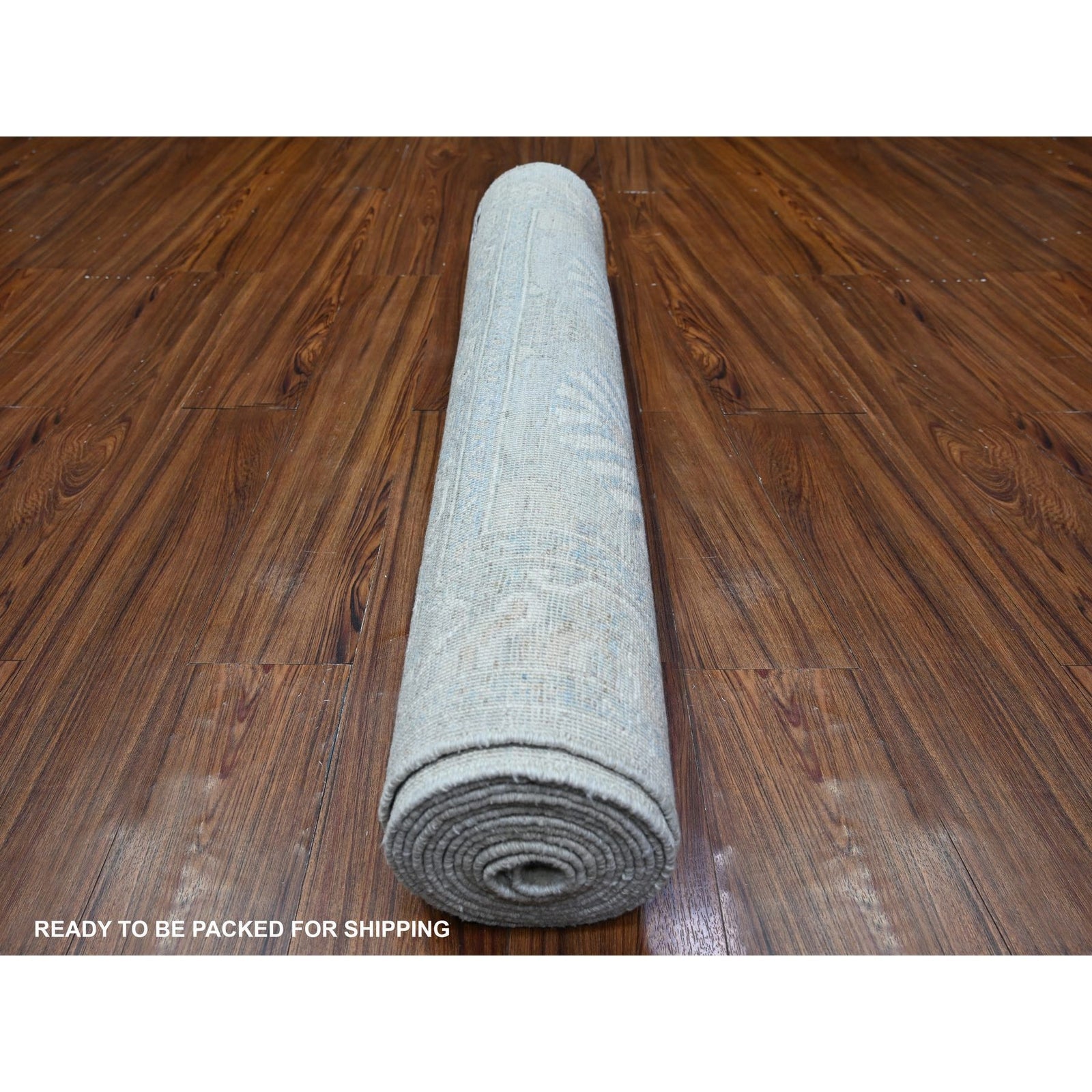 3'8"X15' Gray White Wash Peshawar Wool Hand Knotted Xl Runner Rug