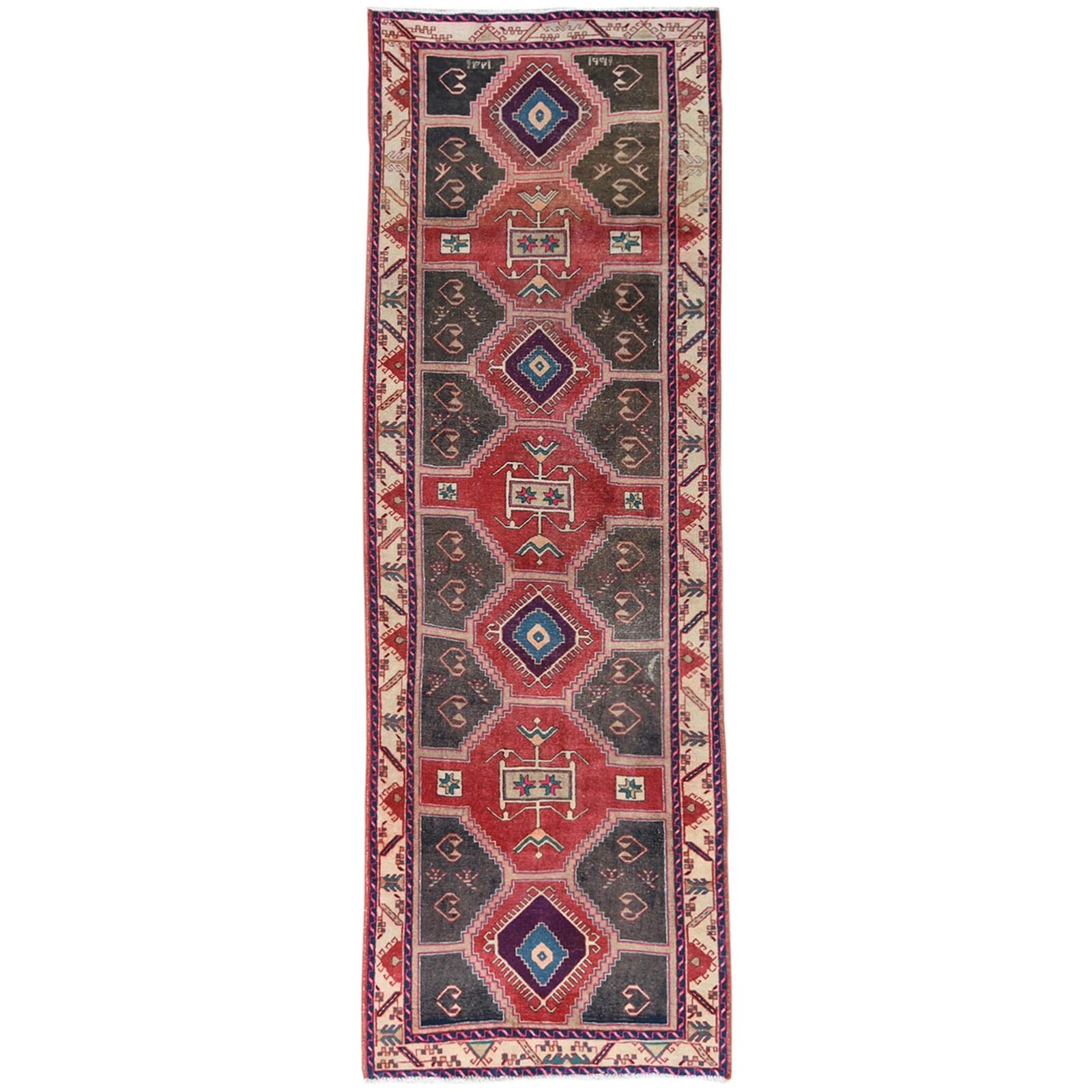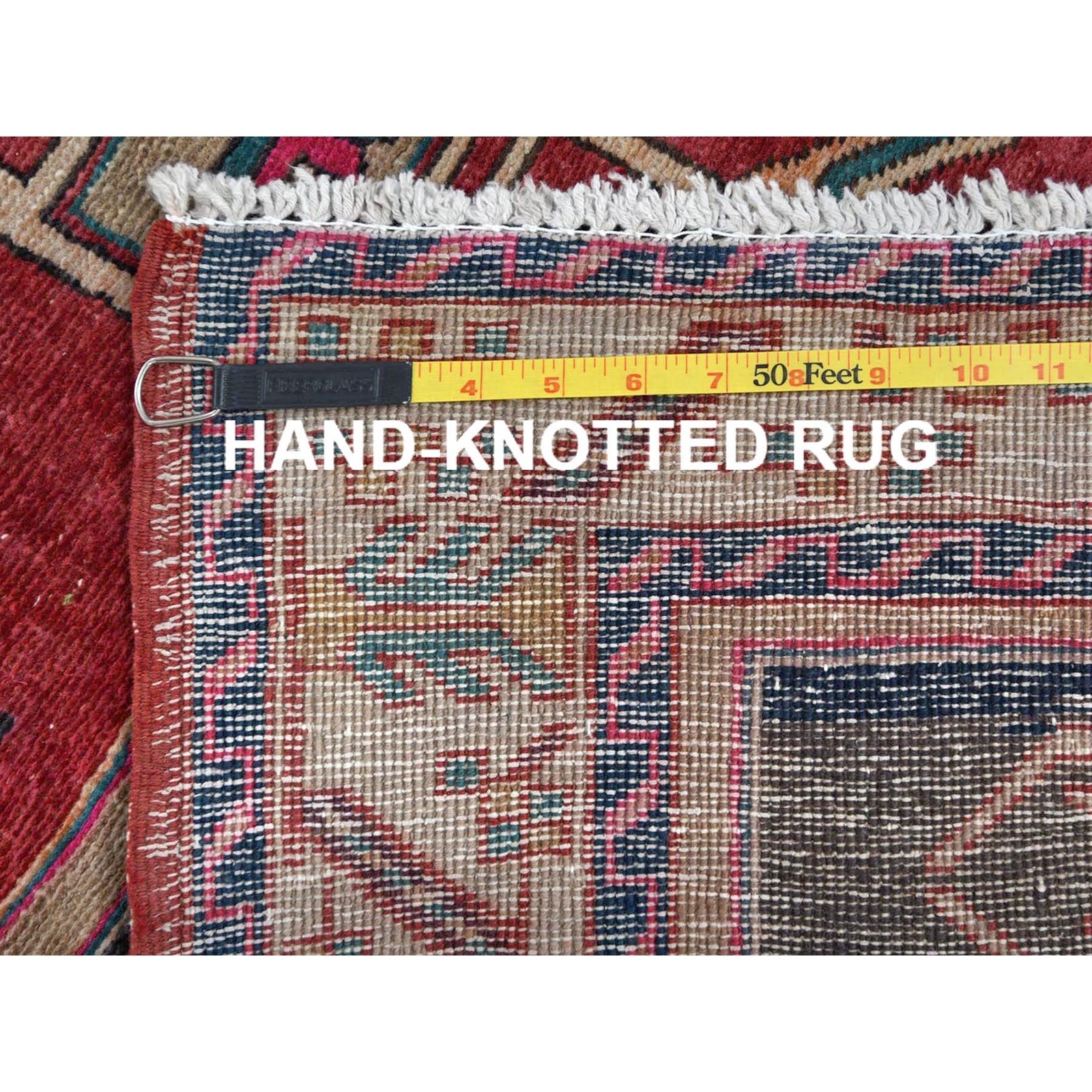 3'9"X10'9" Red Farsian Heris With Geometric Design Hand Knotted Wool Rug