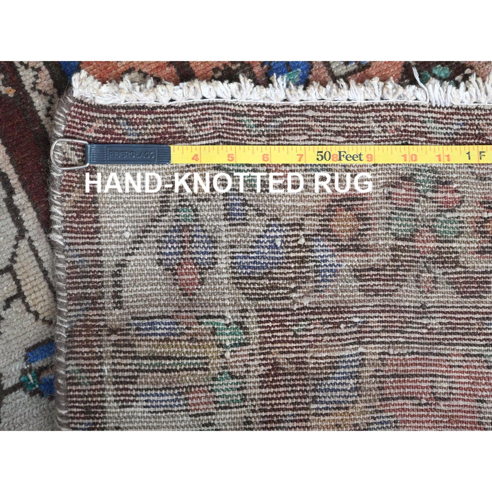 3'9"X9'9" Brown Vintage Farsian Worn Wool Hand Knotted Wide Runner Rug