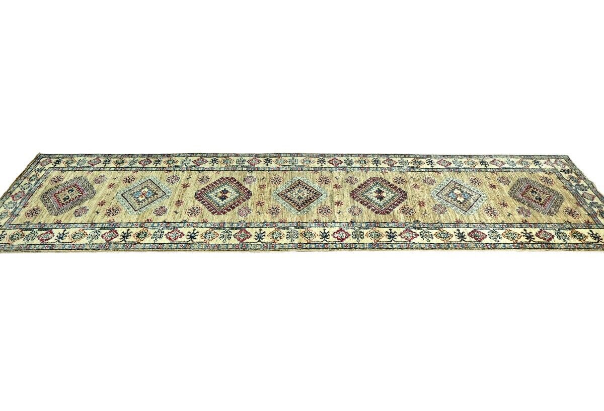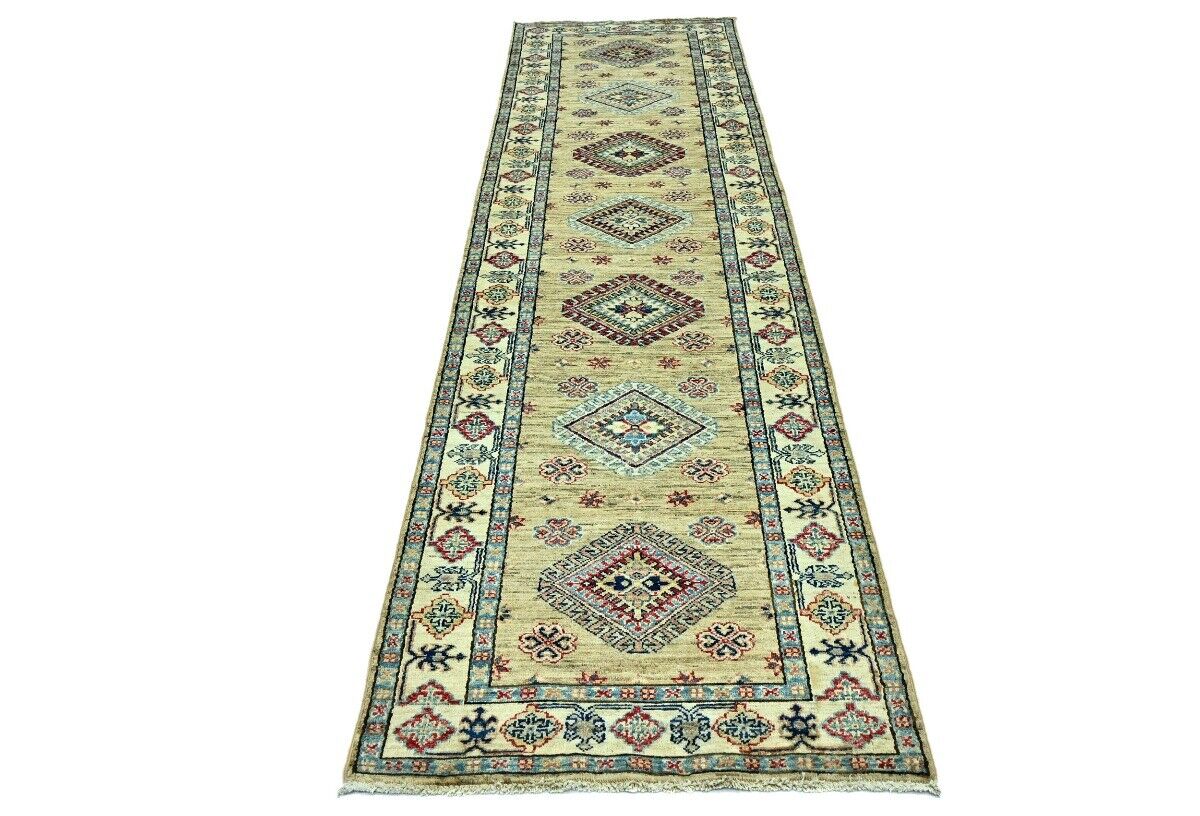 3X10 ft Beige Tribal Geometric Kazak Runner Wool
