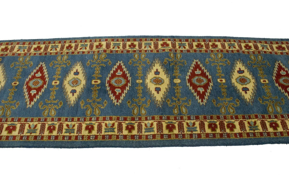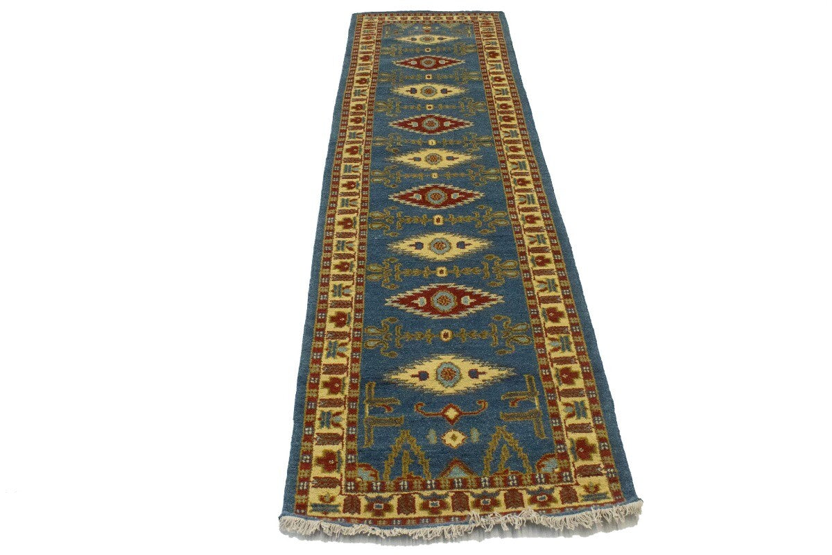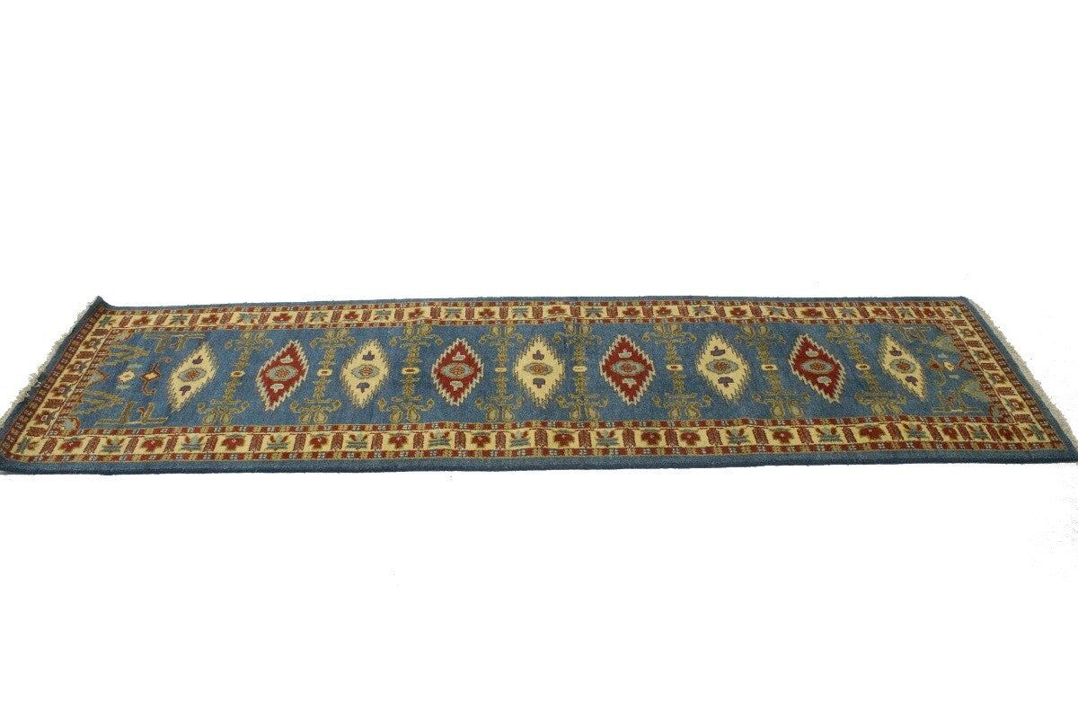 3X10 Ft Handmade Kazak Runner Rug Blue Geometric
