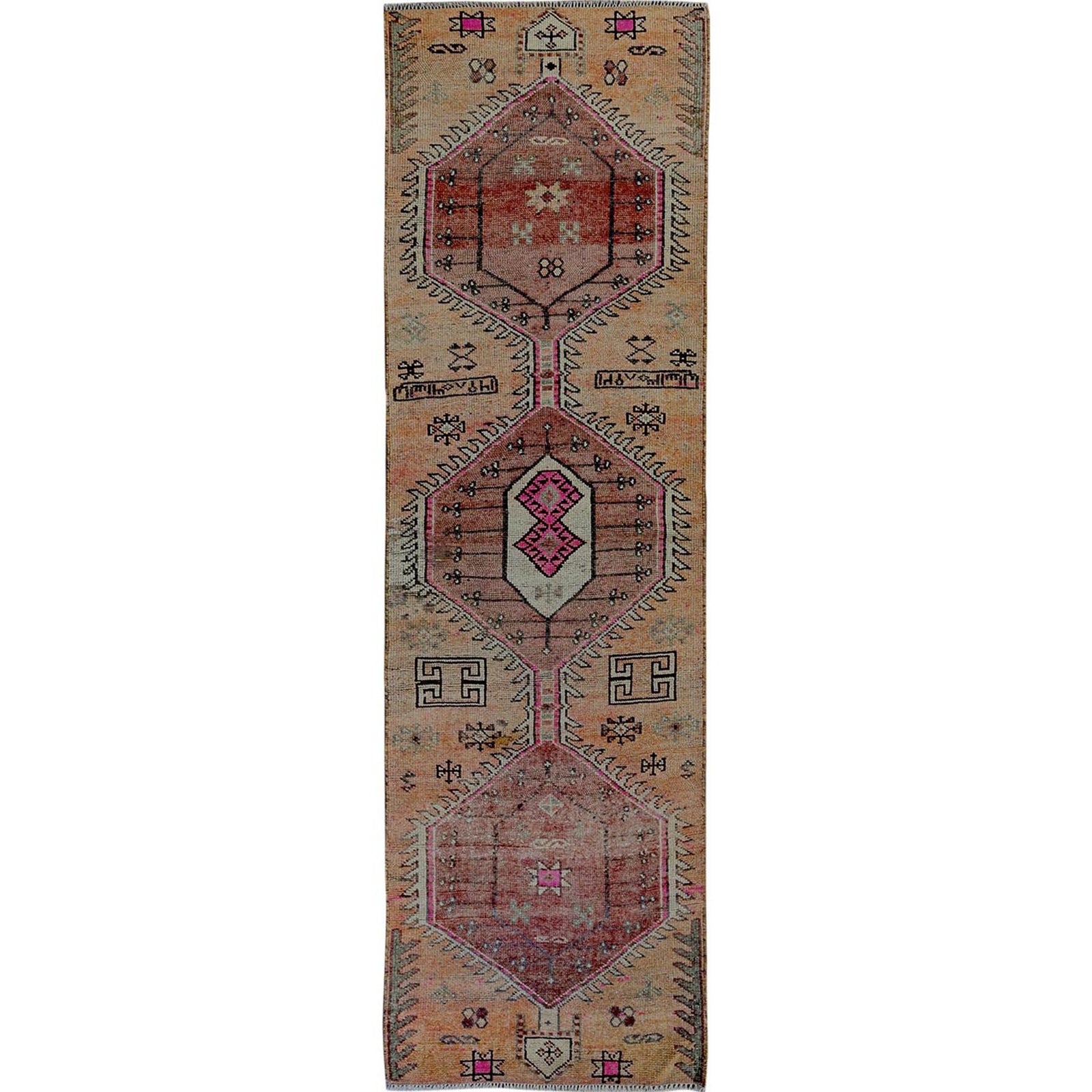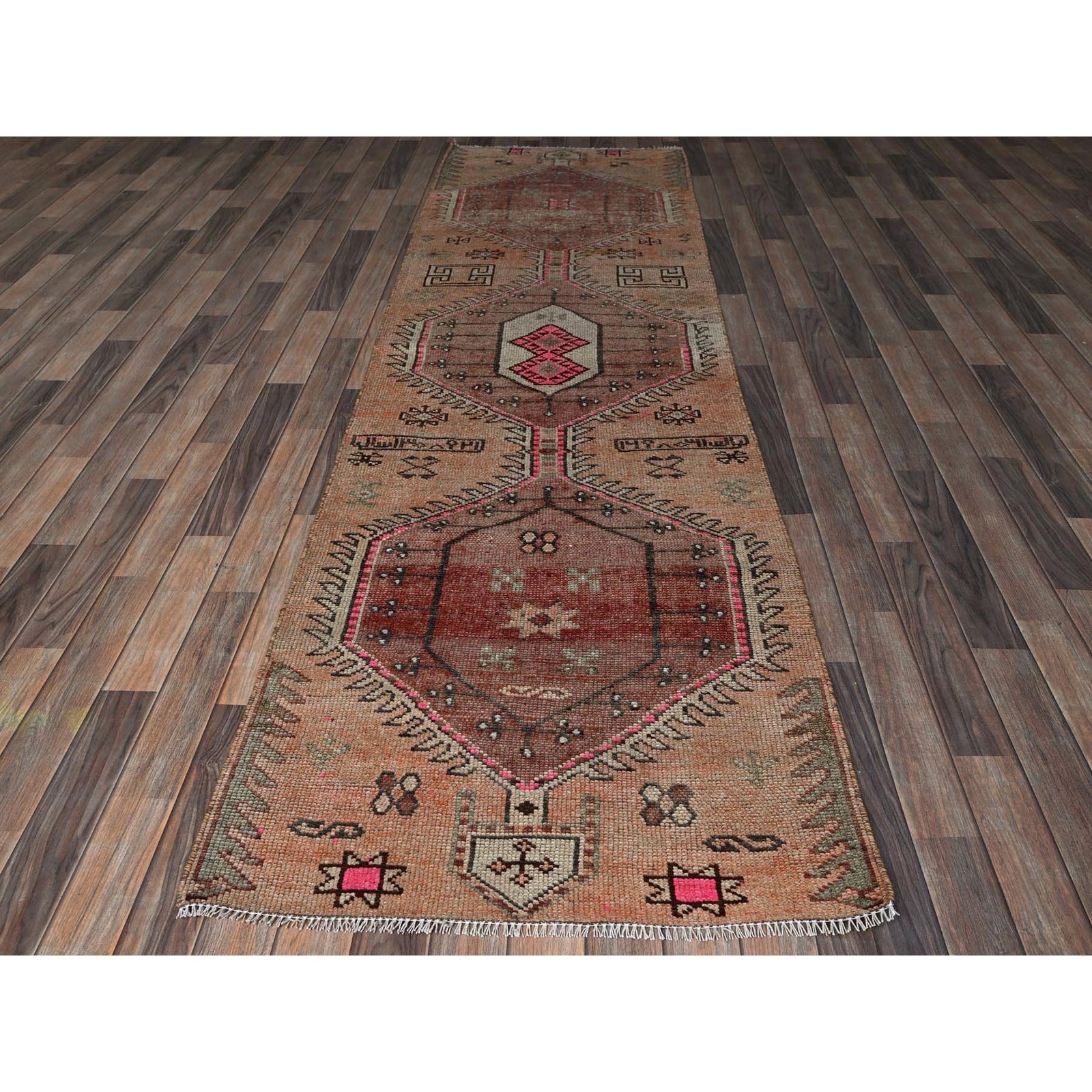 3'X10'5" Peach Vintage Zoroastrian Village Hand Knotted Wool Runner Rug