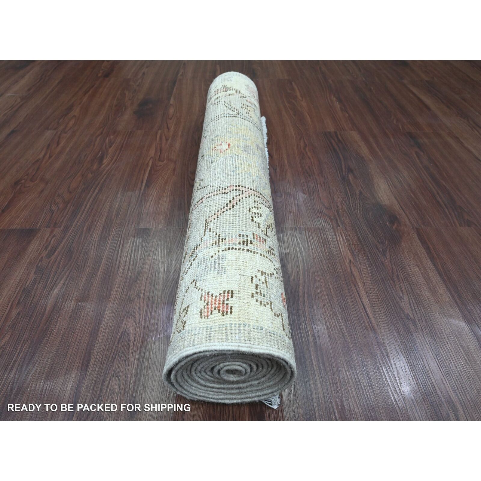 3'X10'6" Gray Afghan Angora Oushak Hand Knotted 100% Wool Runner Rug
