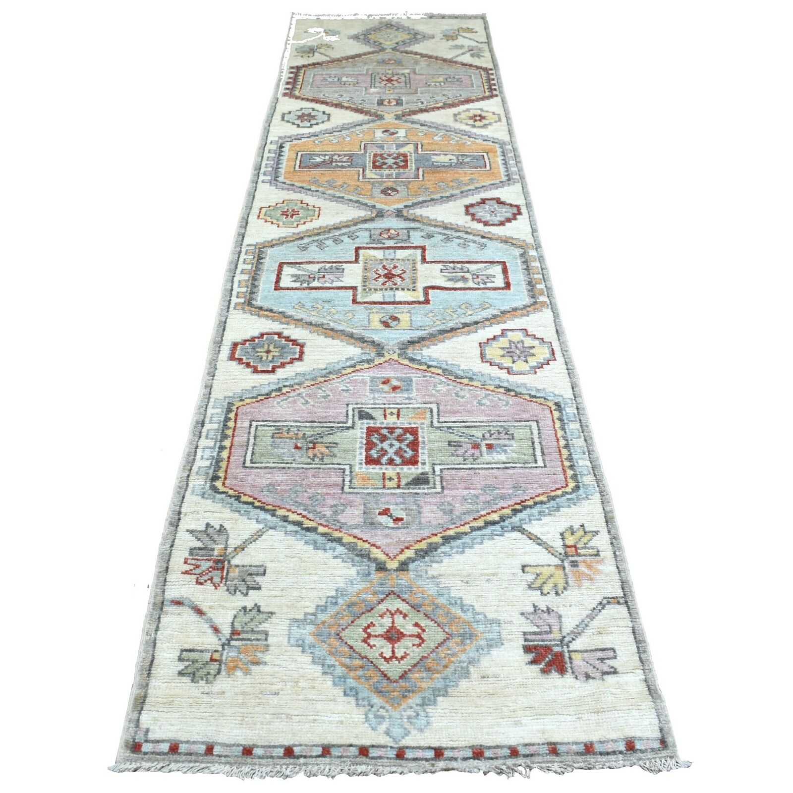3'X12' Hand Knotted Gray Anatolian Village Inspired Wool Wide Runner Rug