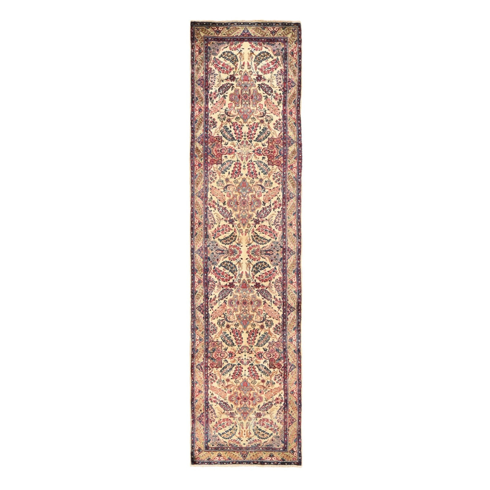3'X12' Ivory Antique Zoroastrian Karman Wool Runner Rug Hand Knotted
