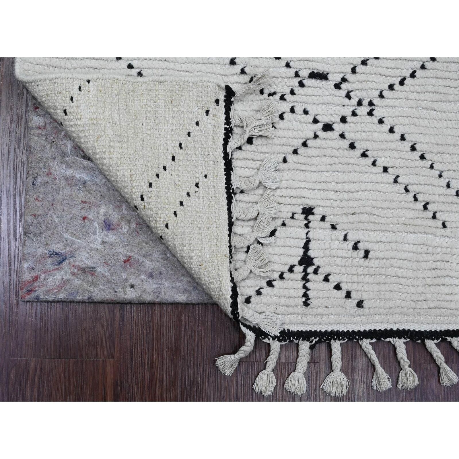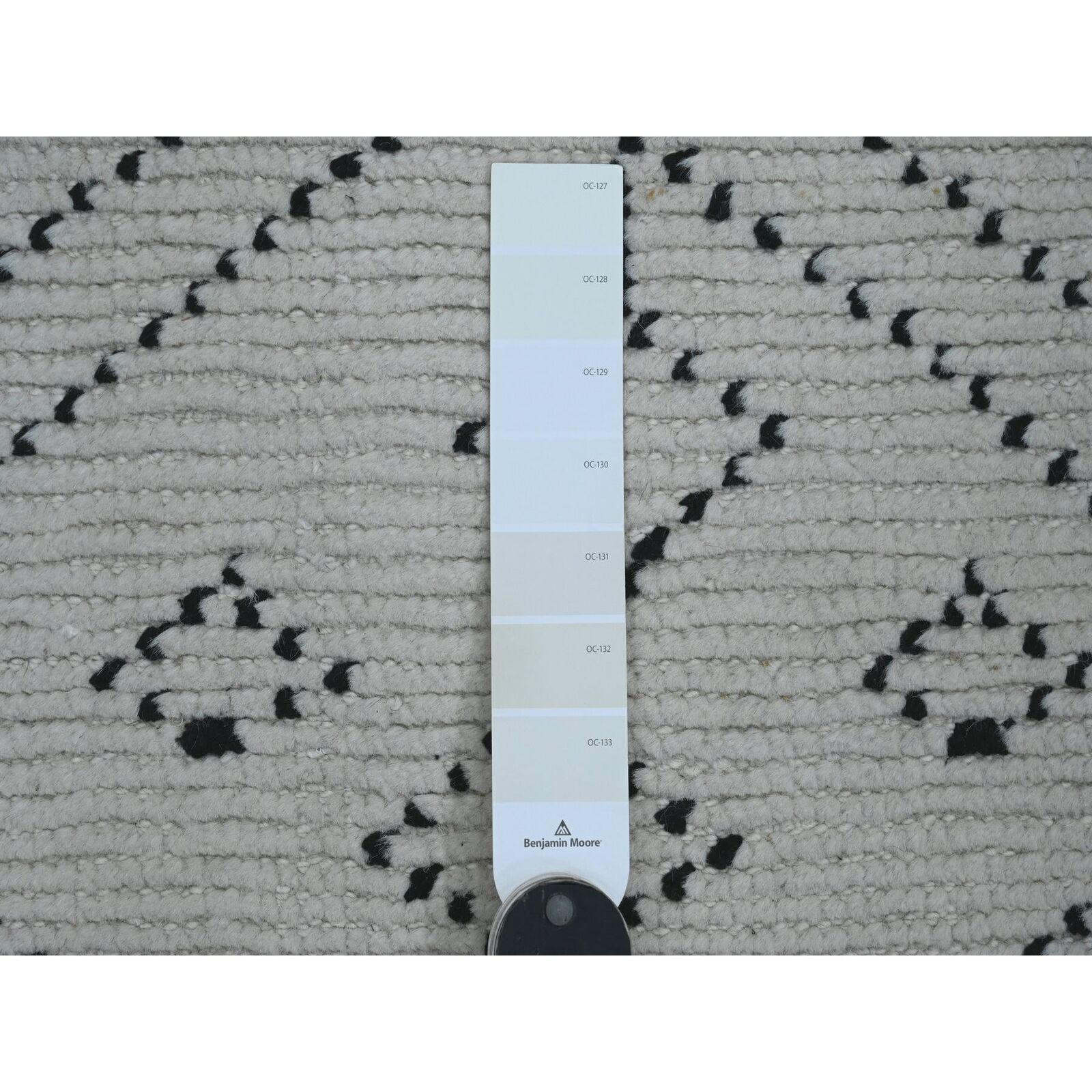 3'X12'8" White Geometric Moroccan Weave Soft Wool Hand Knotted Runner Rug