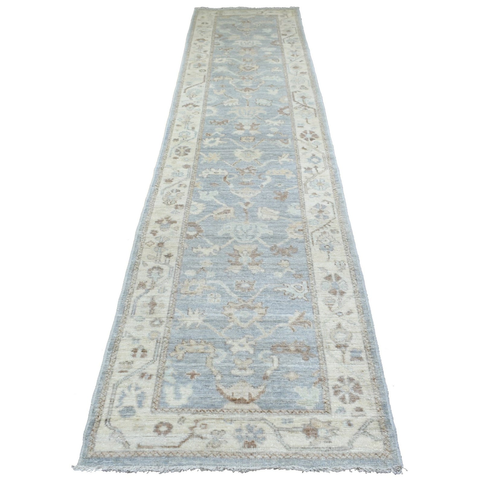 3'X13'7" Gray Afghan Angora Ushak Pure Wool Hand Knotted Runner Rug