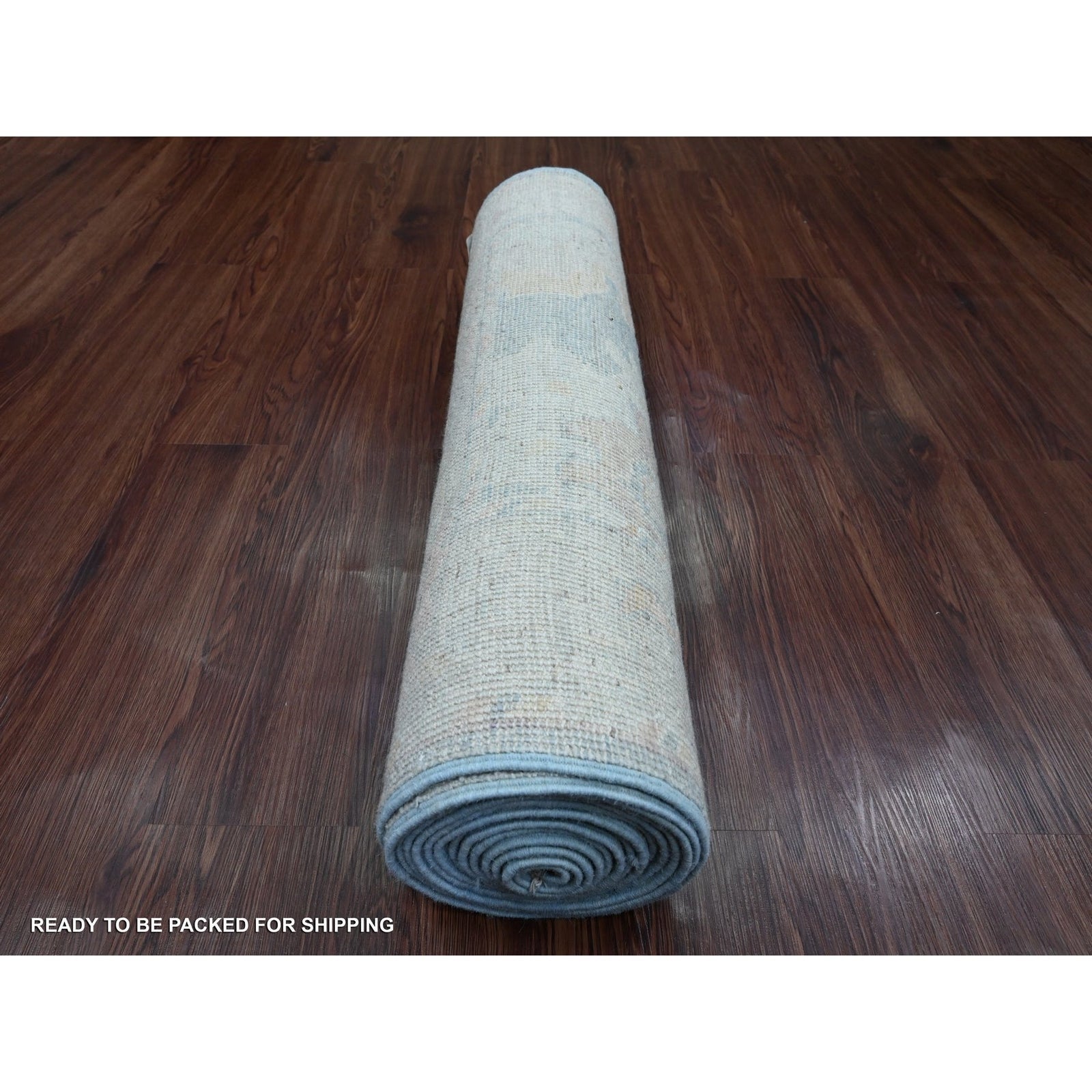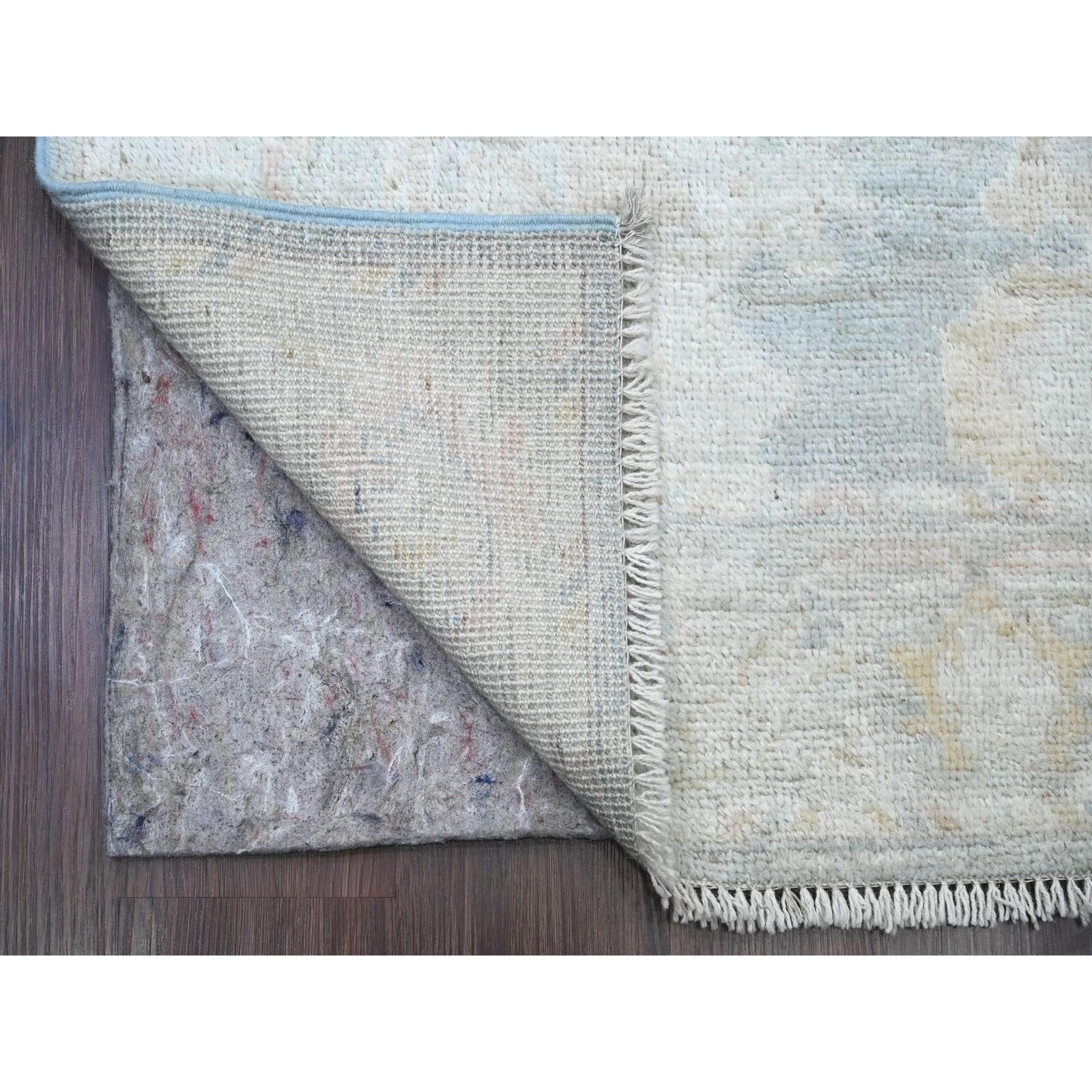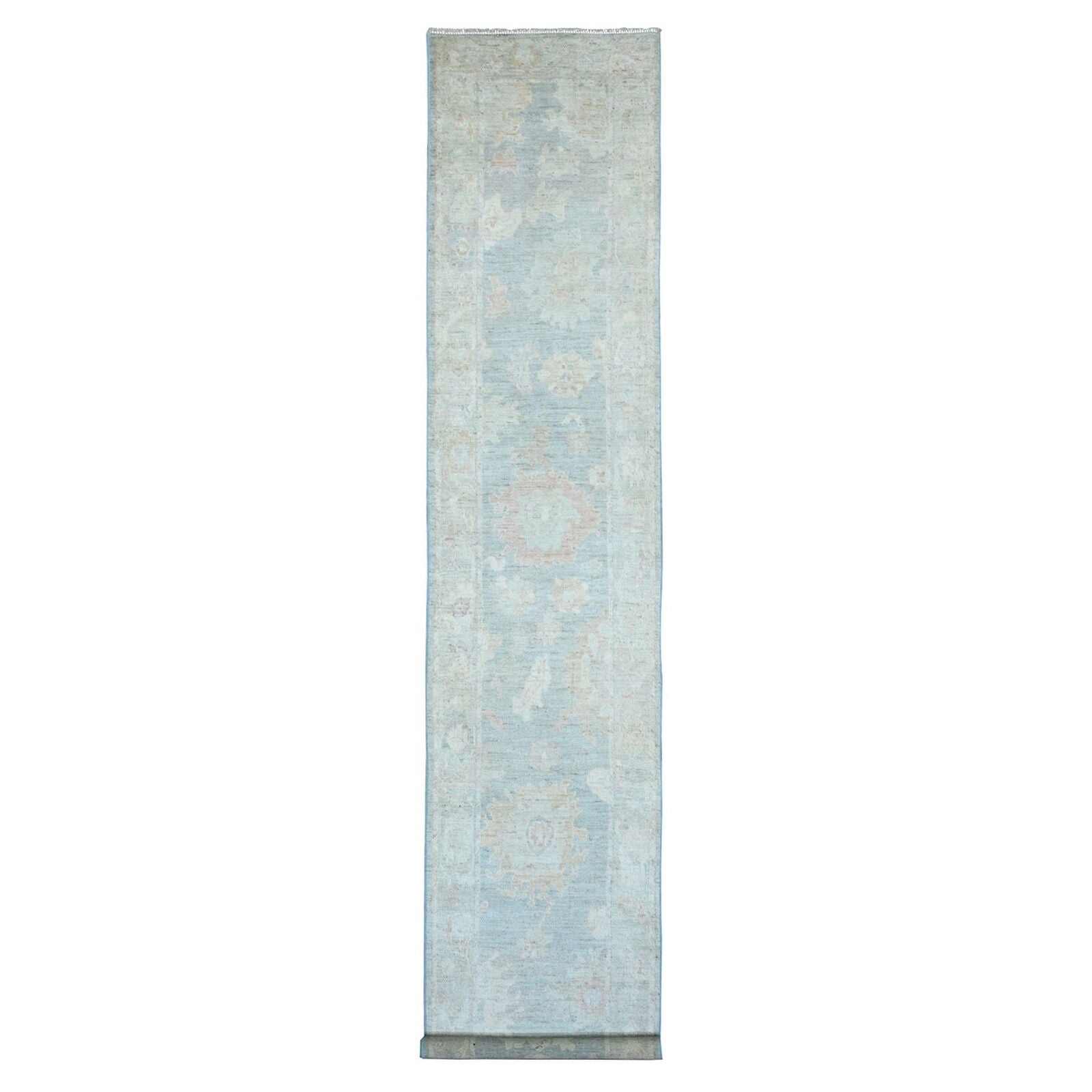 3'X15'6" Blue Angora Oushak Leaf Design Hand Knotted Pure Wool Runner Rug