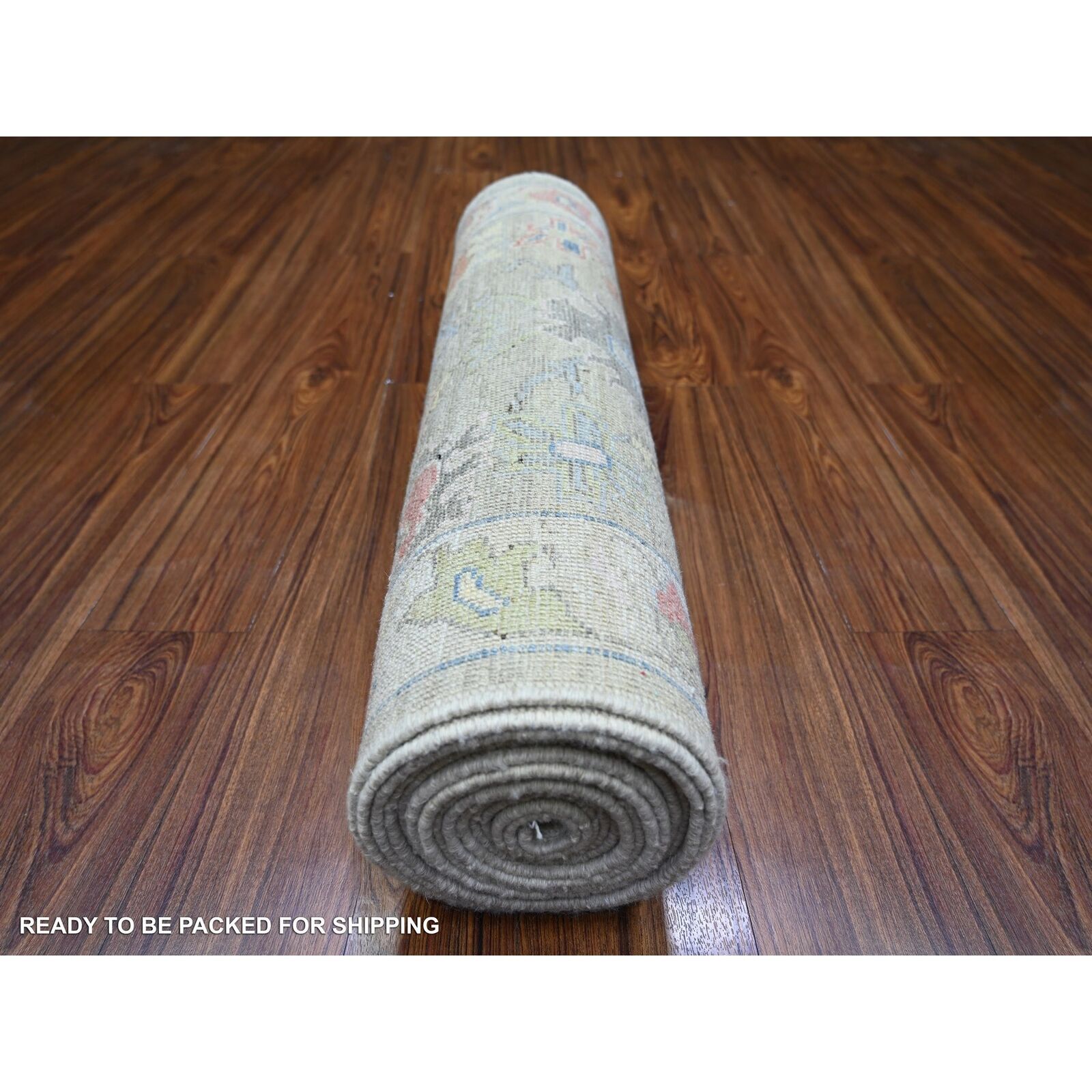 3'X17'7" Goose Gray Hand Knotted Afghan Angora Oushak Wool Runner Rug