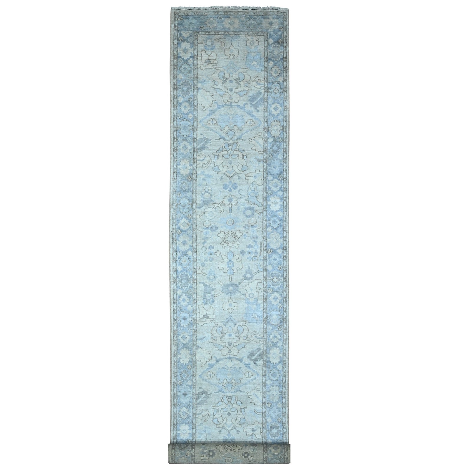 3'X19'5" Blue Afghan Wool Weft Angora Oushak Xl Runner Oriental Rug
