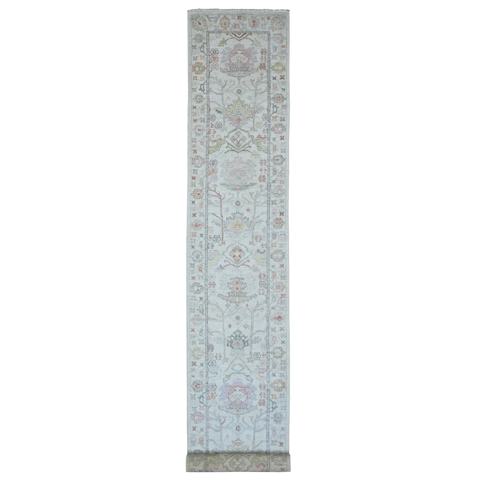 3'X22'5" White Angora Oushak Leaf Design All Wool Hand Knotted Runner Rug