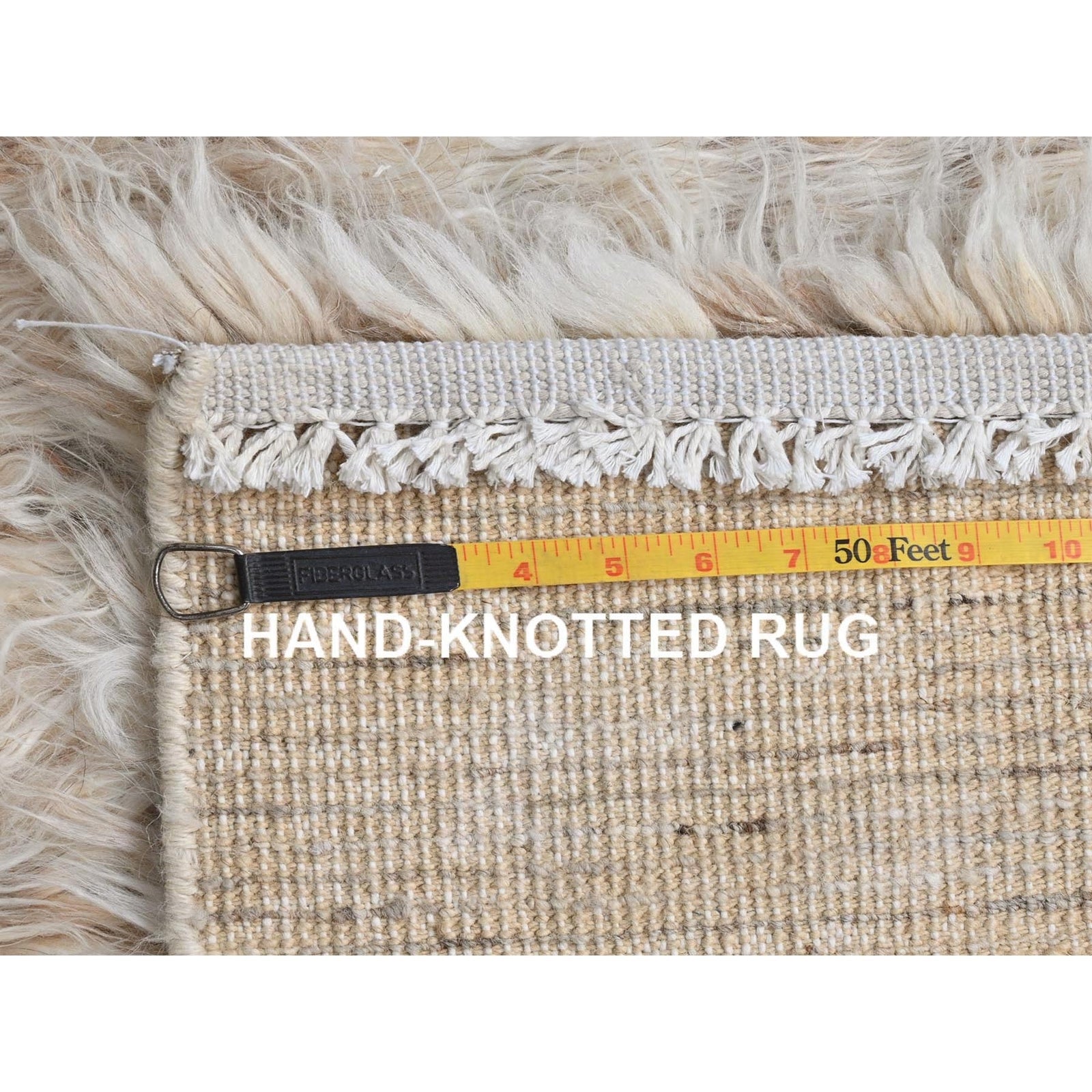 3'X3' Beige Shaggy Moroccan Undyed Natural Wool Hand Knotted Square Rug