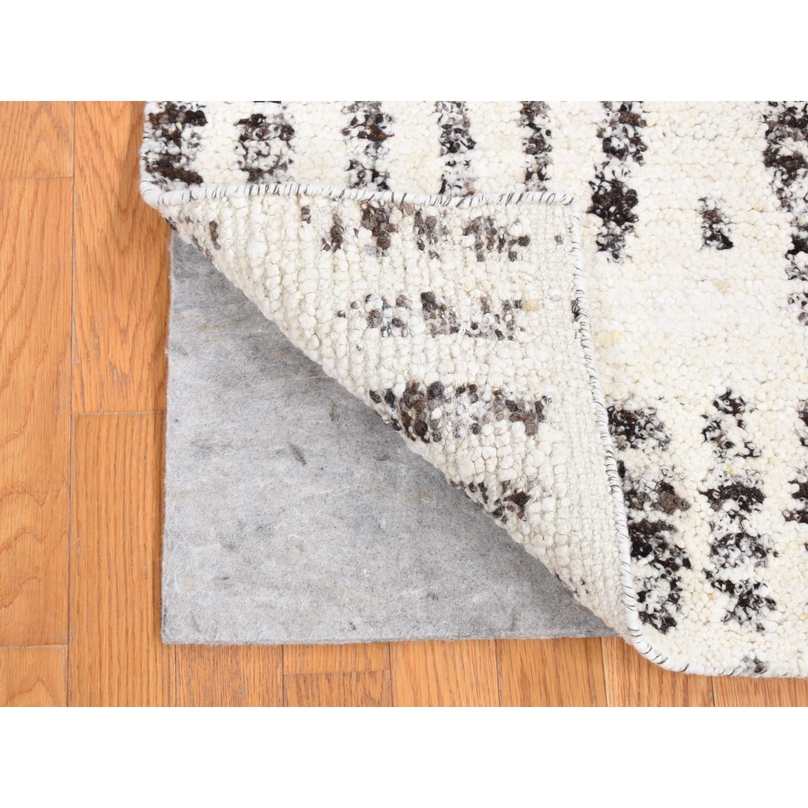 3'X3' Black Modern Erased Column Design Pure Wool Hand Knotted Rug
