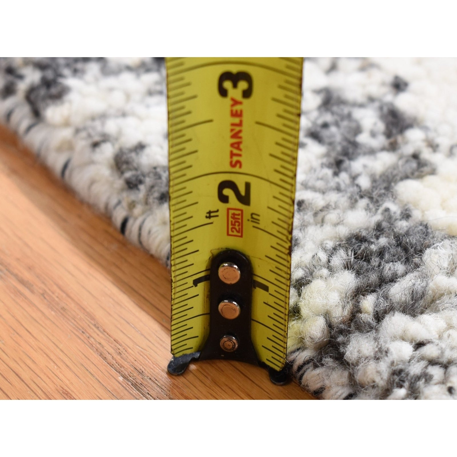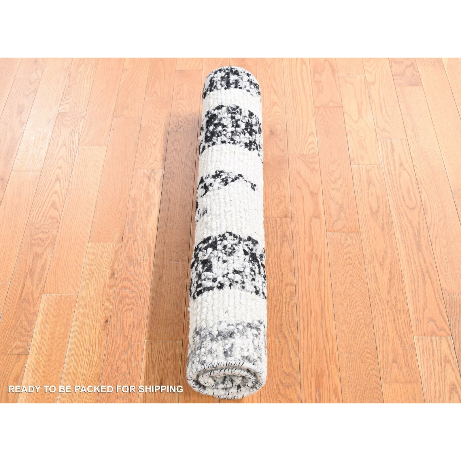3'X3' Black Modern Erased Wool Hand Knotted Square Oriental Rug