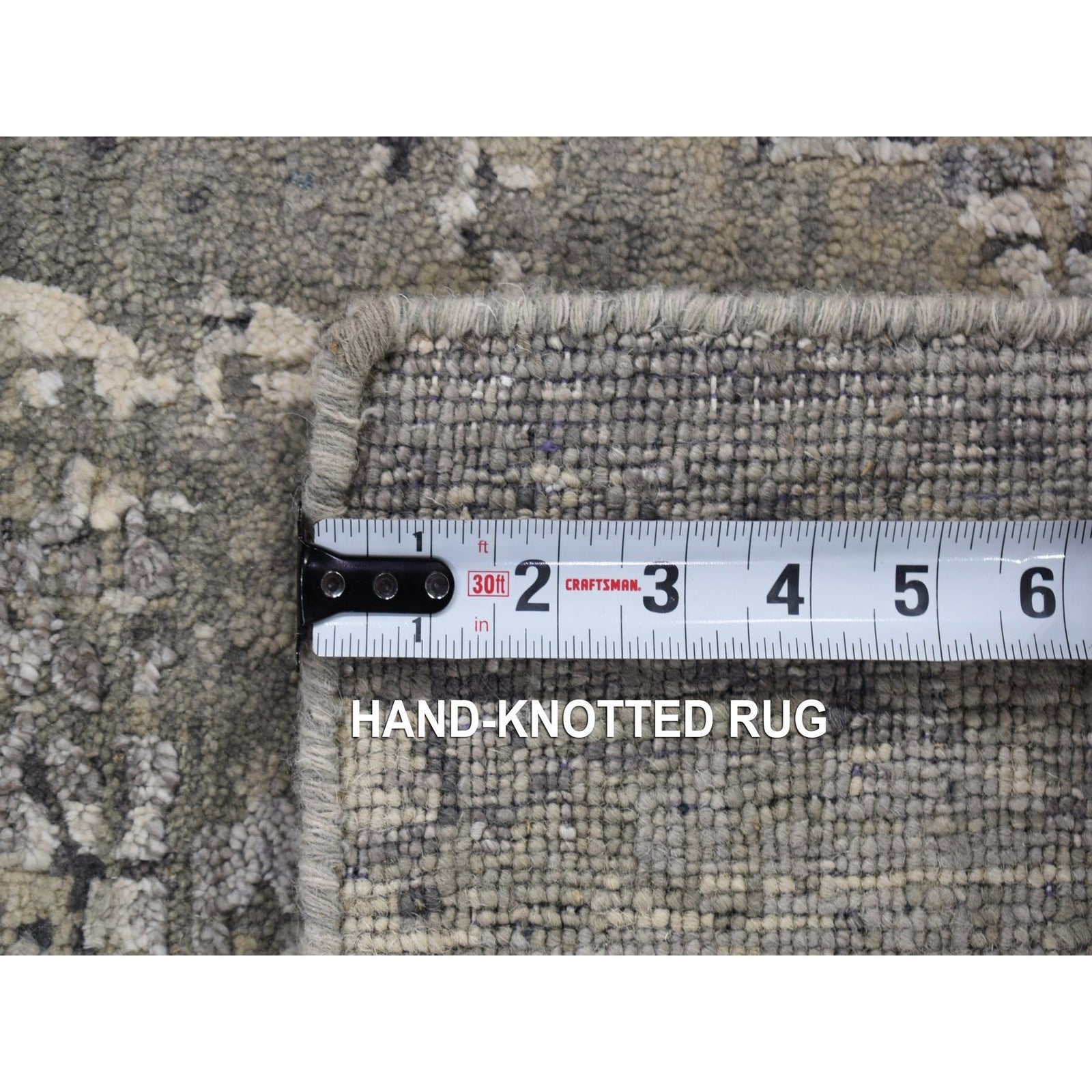 3'X3' Taupe Wool And Silk Abstract Hand Knotted Square Rug