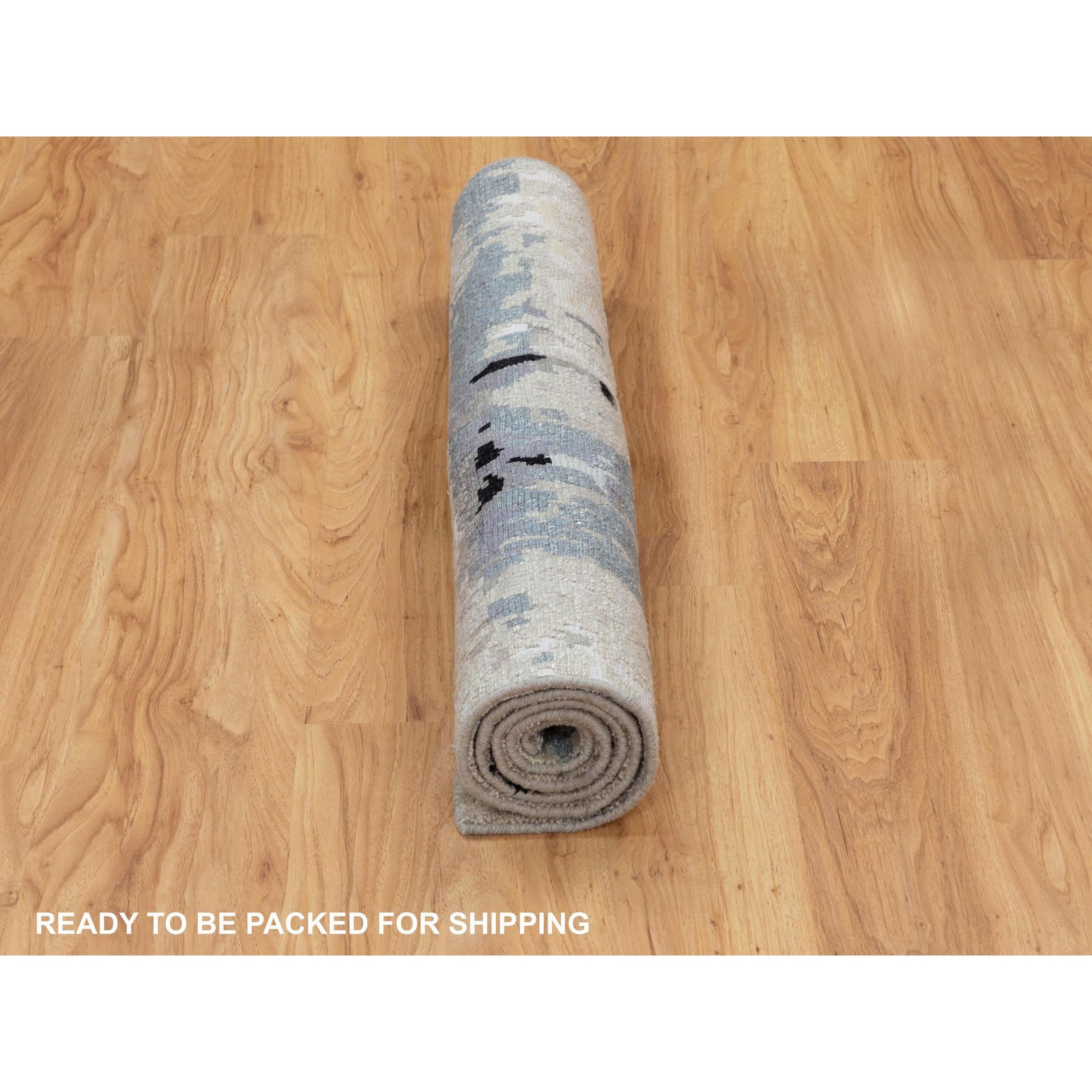 3'X4'10" Abstract Design Silver-Blue Hand Knotted Wool And Silk Rug