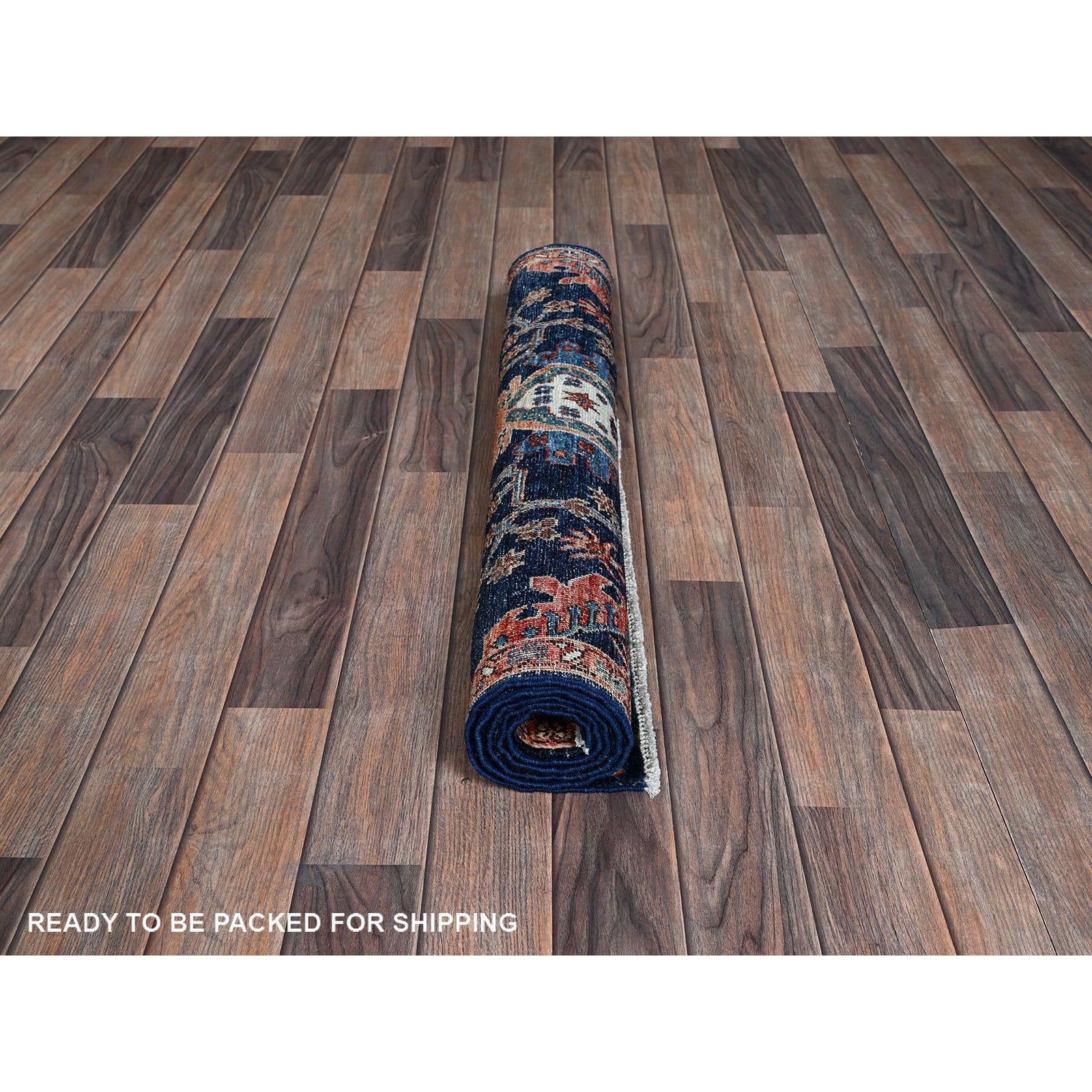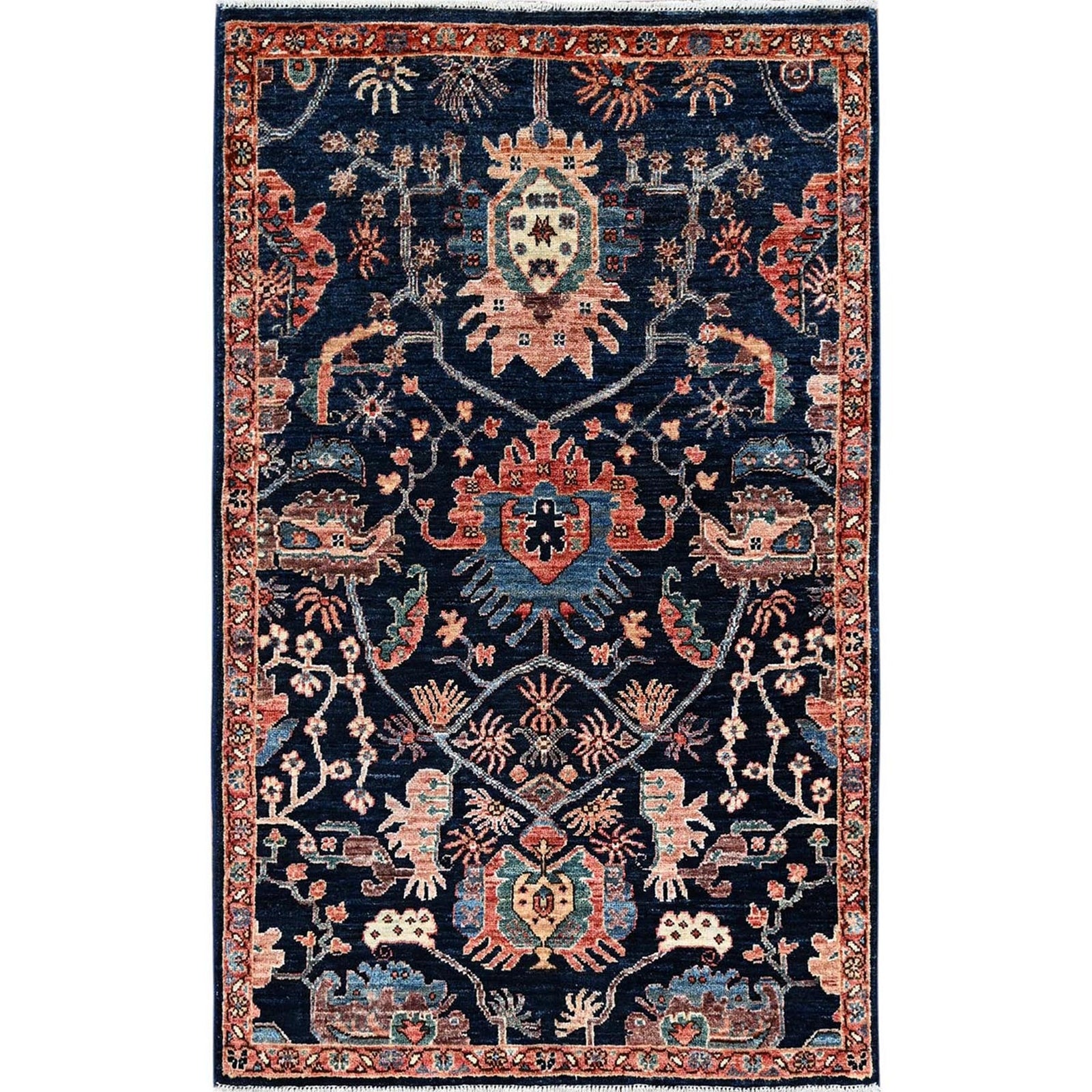 3'X4'10" Midnight Blue Heris All Over Design Hand Knotted Soft Wool Rug