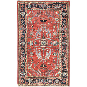 3'X4'10" Red Afghan Peshawar Heris Wool Hand Knotted Oriental Rug
